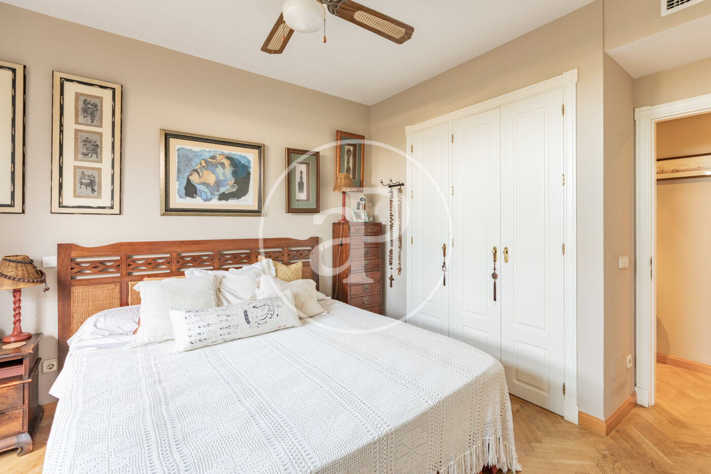 La propietat disposa de 3 dormitoris, 2 banys, piscina, gimnàs, 2 places d'aparcament, aire condicionat, armaris encastats, pati posterior, calefacció, consergeria i traster.