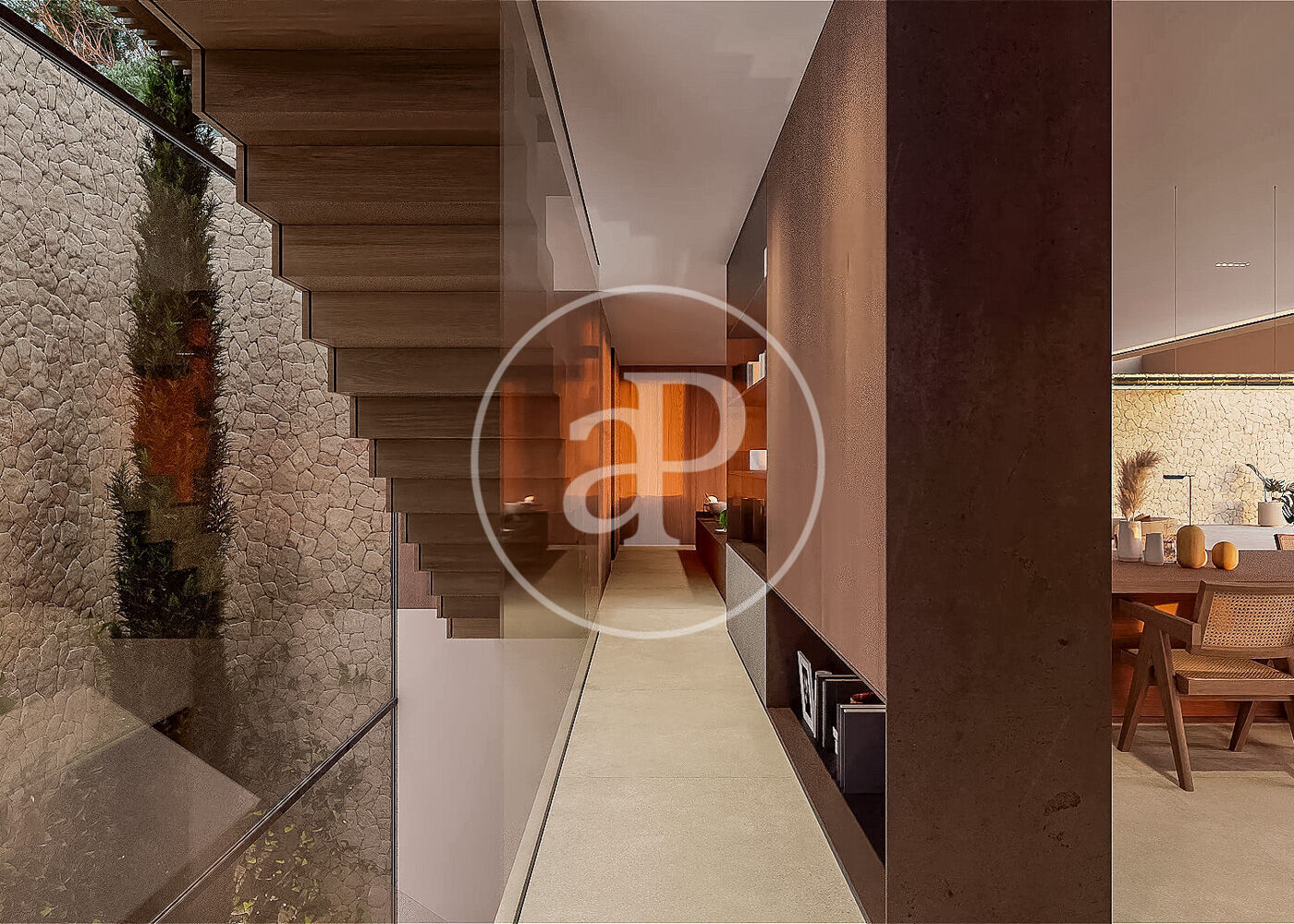 Vila Talaia és un projecte d'arquitectura moderna que es distingeix pel seu volum rectangular, així com el seu disseny modern i càlid, amb línies senzilles que prioritzen la llum natural i la connexió amb l'entorn exterior, creant un ambient elegant i acollidor. Aquesta casa de tres plantes combina funcionalitat i estètica, oferint un refugi sofisticat i còmode. En el soterrani es troba el pàrquing amb capacitat per a tres vehicles, accessible a través d'una rampa. En aquesta planta també hi ha una sala de bugaderia, una sala tècnica, un lavabo, una habitació amb bany, un espai perfecte per a un traster i un espai polivalent, ideal per a un gimnàs amb sauna. La planta baixa destaca per un ampli espai obert que permet una connexió visual fluida entre l'interior i el jardí amb la piscina. En aquesta àrea es troben el saló, el menjador i la cuina de concepte obert, oferint un entorn ideal tant per a la vida quotidiana com per a l'entreteniment. A més, compta amb un bany complet i una habitació multifuncional que pot adaptar-se com a dormitori, oficina o altres usos segons es requereixi. En la primera planta, se situen quatre habitacions dobles, cadascuna equipada amb el seu propi bany complet. En tres de les habitacions també hi ha espai d'estudi, mentre que a l'habitació principal inclou també un espaiós vestidor, proporcionant un ambient privat i luxós.