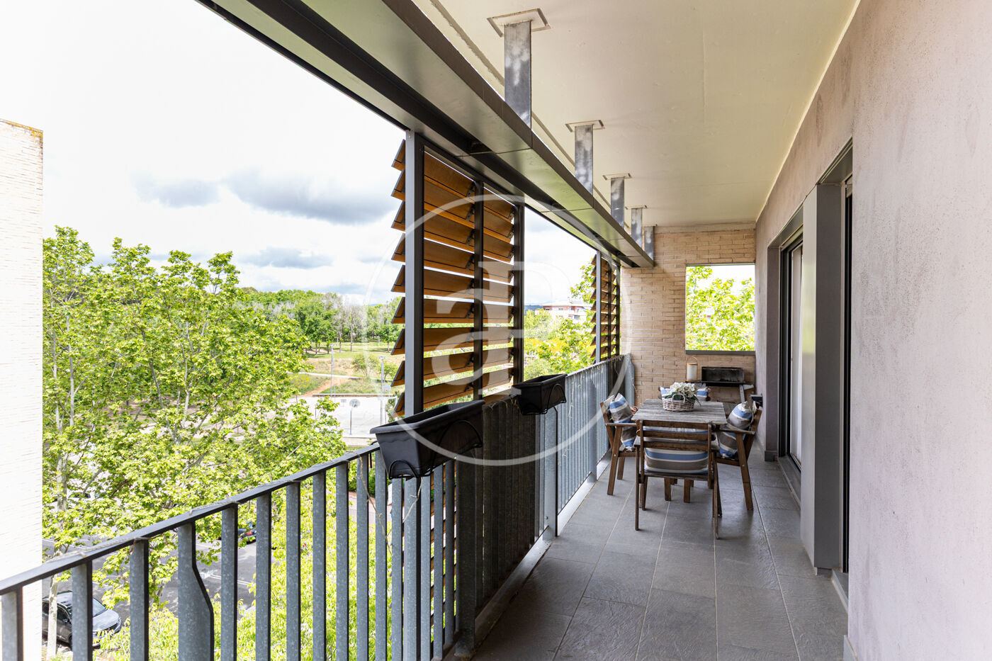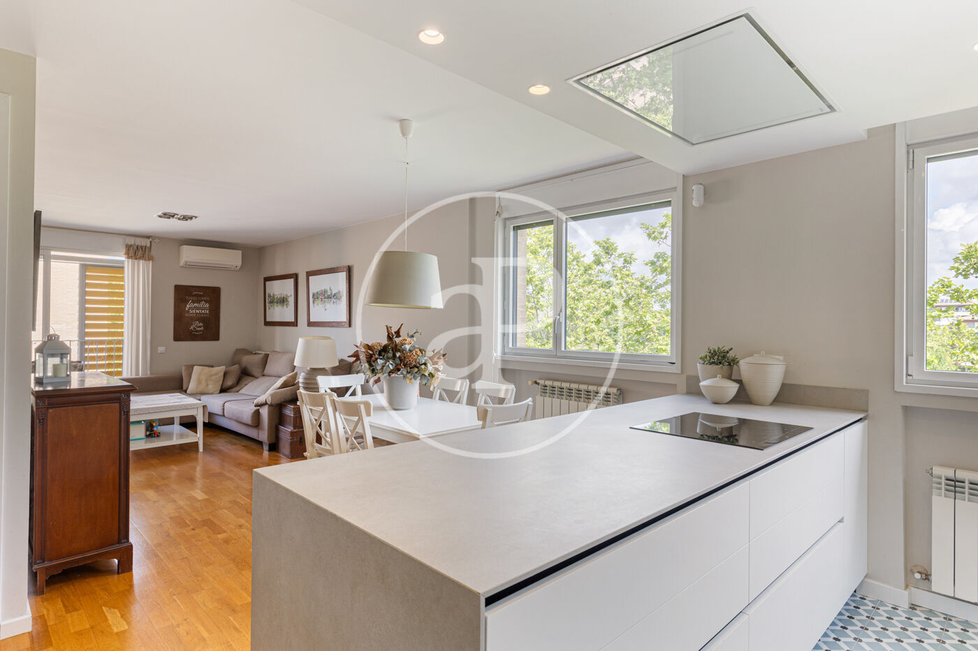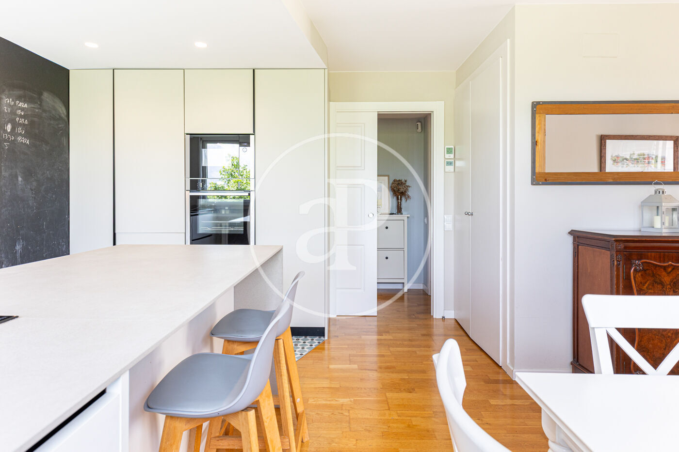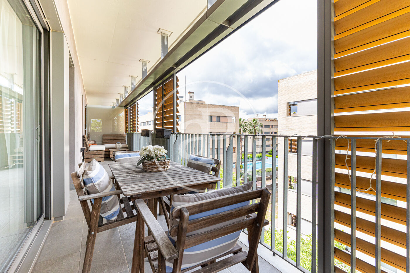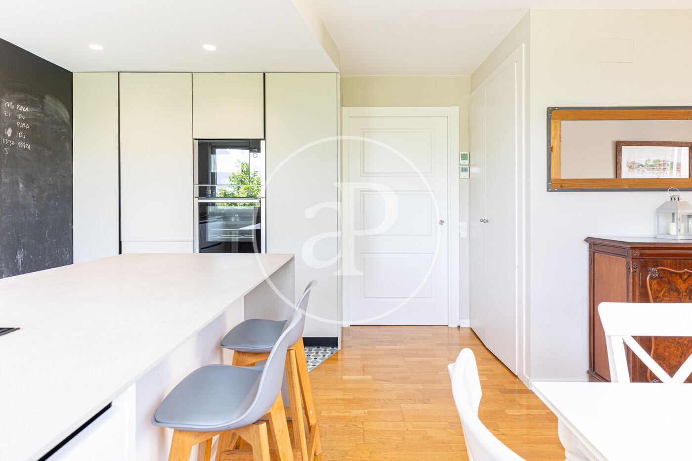 La cuina està equipada amb tot el necessari per als sibarites més exigents, s’integra perfectament amb el saló i ofereix vistes al Parc Central de Sant Cugat. Mentre cuines, pots compartir el moment amb la teva família o convidats, que poden seure a la barra o a la taula. Tot i ser un espai obert, el saló diferencia clarament tres ambients: la zona de cuina, la zona de menjador i la zona d’estar. Des d’aquí s’accedeix directament a una àmplia terrassa, actualment equipada amb una zona de relax, un menjador exterior i sí, aquí pots fer les millors barbacoes.