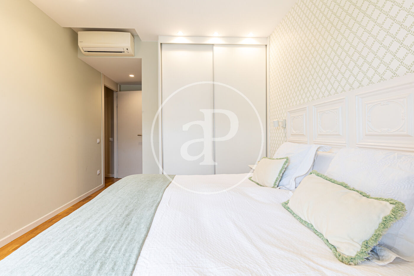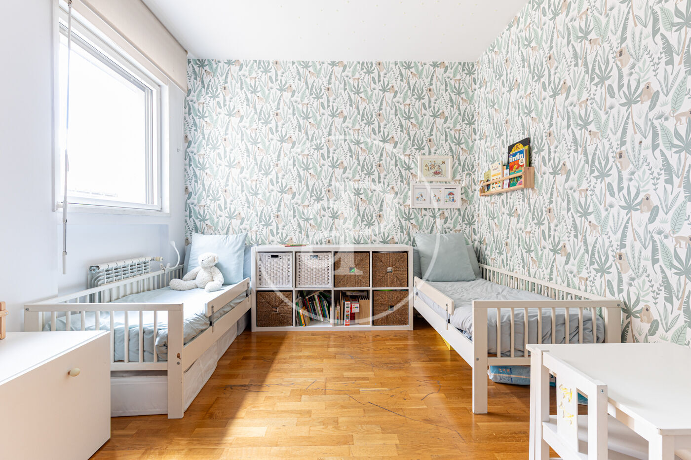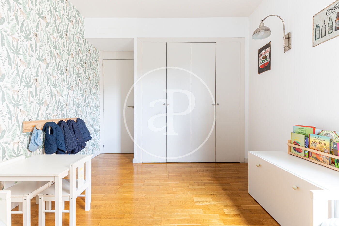 El pis disposa de tres habitacions. La principal, en suite, té sortida directa a la terrassa. La segona, individual però àmplia, també té accés a la terrassa. La tercera habitació és molt espaiosa, de les més grans que hem tingut el plaer de comercialitzar. Totes les habitacions disposen d’armaris encastats, folrats i renovats recentment.