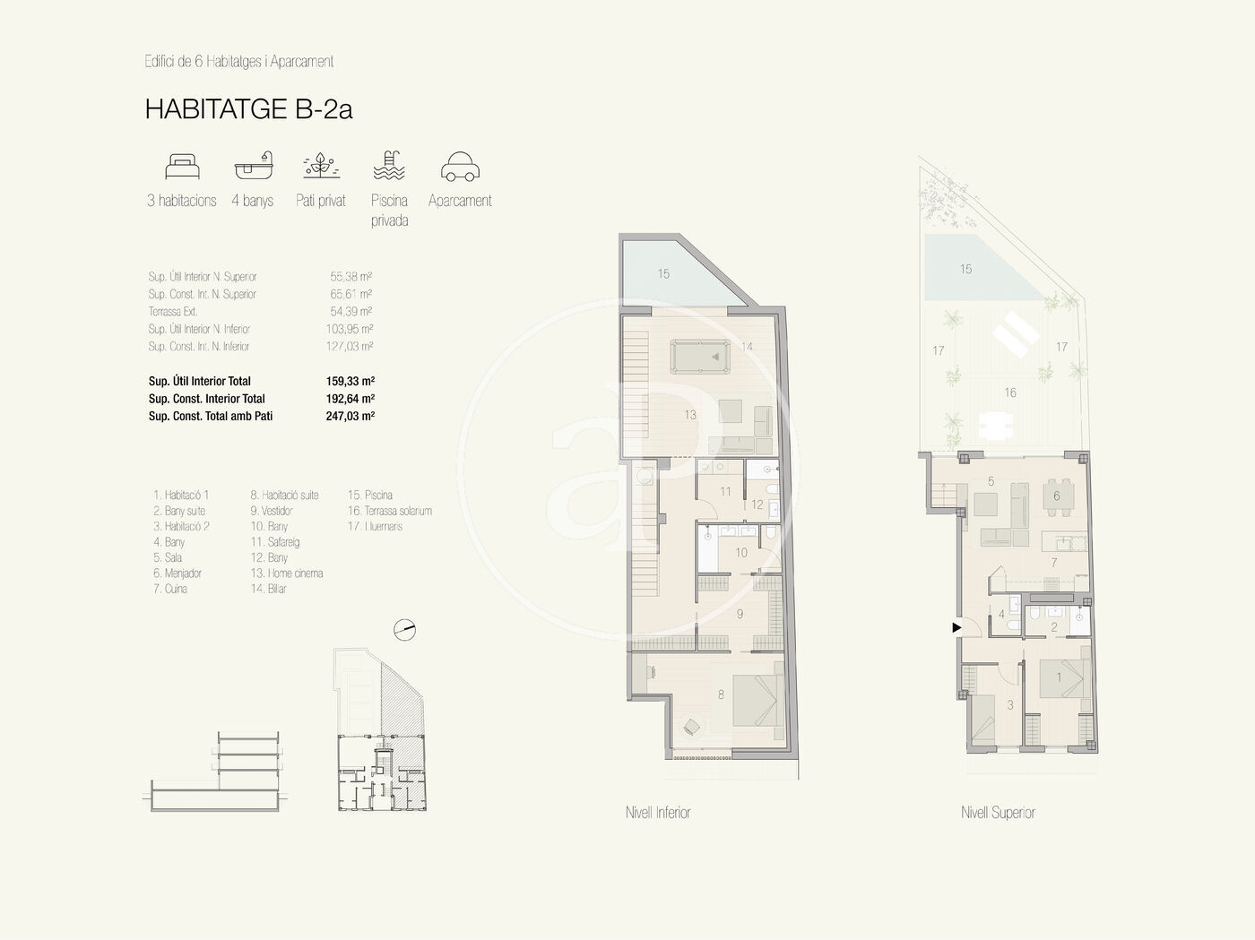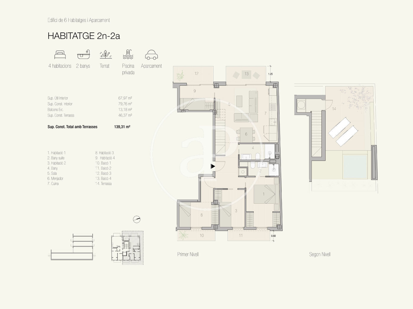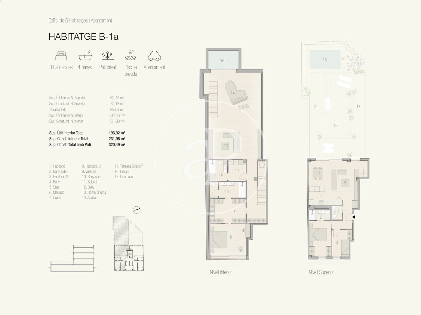 Cada habitatge ha estat projectat amb una mirada arquitectònica singular, integrant materials d’alta gamma, sistemes de domòtica avançada i una qualificació energètica A que garanteix eficiència sense sacrificar l’estil. La seva orientació sud-est assegura una lluminositat excepcional durant tot l’any.