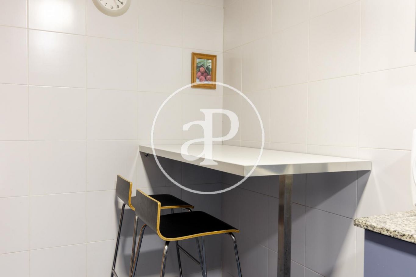En entrar trobem un rebedor amb accés a cuina office i amb accés a safareig. Accedim al saló-menjador amb sortida a terrassa orientació sud i amb vista a la zona comunitària i a la piscina.
