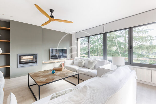 La conjugació de locación, qualitat de reforma i gust exquisit, converteixen a aquest pis en una peça única en el mercat de Sant Cugat. En una de les zones més exclusives de Sant Cugat, vistes directes al Golf i a tan sols 3 minuts caminant de l'estació de Sant Cugat. Tenim el plaer de presentar-los en exclusiva aquest magnífic pis de 4 habitacions que els deixarà gratament sorpresos. Comencem la nostra visita pel rebedor que ens condueix a un espai diàfan, però virtualment separat en cuina, menjador i saló. Tots els espais connecten visualment amb el Golf, que passa a formar part del pis, interactuant constantment amb la seva implacable presència. Tot el pis està reformat íntegrament, la cuina totalment equipada, minimalista, amb tots els artefactes apanalados, per a no irrompre en la impol·luta imatge del disseny nòrdic que caracteritza a aquesta reforma. El menjador i el saló estan separats per una petita paret i una xemeneia envidrada que serveix a tots dos ambients. El saló té sortida a una terrassa, també encarada al Golf. La terrassa té espai per a sofàs i una gran taula de menjador. Tornant a l'interior, trobem quatre habitacions, la màster suite, composta per vestidor i bany complet i tres habitacions més, una d'elles amb sortida directa a la terrassa que també connecta amb el saló. Una segona terrassa més, amb espai per a menjar o prendre sol. Si les vistes del pis són increïbles, les vistes 360è de la terrassa acabaran per extasiar-los. Finalment, el pis es completa amb dues petites habitacions, una que actua com a safareig i una altra de rebost. ACABATS DE QUALITAT: sòls de parquet, finestrals amb doble cristall i pont tèrmic color gris plom, calefacció amb radiadors, aire condicionat en algunes instàncies, ventiladors de sostre en totes les habitacions, amb armaris de paret en totes les habitacions i recepció. UBICACIÓ: Situada en una zona privilegiada i exclusiva del Golf, compta amb excel·lents comunicacions amb les principals carreteres amb accés immillorables a Barcelona i voltants. La zona de l’Eixample destaca per les seves zones residencials tranquil·les i caracteritzades per la seva proximitat a infinitud de serveis, comerços i serveis mèdics a escassos minuts. No dubti a contactar amb l'equip expert de aProperties Real Estigues per a la cerca de la seva nova llar, sempre eficaces, pròxims i professionals.