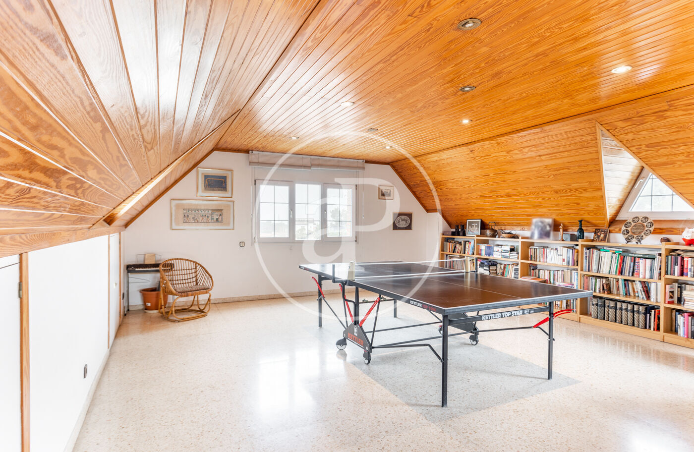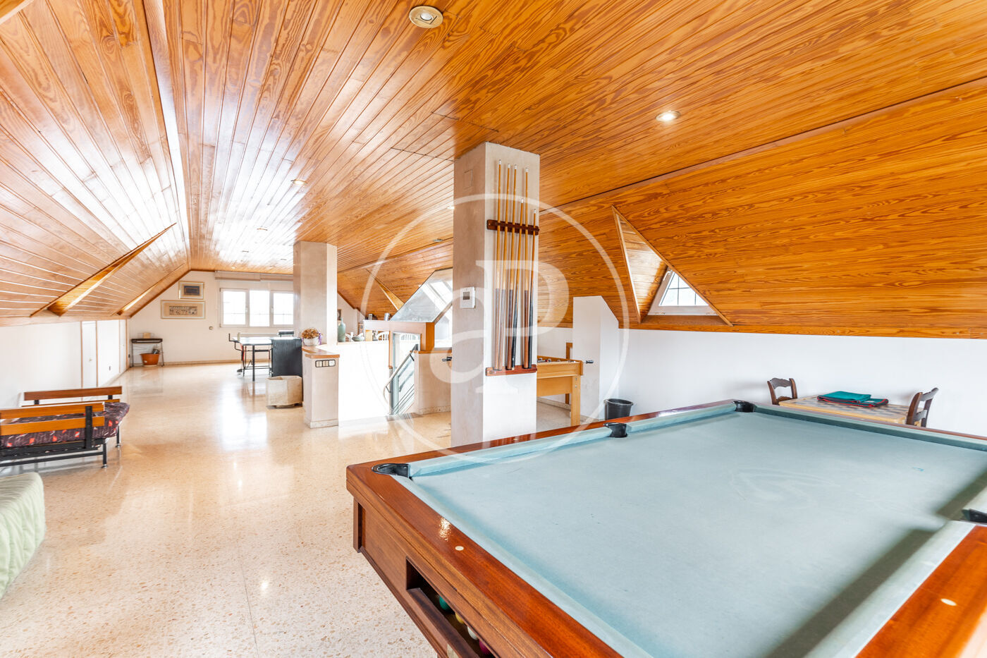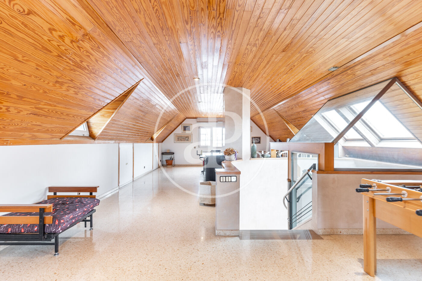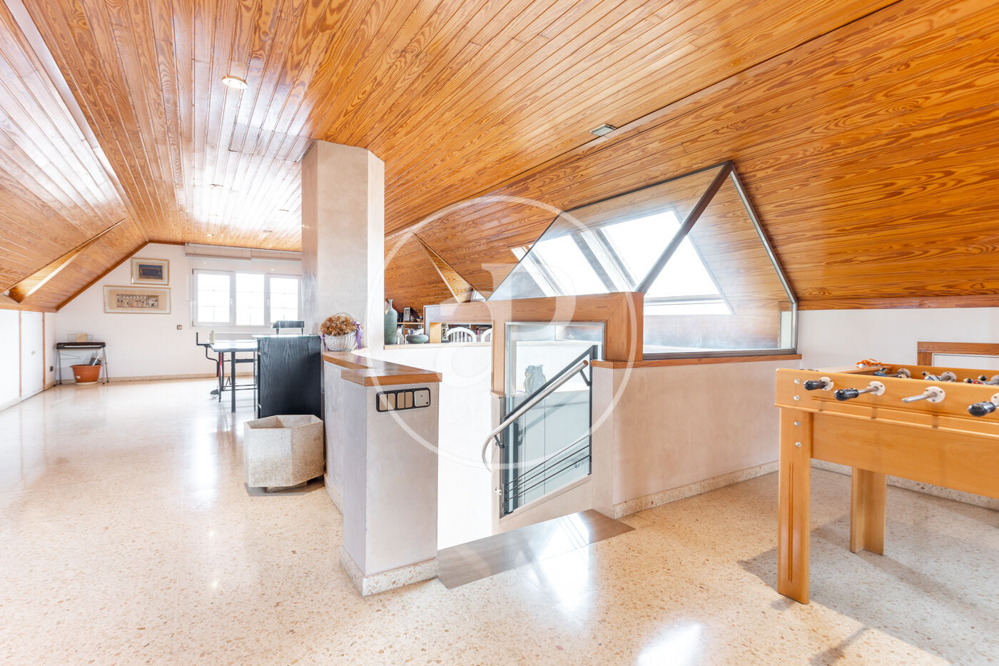 A la planta superior trobem una espectacular zona sota teulada, polivalent, amb infinites possibilitats, ideal com a family room, despatx o una àmplia màster suite.