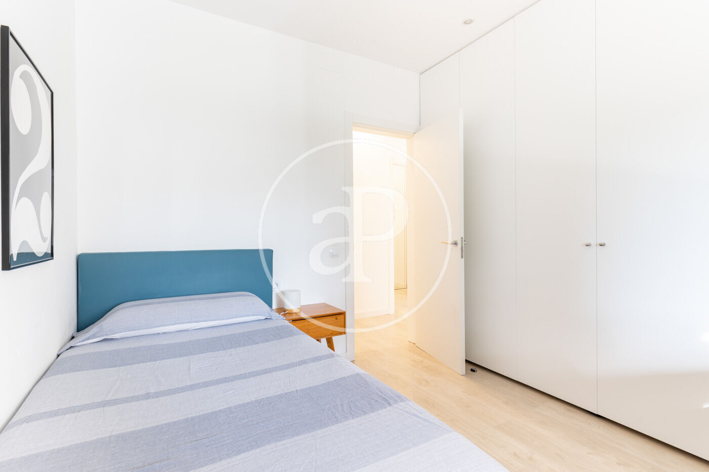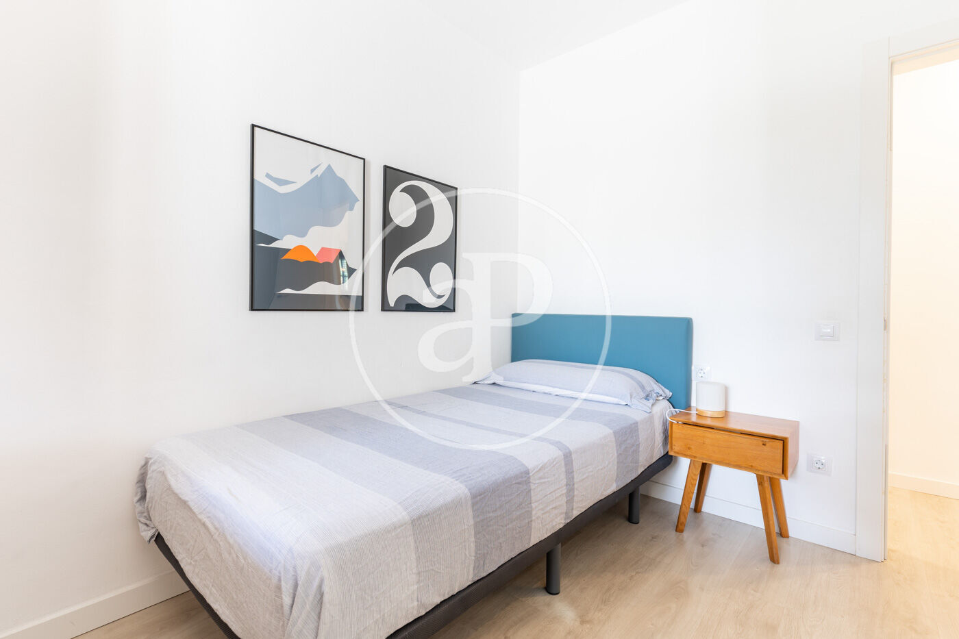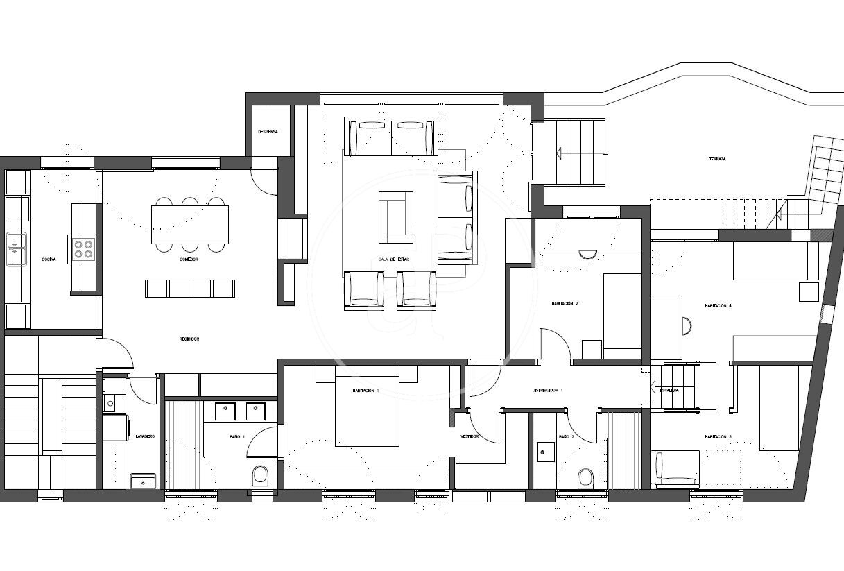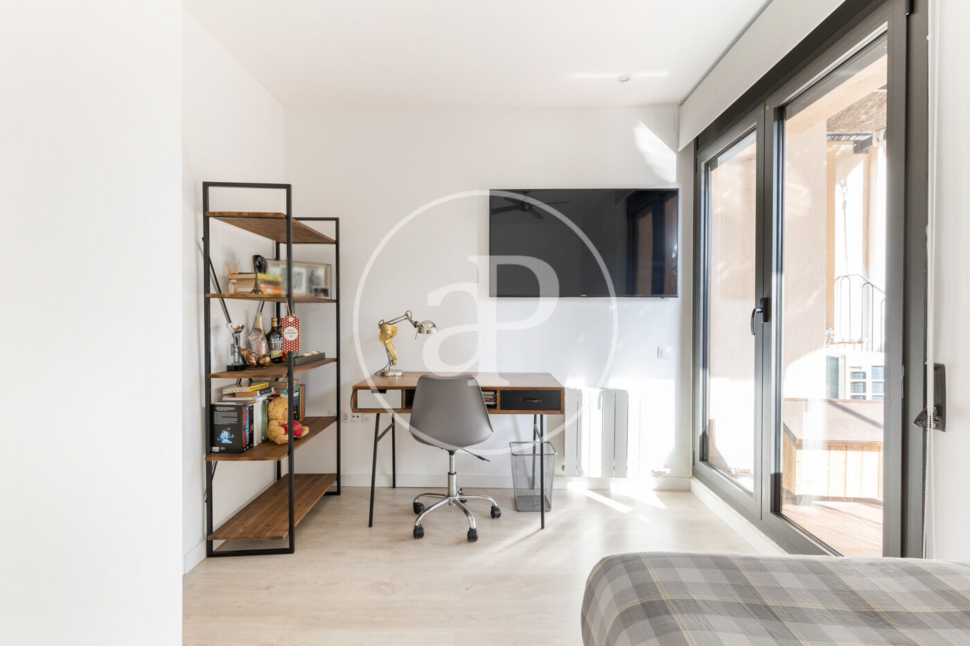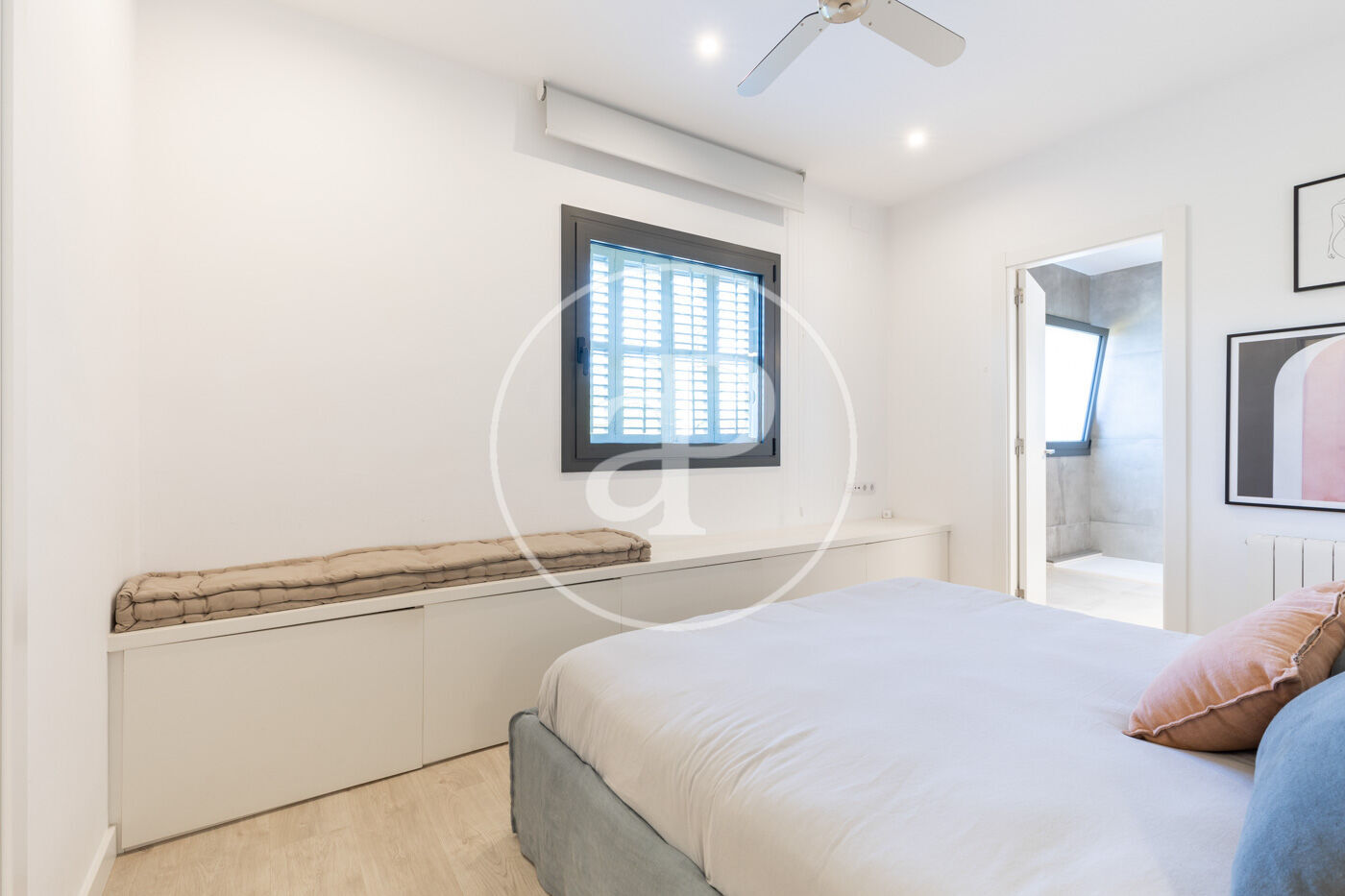 Tot el pis està reformat íntegrament, la cuina totalment equipada, minimalista, amb tots els artefactes apanalados, per a no irrompre en la impol·luta imatge del disseny nòrdic que caracteritza a aquesta reforma. El menjador i el saló estan separats per una petita paret i una xemeneia envidrada que serveix a tots dos ambients.