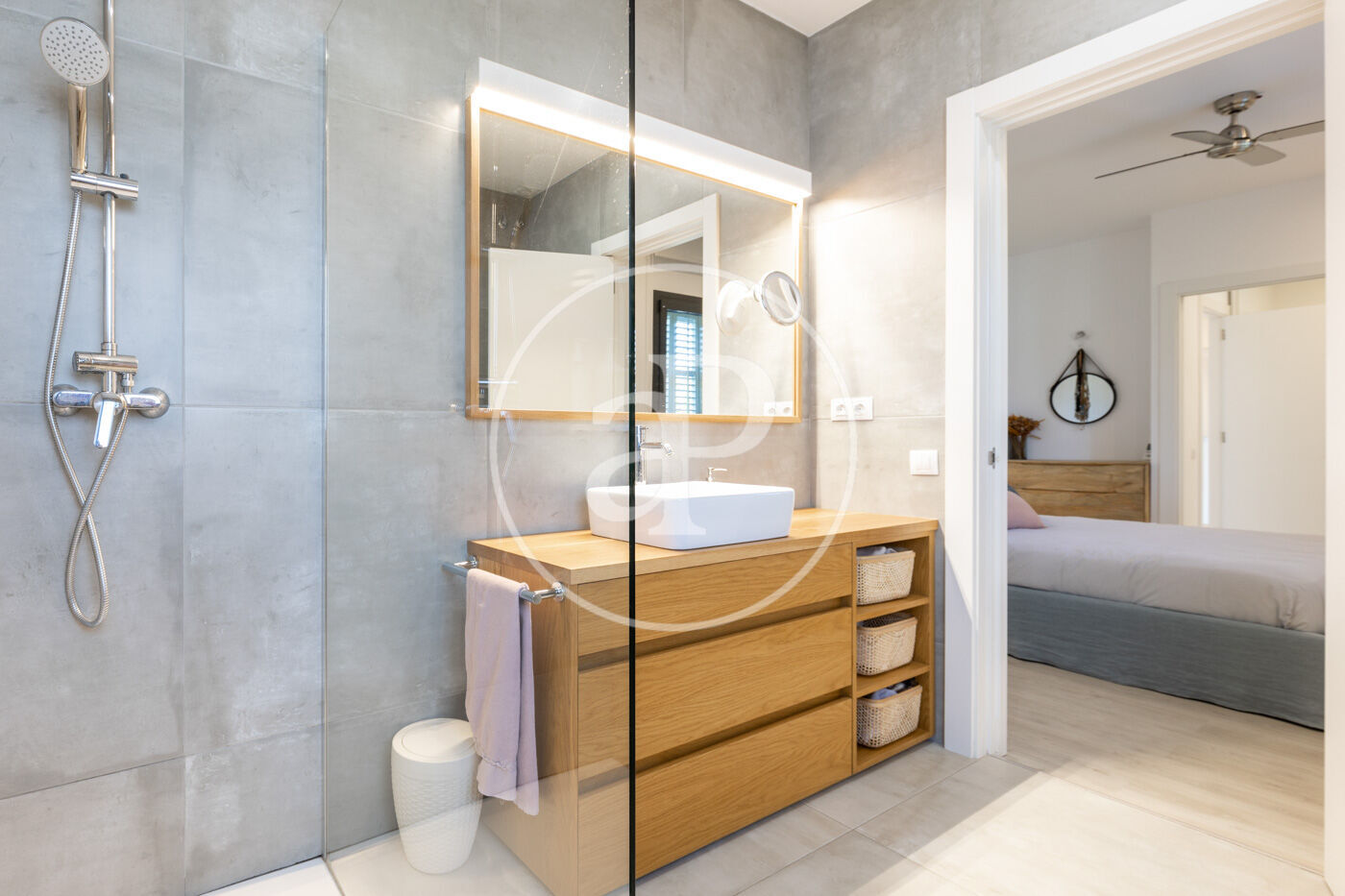 ACABATS DE QUALITAT: sòls de parquet, finestrals amb doble cristall i pont tèrmic color gris plom, calefacció amb radiadors, aire condicionat en algunes instàncies, ventiladors de sostre en totes les habitacions, amb armaris de paret en totes les habitacions i recepció.