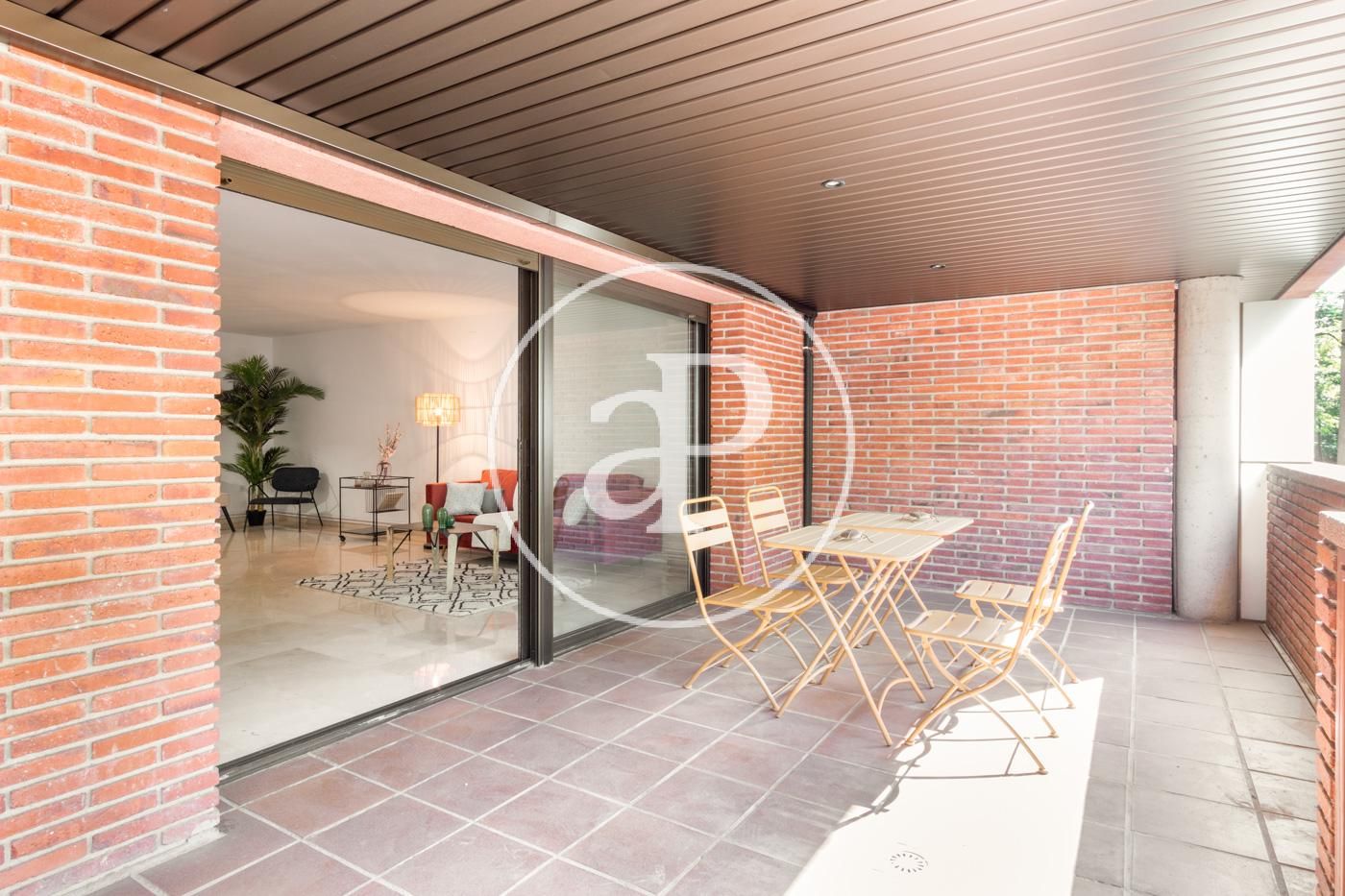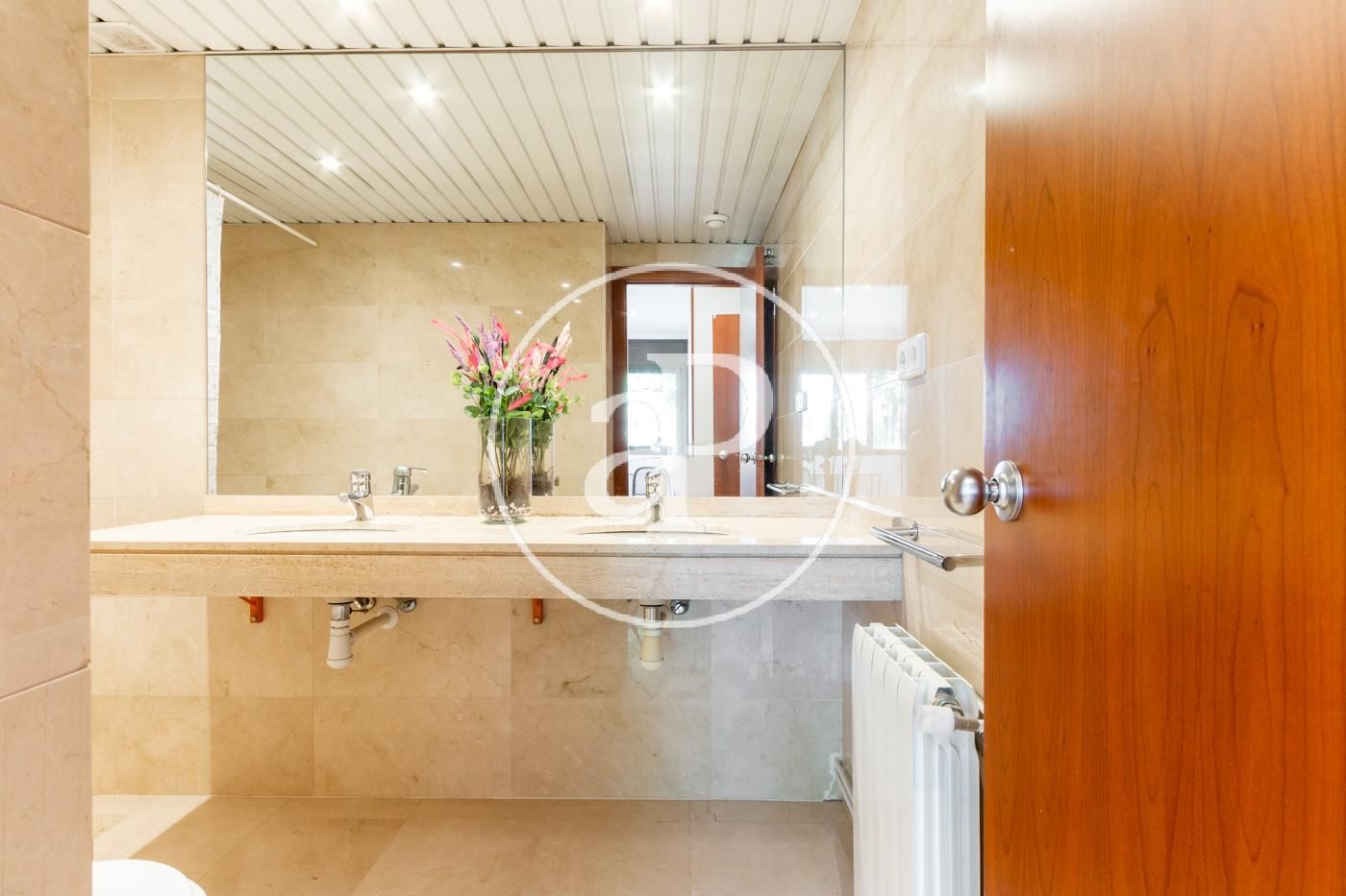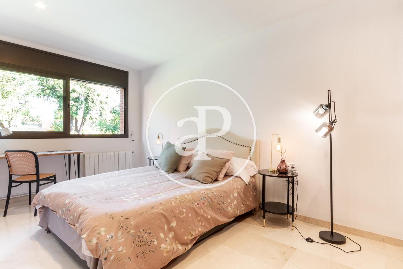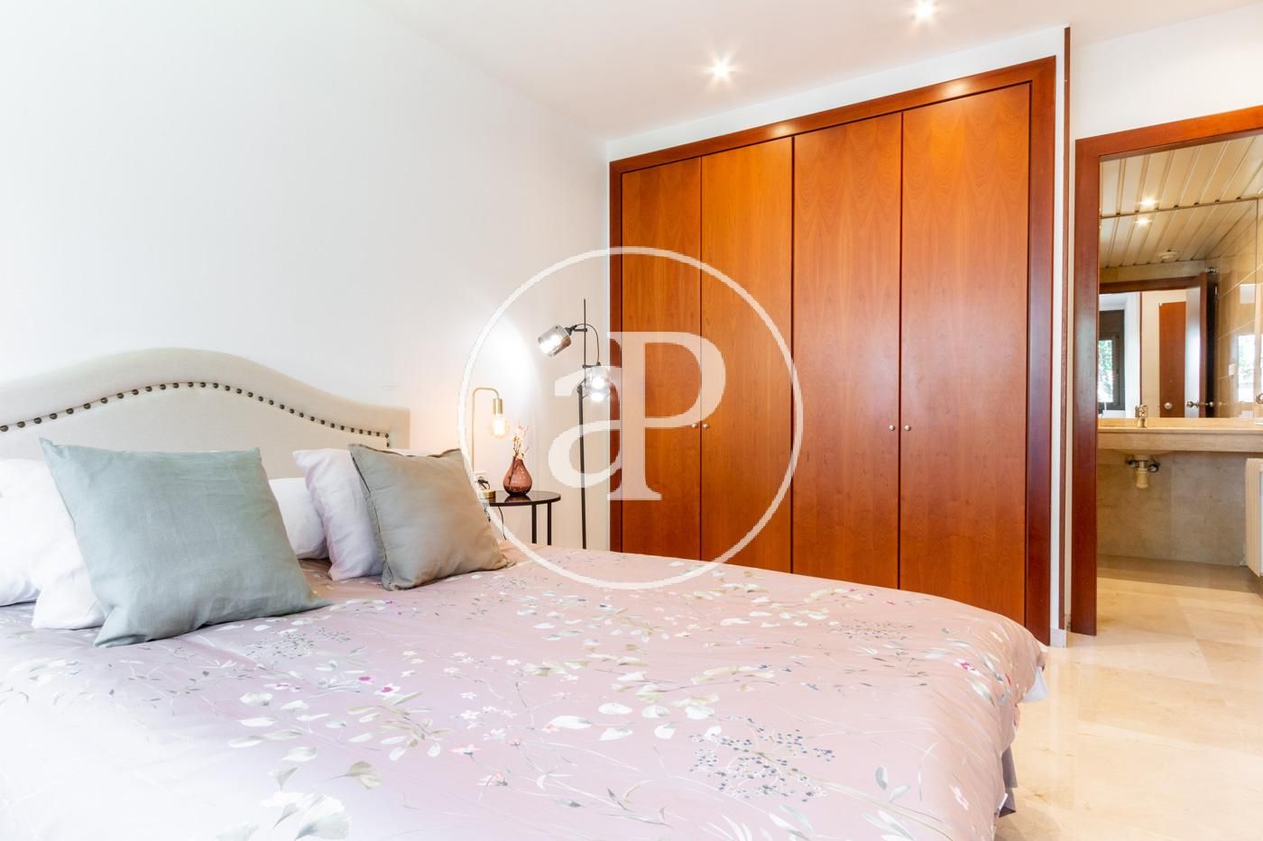 La conjugació de locación, qualitat de reforma i gust exquisit, converteixen a aquest pis en una peça única en el mercat de Sant Cugat. En una de les zones més exclusives de Sant Cugat, vistes directes al Golf i a tan sols 3 minuts caminant de l'estació de Sant Cugat. Tenim el plaer de presentar-los en exclusiva aquest magnífic pis de 4 habitacions que els deixarà gratament sorpresos. Comencem la nostra visita pel rebedor que ens condueix a un espai diàfan, però virtualment separat en cuina, menjador i saló. Tots els espais connecten visualment amb el Golf, que passa a formar part del pis, interactuant constantment amb la seva implacable presència. Tot el pis està reformat íntegrament, la cuina totalment equipada, minimalista, amb tots els artefactes apanalados, per a no irrompre en la impol·luta imatge del disseny nòrdic que caracteritza a aquesta reforma. El menjador i el saló estan separats per una petita paret i una xemeneia envidrada que serveix a tots dos ambients. El saló té sortida a una terrassa, també encarada al Golf. La terrassa té espai per a sofàs i una gran taula de menjador. Tornant a l'interior, trobem quatre habitacions, la màster suite, composta per vestidor i bany complet i tres habitacions més, una d'elles amb sortida directa a la terrassa que també connecta amb el saló. Una segona terrassa més, amb espai per a menjar o prendre sol. Si les vistes del pis són increïbles, les vistes 360è de la terrassa acabaran per extasiar-los. Finalment, el pis es completa amb dues petites habitacions, una que actua com a safareig i una altra de rebost. ACABATS DE QUALITAT: sòls de parquet, finestrals amb doble cristall i pont tèrmic color gris plom, calefacció amb radiadors, aire condicionat en algunes instàncies, ventiladors de sostre en totes les habitacions, amb armaris de paret en totes les habitacions i recepció. UBICACIÓ: Situada en una zona privilegiada i exclusiva del Golf, compta amb excel·lents comunicacions amb les principals carreteres amb accés immillorables a Barcelona i voltants. La zona de l’Eixample destaca per les seves zones residencials tranquil·les i caracteritzades per la seva proximitat a infinitud de serveis, comerços i serveis mèdics a escassos minuts. No dubti a contactar amb l'equip expert de aProperties Real Estigues per a la cerca de la seva nova llar, sempre eficaces, pròxims i professionals.