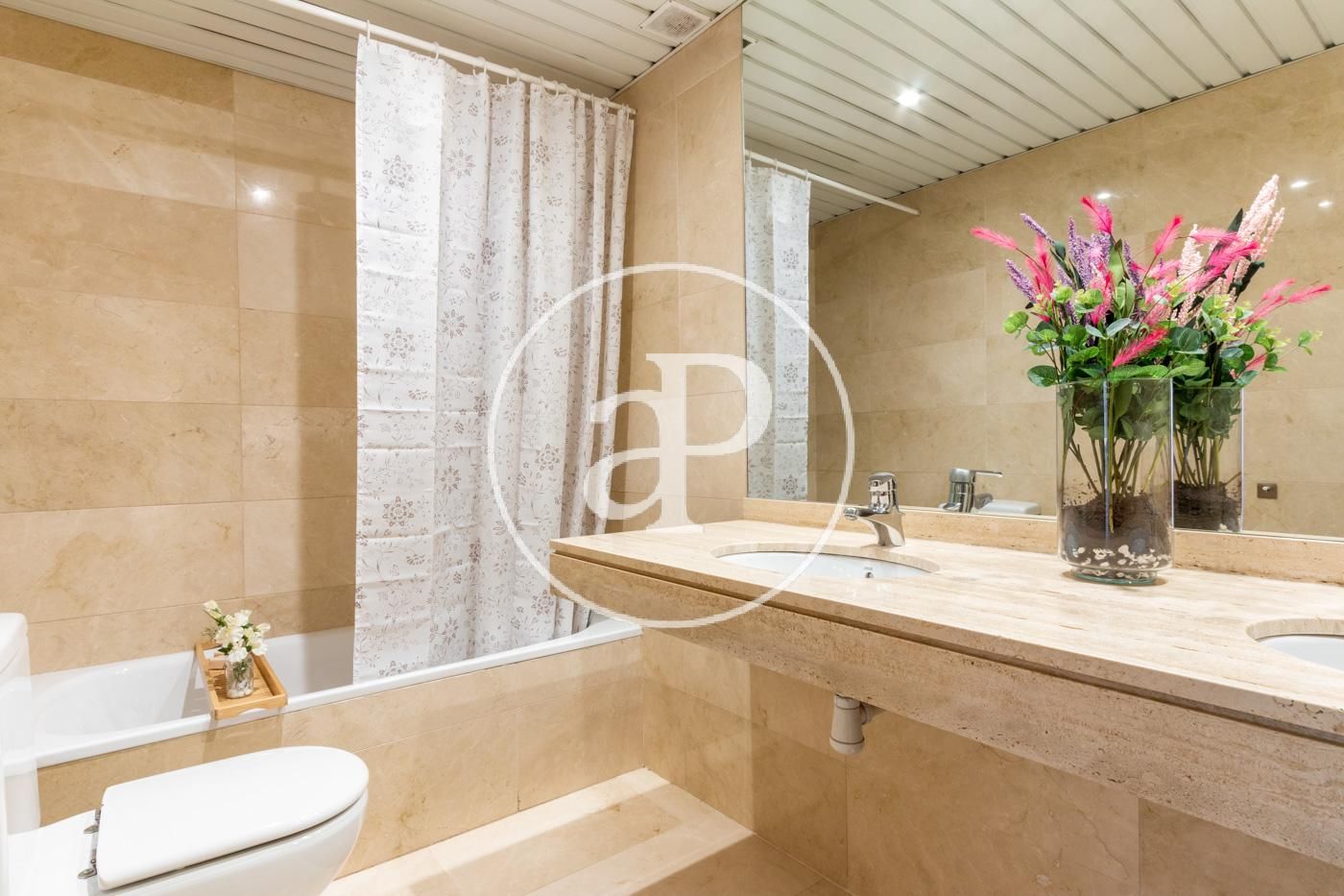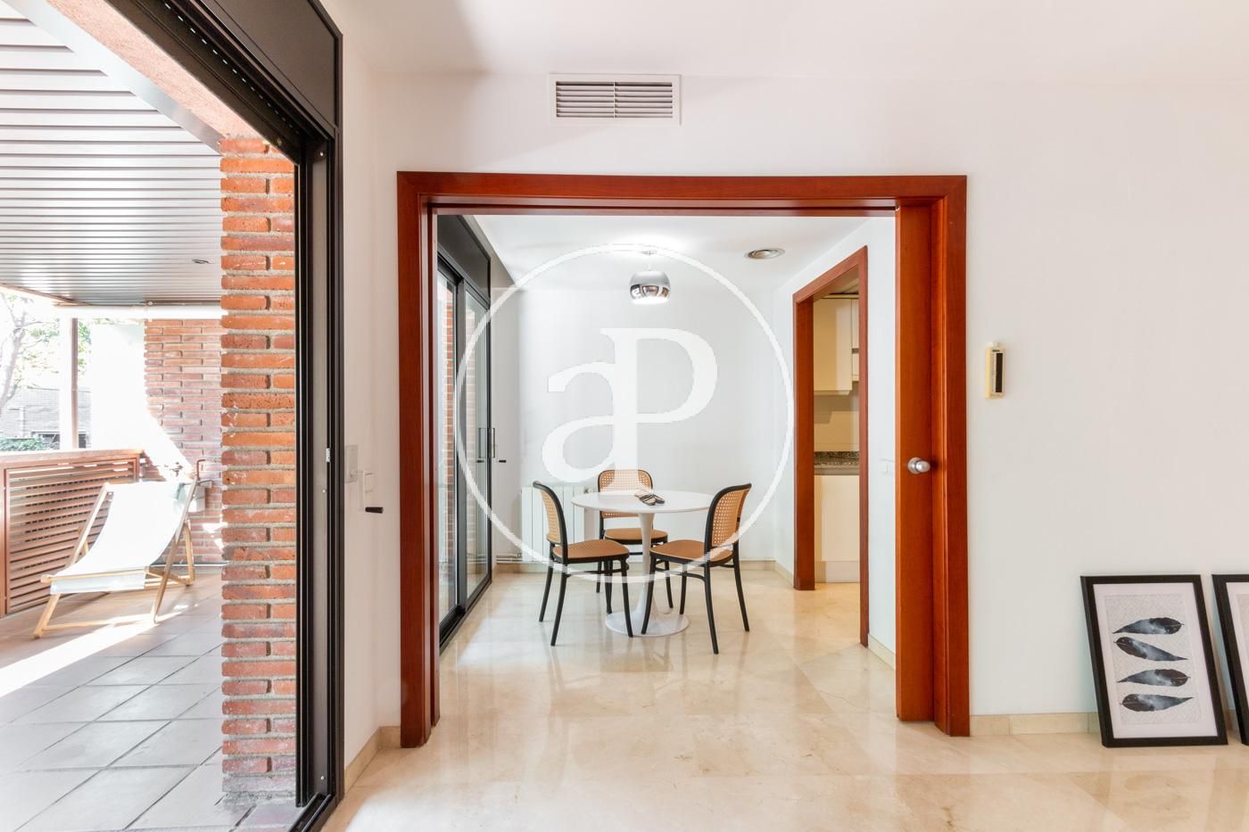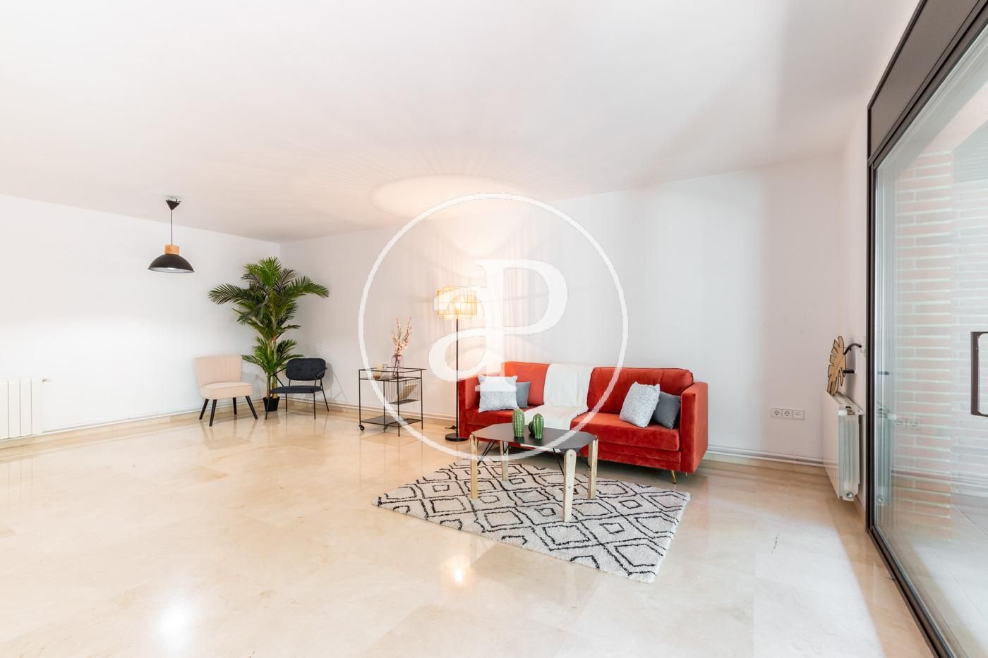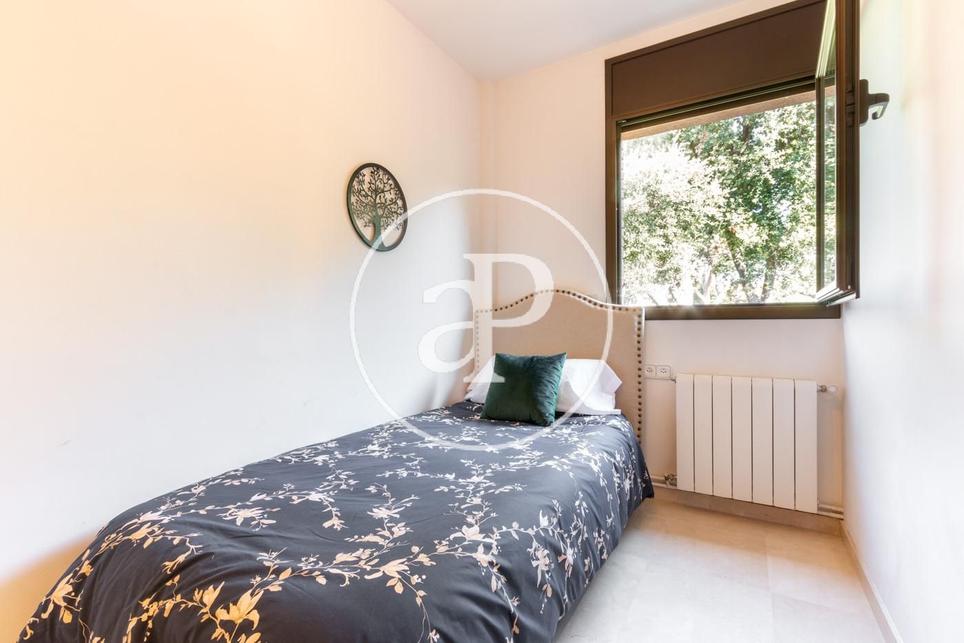 La conjugació de locación, qualitat de reforma i gust exquisit, converteixen a aquest pis en una peça única en el mercat de Sant Cugat. En una de les zones més exclusives de Sant Cugat, vistes directes al Golf i a tan sols 3 minuts caminant de l'estació de Sant Cugat. Tenim el plaer de presentar-los en exclusiva aquest magnífic pis de 4 habitacions que els deixarà gratament sorpresos. Comencem la nostra visita pel rebedor que ens condueix a un espai diàfan, però virtualment separat en cuina, menjador i saló. Tots els espais connecten visualment amb el Golf, que passa a formar part del pis, interactuant constantment amb la seva implacable presència. Tot el pis està reformat íntegrament, la cuina totalment equipada, minimalista, amb tots els artefactes apanalados, per a no irrompre en la impol·luta imatge del disseny nòrdic que caracteritza a aquesta reforma. El menjador i el saló estan separats per una petita paret i una xemeneia envidrada que serveix a tots dos ambients. El saló té sortida a una terrassa, també encarada al Golf. La terrassa té espai per a sofàs i una gran taula de menjador. Tornant a l'interior, trobem quatre habitacions, la màster suite, composta per vestidor i bany complet i tres habitacions més, una d'elles amb sortida directa a la terrassa que també connecta amb el saló. Una segona terrassa més, amb espai per a menjar o prendre sol. Si les vistes del pis són increïbles, les vistes 360è de la terrassa acabaran per extasiar-los. Finalment, el pis es completa amb dues petites habitacions, una que actua com a safareig i una altra de rebost. ACABATS DE QUALITAT: sòls de parquet, finestrals amb doble cristall i pont tèrmic color gris plom, calefacció amb radiadors, aire condicionat en algunes instàncies, ventiladors de sostre en totes les habitacions, amb armaris de paret en totes les habitacions i recepció. UBICACIÓ: Situada en una zona privilegiada i exclusiva del Golf, compta amb excel·lents comunicacions amb les principals carreteres amb accés immillorables a Barcelona i voltants. La zona de l’Eixample destaca per les seves zones residencials tranquil·les i caracteritzades per la seva proximitat a infinitud de serveis, comerços i serveis mèdics a escassos minuts. No dubti a contactar amb l'equip expert de aProperties Real Estigues per a la cerca de la seva nova llar, sempre eficaces, pròxims i professionals.