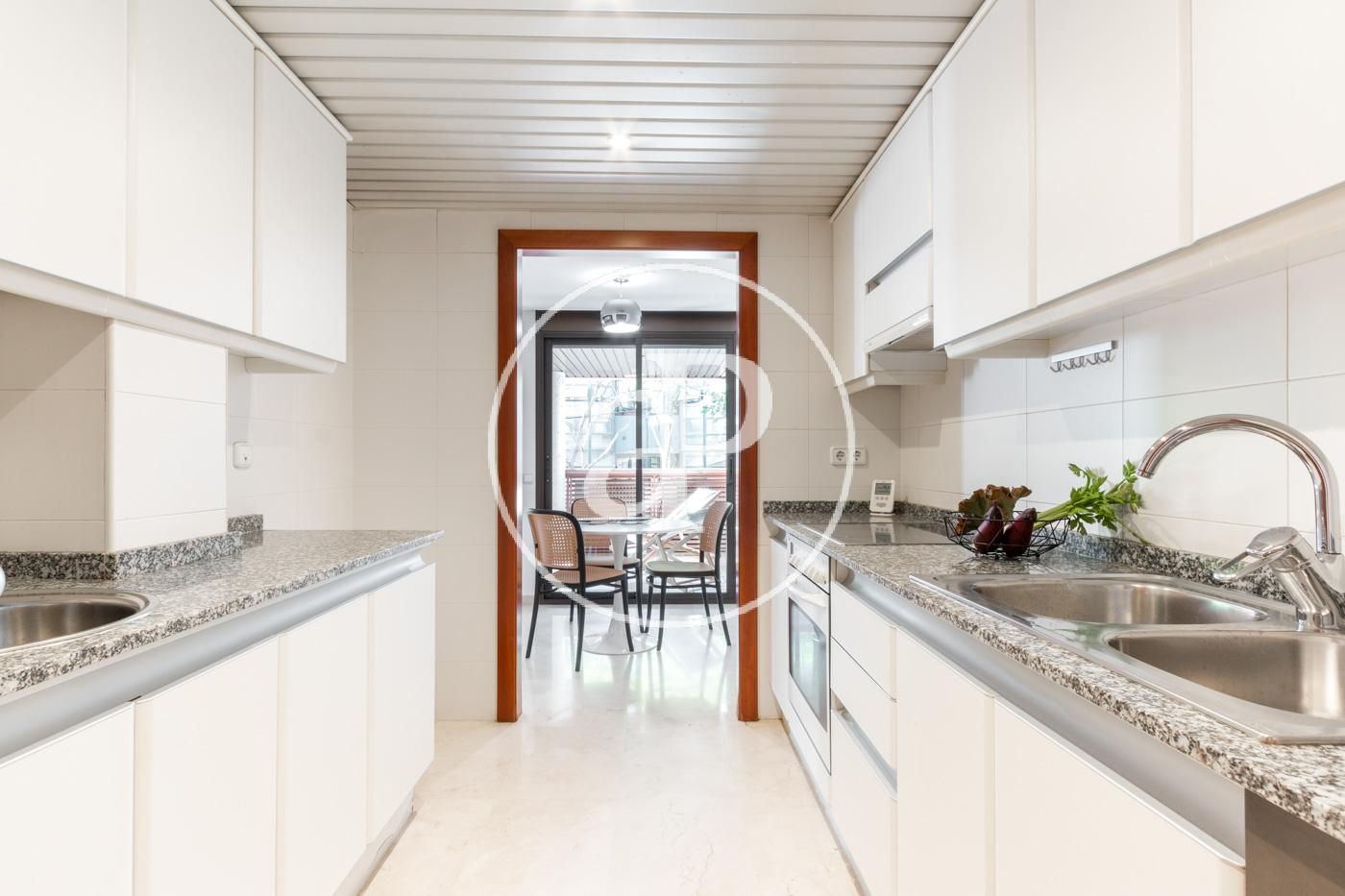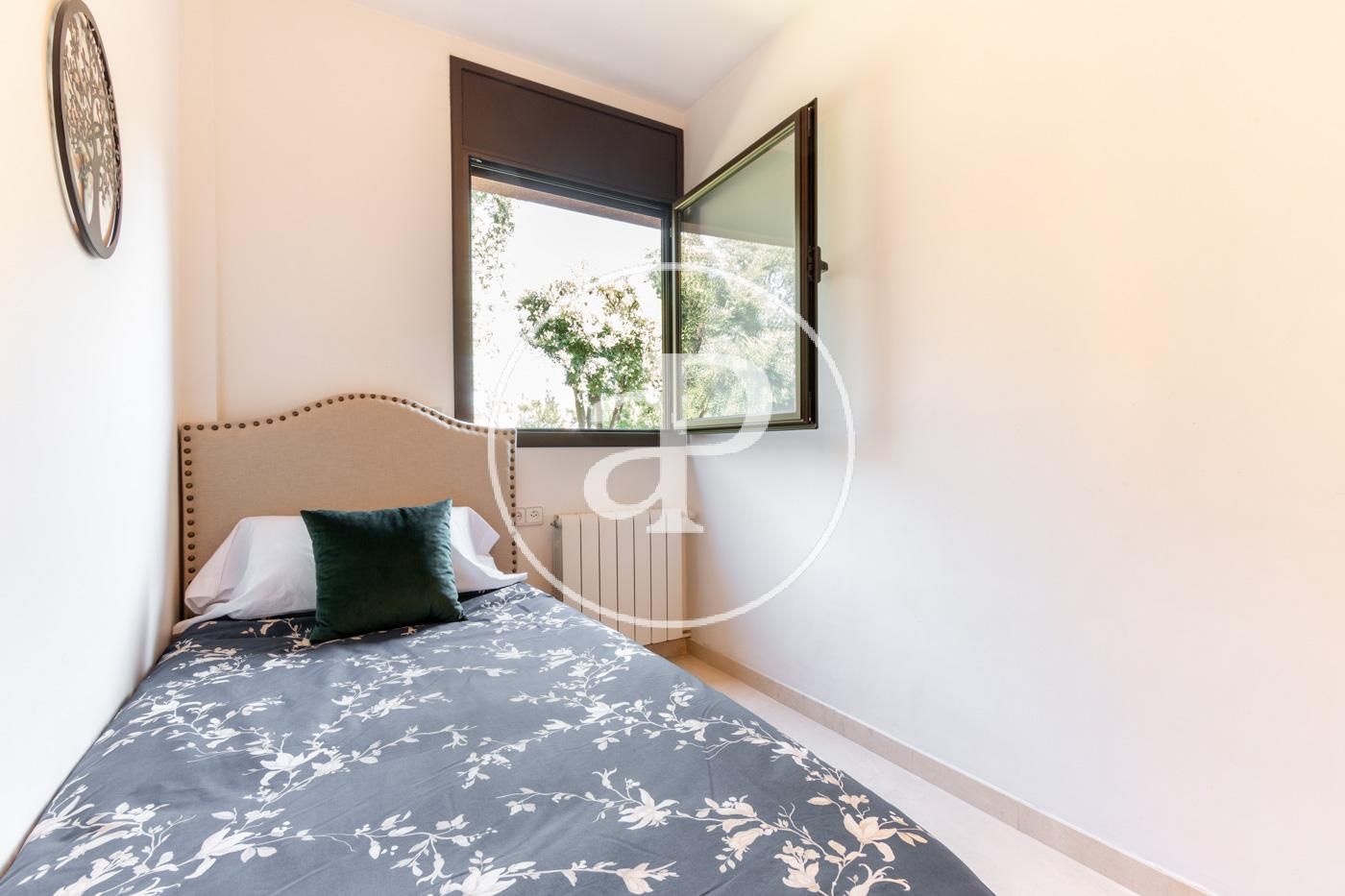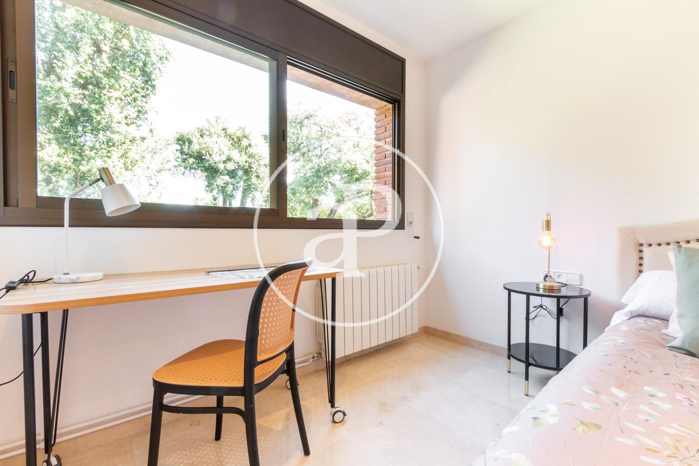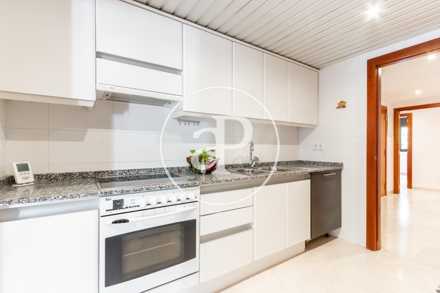 La conjugació de locación, qualitat de reforma i gust exquisit, converteixen a aquest pis en una peça única en el mercat de Sant Cugat. En una de les zones més exclusives de Sant Cugat, vistes directes al Golf i a tan sols 3 minuts caminant de l'estació de Sant Cugat. Tenim el plaer de presentar-los en exclusiva aquest magnífic pis de 4 habitacions que els deixarà gratament sorpresos. Comencem la nostra visita pel rebedor que ens condueix a un espai diàfan, però virtualment separat en cuina, menjador i saló. Tots els espais connecten visualment amb el Golf, que passa a formar part del pis, interactuant constantment amb la seva implacable presència. Tot el pis està reformat íntegrament, la cuina totalment equipada, minimalista, amb tots els artefactes apanalados, per a no irrompre en la impol·luta imatge del disseny nòrdic que caracteritza a aquesta reforma. El menjador i el saló estan separats per una petita paret i una xemeneia envidrada que serveix a tots dos ambients. El saló té sortida a una terrassa, també encarada al Golf. La terrassa té espai per a sofàs i una gran taula de menjador. Tornant a l'interior, trobem quatre habitacions, la màster suite, composta per vestidor i bany complet i tres habitacions més, una d'elles amb sortida directa a la terrassa que també connecta amb el saló. Una segona terrassa més, amb espai per a menjar o prendre sol. Si les vistes del pis són increïbles, les vistes 360è de la terrassa acabaran per extasiar-los. Finalment, el pis es completa amb dues petites habitacions, una que actua com a safareig i una altra de rebost. ACABATS DE QUALITAT: sòls de parquet, finestrals amb doble cristall i pont tèrmic color gris plom, calefacció amb radiadors, aire condicionat en algunes instàncies, ventiladors de sostre en totes les habitacions, amb armaris de paret en totes les habitacions i recepció. UBICACIÓ: Situada en una zona privilegiada i exclusiva del Golf, compta amb excel·lents comunicacions amb les principals carreteres amb accés immillorables a Barcelona i voltants. La zona de l’Eixample destaca per les seves zones residencials tranquil·les i caracteritzades per la seva proximitat a infinitud de serveis, comerços i serveis mèdics a escassos minuts. No dubti a contactar amb l'equip expert de aProperties Real Estigues per a la cerca de la seva nova llar, sempre eficaces, pròxims i professionals.
