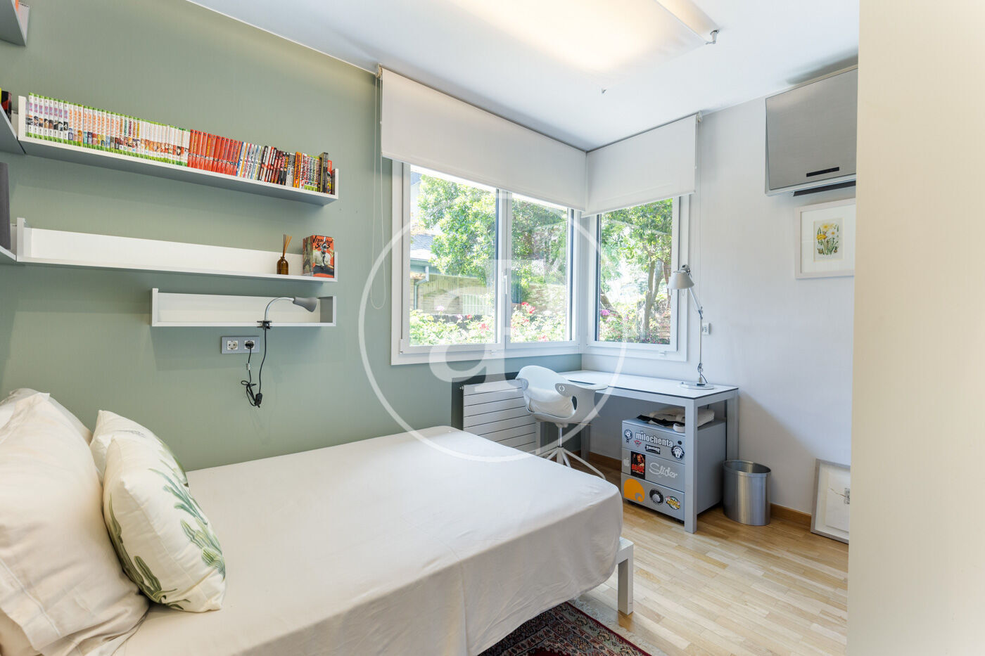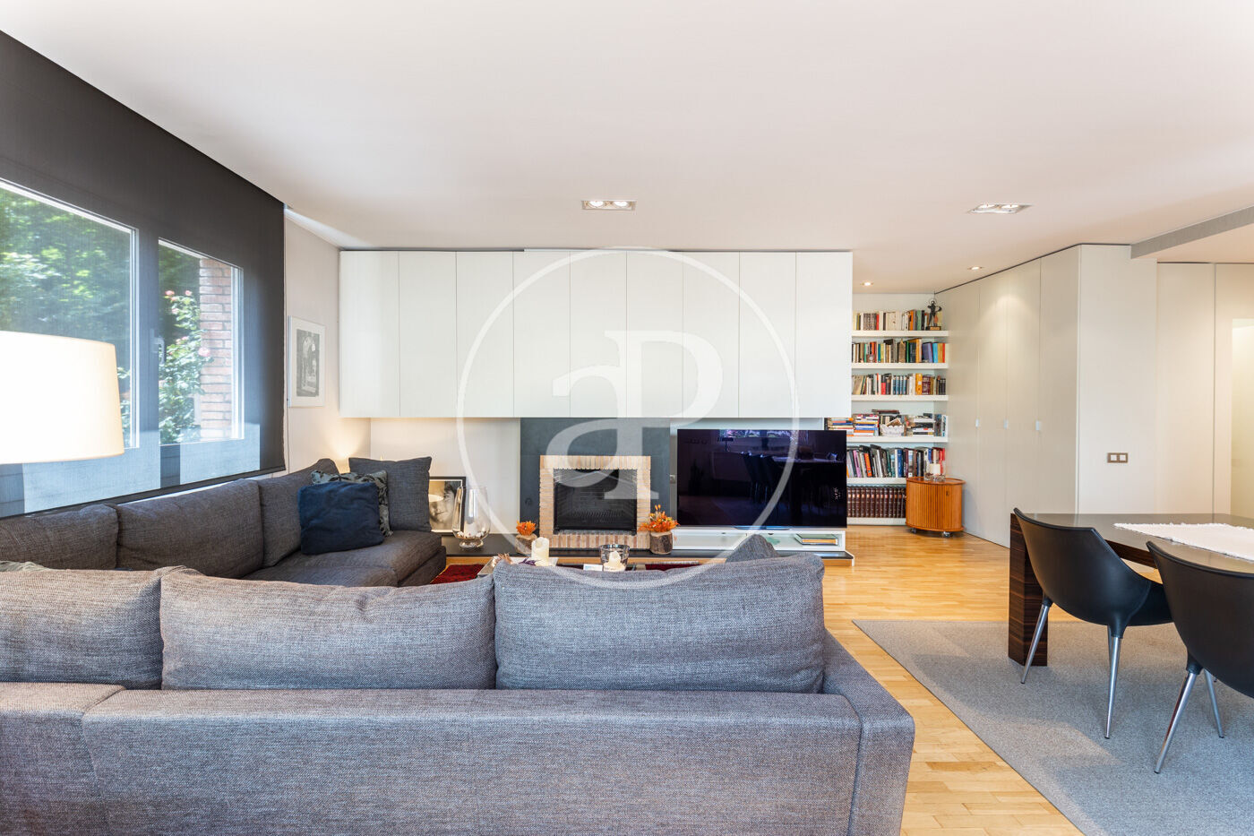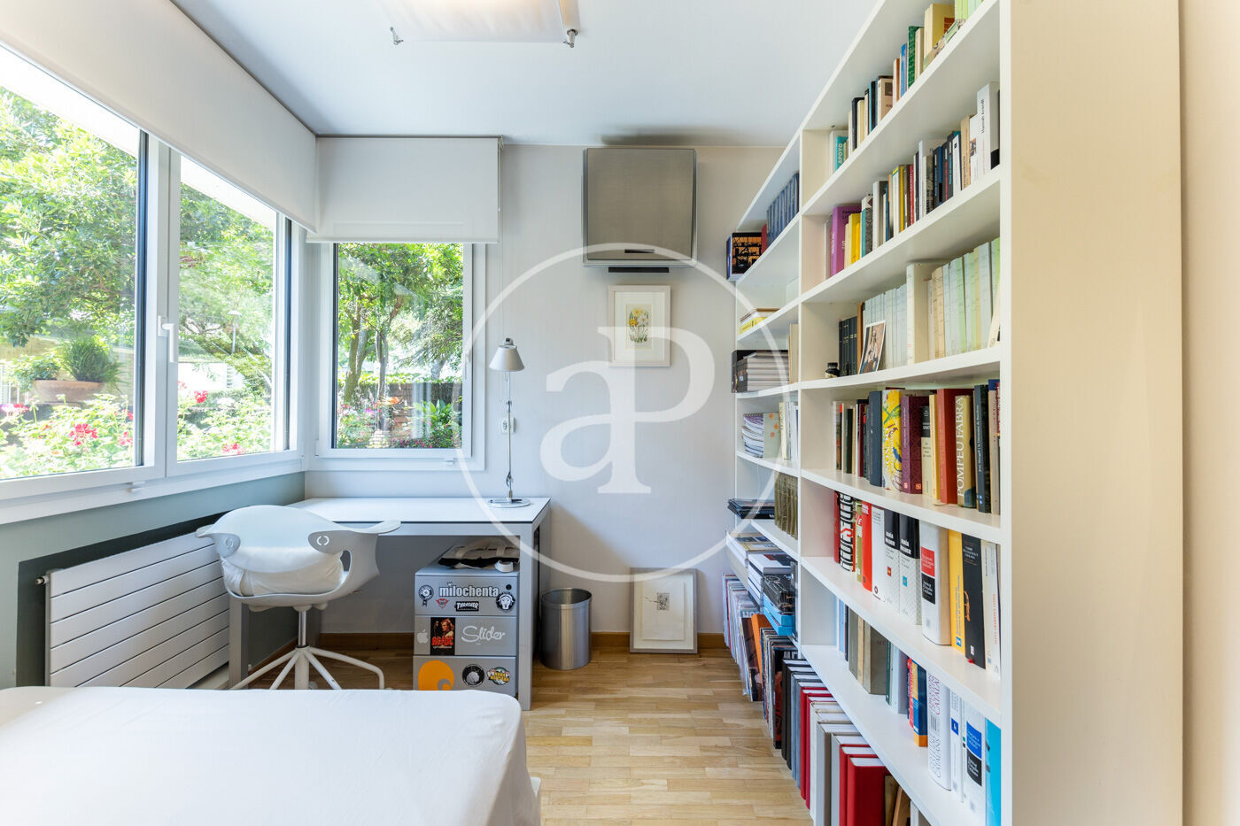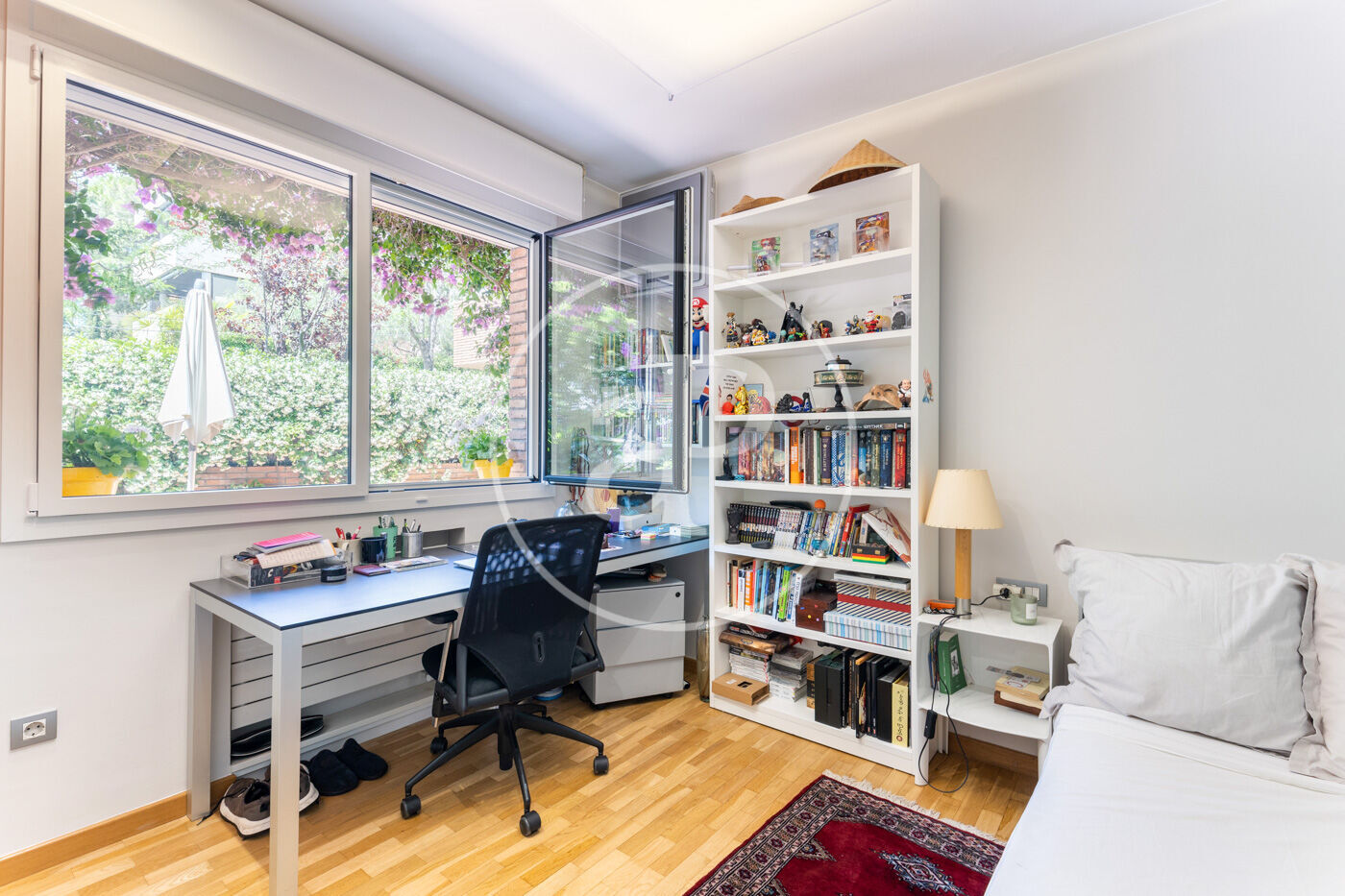 El pis compta amb rebedor, gran saló menjador amb xemeneia, fantàstica cuina amb zona d'aigües independent, gran terrassa i preciós i florit jardí visible des de totes les habitacions, a través dels seus grans finestrals. És l'únic habitatge de l'edifici amb accés directe a la zona comunitària amb piscina (pocs veïns).