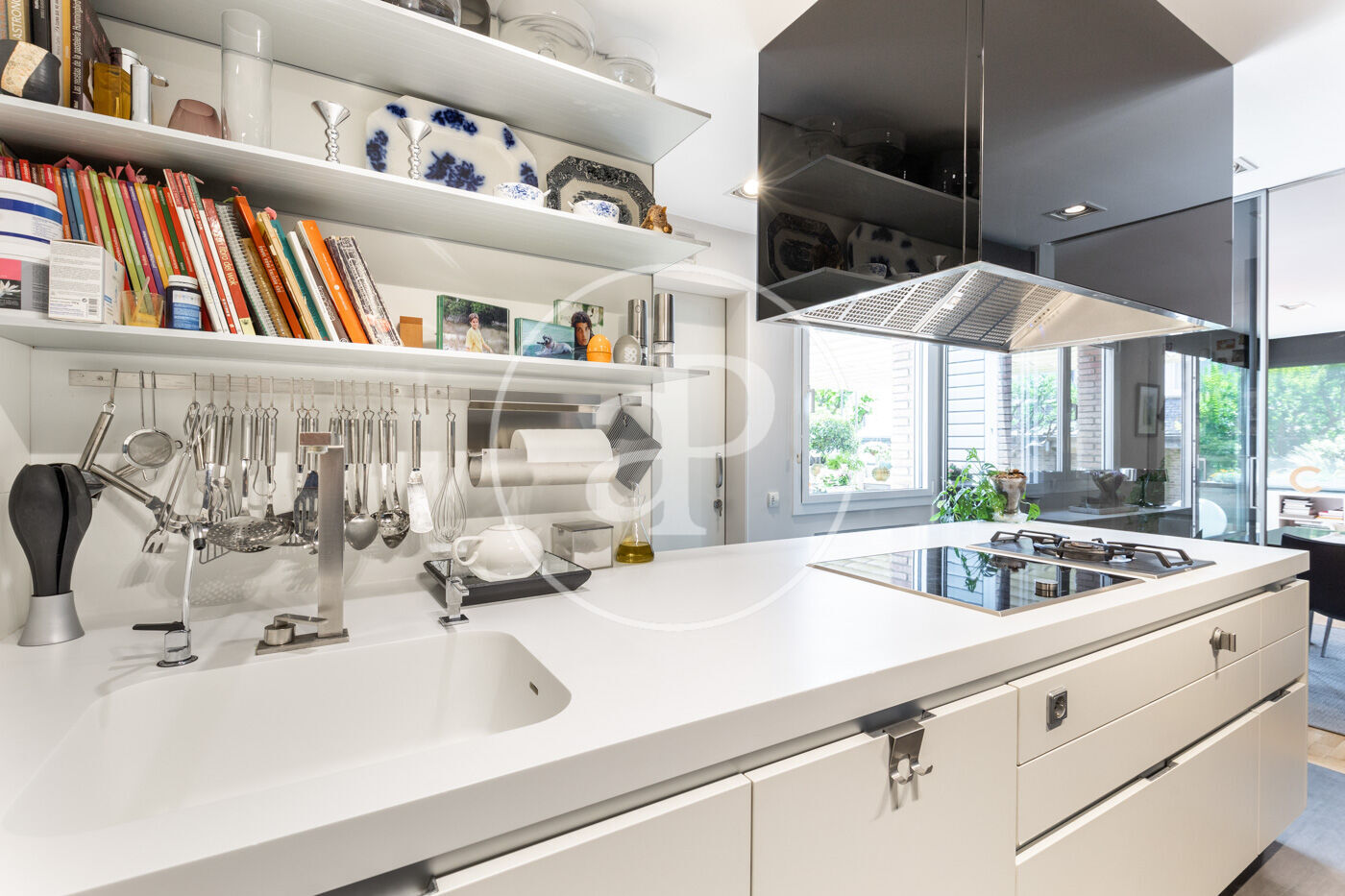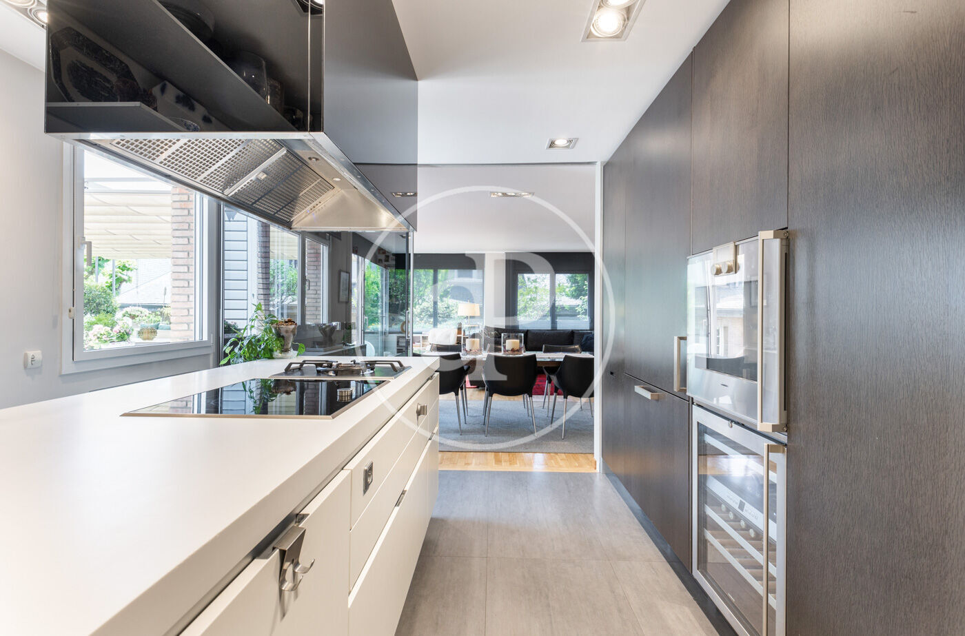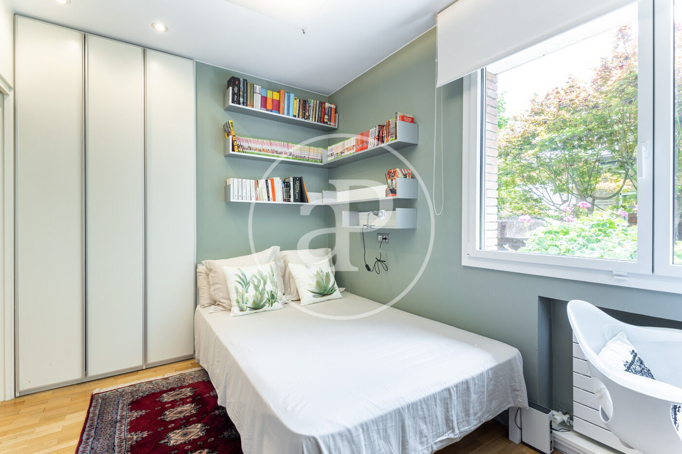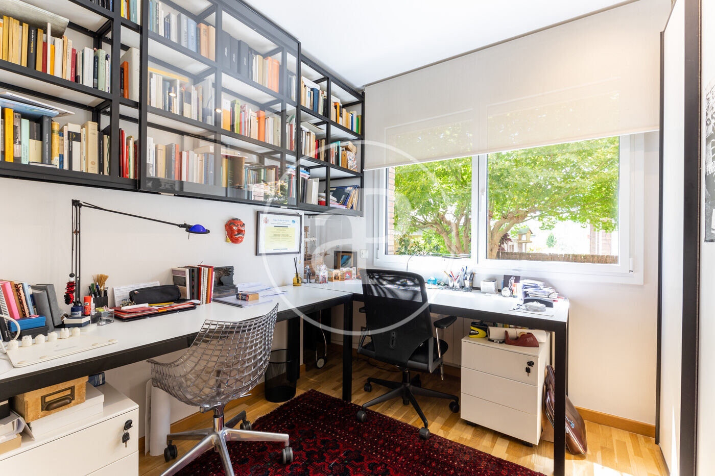 El pis compta amb rebedor, gran saló menjador amb xemeneia, fantàstica cuina amb zona d'aigües independent, gran terrassa i preciós i florit jardí visible des de totes les habitacions, a través dels seus grans finestrals. És l'únic habitatge de l'edifici amb accés directe a la zona comunitària amb piscina (pocs veïns).
