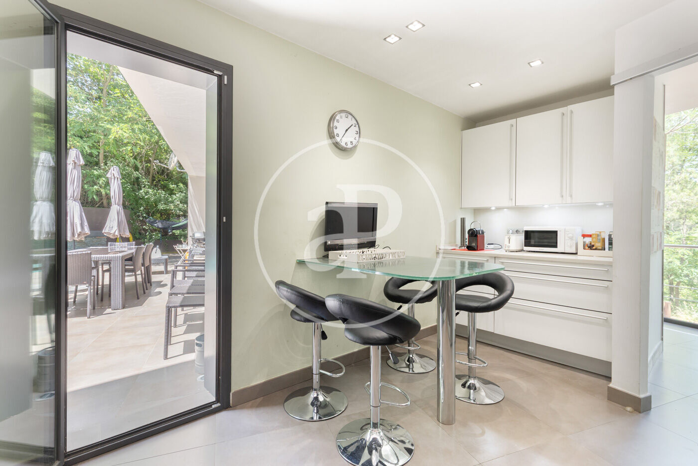 Situada en un dels barris més demandats i exclusius de Barcelona, Tres Torres, aProperties els presenta en exclusiva aquesta magnífica casa a dos vents de 96 m² i amb una àmplia terrassa de 42 m². La planta baixa es compon d’un ampli saló menjador amb grans finestrals que permeten l’entrada de llum natural i amb sortida directa a una primera terrassa de 14 m². Completen la zona de dia una àmplia cuina tipus office reformada recentment amb molt bon gust i totalment equipada amb electrodomèstics d’alta gamma. Mitjançant una moderna escala accedim a la zona de nit, situada a la segona planta i composta per un dormitori doble exterior en suite amb vestidor i un bany complet amb dutxa. La joia de la corona es troba a la segona planta exterior, a la qual s’hi accedeix pel pati de la planta baixa: una gaudible terrassa de 42 m² amb pèrgola bioclimàtica amb tancament automàtic. La propietat es troba en molt bon estat, compta amb aire condicionat per split, calefacció individual per radiadors tant a la zona de dia com a la de nit, jardí amb reg automàtic, instal·lacions i caldera nova. Una oportunitat de viure en una de les zones més exclusives i residencials de Barcelona, envoltada de tot tipus de comerços, clíniques, escoles i molt ben comunicada amb les estacions de ferrocarrils de Tres Torres, Sarrià, Rondes i molt a prop de la Diagonal. No deixi de visitar-la amb aProperties i converteixi-la en la seva nova llar!