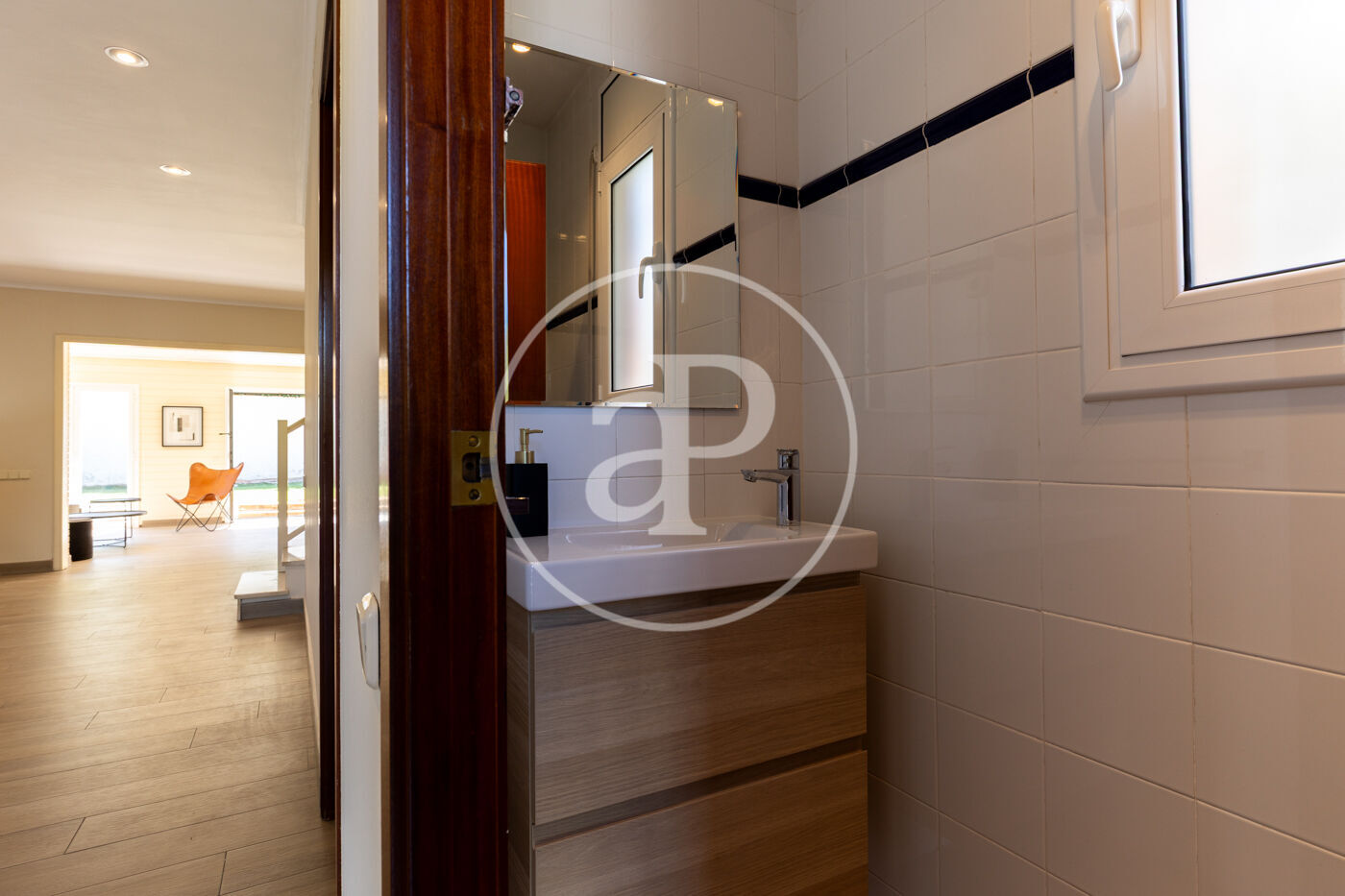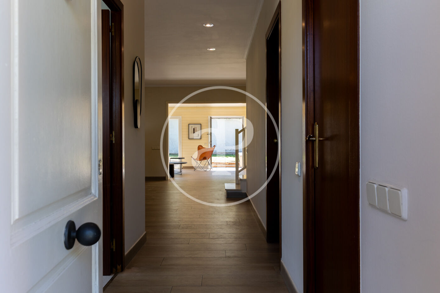 La propietat disposa de tres plantes. A la planta principal hi trobem una cuina amb illa, totalment equipada amb electrodomèstics nous, un ampli saló-menjador amb sortida al jardí i un lavabo de cortesia.