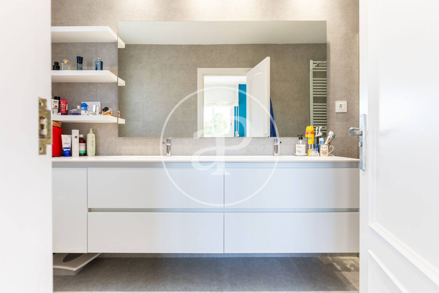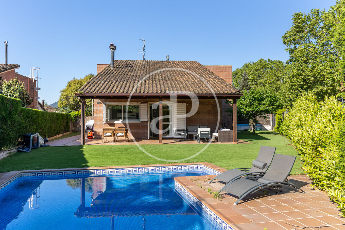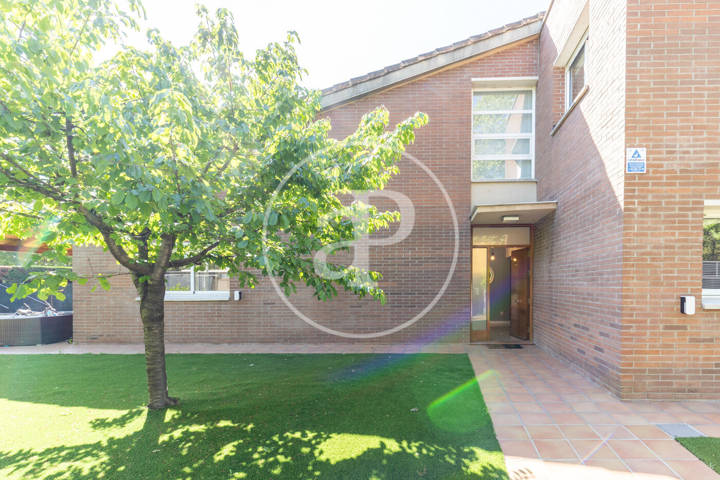 A Aproperties, ens complau presentar aquesta magnífica residència situada a la cobejada zona de Can Mates, Sant Cugat del Vallès, a només dos minuts a peu de l'estació de Mirasol. Construïda el 2010 i renovada el 2019, aquesta propietat s'alça sobre un terreny de 787 m², amb una superfície construïda de 474 m², distribuïda en tres nivells que combinen luxe i funcionalitat. Planta principal: En entrar, un ampli rebedor condueix a un majestuós saló-menjador de més de 60 m², que s'obre directament a una àmplia terrassa que abasta tota l'amplada de la façana posterior, oferint vistes al cuidat jardí. La cuina de concepte obert, equipada amb electrodomèstics d'alta gamma i una elegant illa central, s'integra harmoniosament a l'espai, creant un ambient ideal per a l'entreteniment. Aquesta planta també disposa d'una habitació doble per a convidats, un bany complet, una pràctica sala d'aigües i un espaiós garatge amb capacitat per a dos cotxes i diverses motocicletes. Planta superior: La zona de descans acull una impressionant suite principal que inclou una sala d'estar privada, a més de dues habitacions en suite que comparteixen un bany complet. Totes les estances tenen accés a una generosa terrassa que s'estén al llarg de la façana, proporcionant un espai addicional per al relax i la contemplació. Planta inferior: Dissenyada com un refugi exclusiu, aquesta planta ofereix un saló privat amb accés directe a la piscina i al jardí, una màster suite de dimensions excepcionals amb un vestidor de somni i una sala de jocs oculta d'aproximadament 45 m², perfecta per a l'entreteniment familiar. Exterior: L'àrea exterior delecta amb una elegant piscina, un jardí cuidat i un vestidor amb bany complet. Les instal·lacions tècniques inclouen innovacions com plaques solars amb bateries d'emmagatzematge, descalcificador, sistema d'aspiració centralitzada i equips de piscina ubicats estratègicament per minimitzar sorolls, garantint el màxim confort i eficiència. Aquesta propietat representa una oportunitat única per a aquells que busquen una combinació de disseny contemporani, comoditats modernes i una ubicació immillorable a Sant Cugat del Vallès. Si busca una casa on ser feliç, truqui'ns i coordinarem una visita!