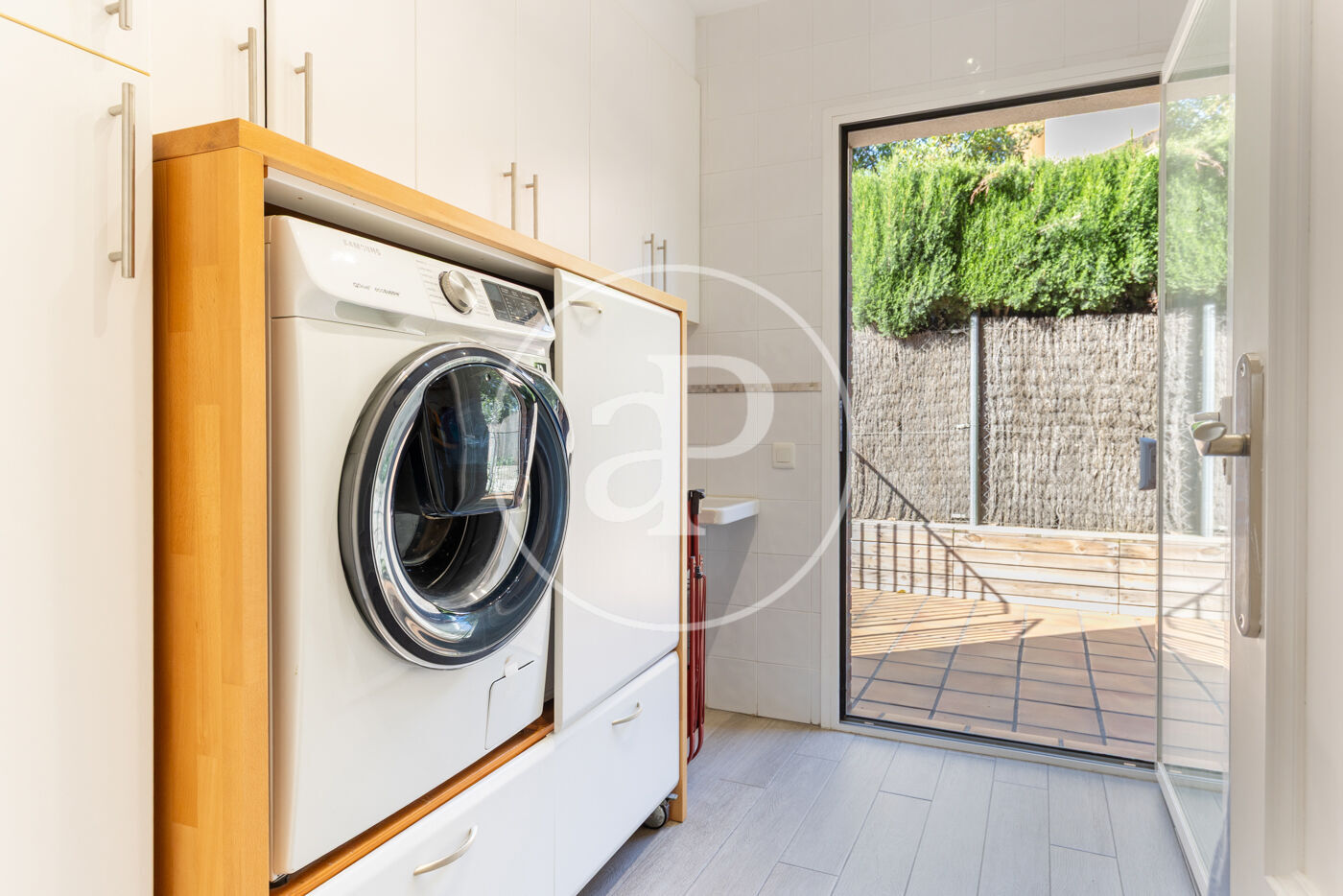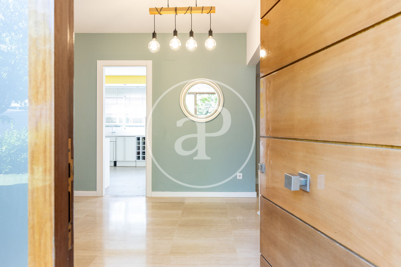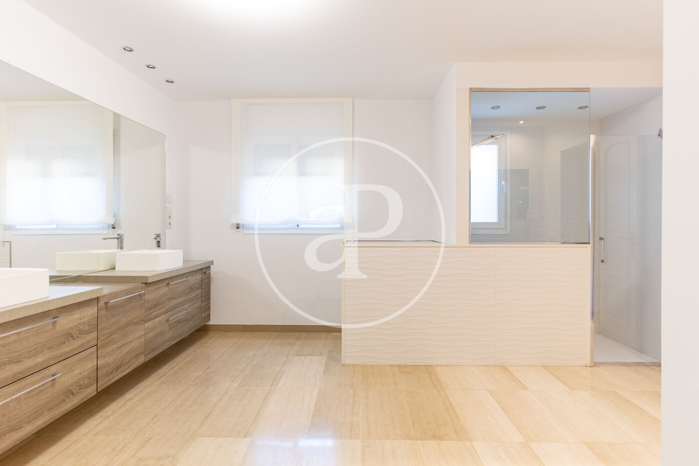 A Aproperties, ens complau presentar aquesta magnífica residència situada a la cobejada zona de Can Mates, Sant Cugat del Vallès, a només dos minuts a peu de l'estació de Mirasol. Construïda el 2010 i renovada el 2019, aquesta propietat s'alça sobre un terreny de 787 m², amb una superfície construïda de 474 m², distribuïda en tres nivells que combinen luxe i funcionalitat. Planta principal: En entrar, un ampli rebedor condueix a un majestuós saló-menjador de més de 60 m², que s'obre directament a una àmplia terrassa que abasta tota l'amplada de la façana posterior, oferint vistes al cuidat jardí. La cuina de concepte obert, equipada amb electrodomèstics d'alta gamma i una elegant illa central, s'integra harmoniosament a l'espai, creant un ambient ideal per a l'entreteniment. Aquesta planta també disposa d'una habitació doble per a convidats, un bany complet, una pràctica sala d'aigües i un espaiós garatge amb capacitat per a dos cotxes i diverses motocicletes. Planta superior: La zona de descans acull una impressionant suite principal que inclou una sala d'estar privada, a més de dues habitacions en suite que comparteixen un bany complet. Totes les estances tenen accés a una generosa terrassa que s'estén al llarg de la façana, proporcionant un espai addicional per al relax i la contemplació. Planta inferior: Dissenyada com un refugi exclusiu, aquesta planta ofereix un saló privat amb accés directe a la piscina i al jardí, una màster suite de dimensions excepcionals amb un vestidor de somni i una sala de jocs oculta d'aproximadament 45 m², perfecta per a l'entreteniment familiar. Exterior: L'àrea exterior delecta amb una elegant piscina, un jardí cuidat i un vestidor amb bany complet. Les instal·lacions tècniques inclouen innovacions com plaques solars amb bateries d'emmagatzematge, descalcificador, sistema d'aspiració centralitzada i equips de piscina ubicats estratègicament per minimitzar sorolls, garantint el màxim confort i eficiència. Aquesta propietat representa una oportunitat única per a aquells que busquen una combinació de disseny contemporani, comoditats modernes i una ubicació immillorable a Sant Cugat del Vallès. Si busca una casa on ser feliç, truqui'ns i coordinarem una visita!