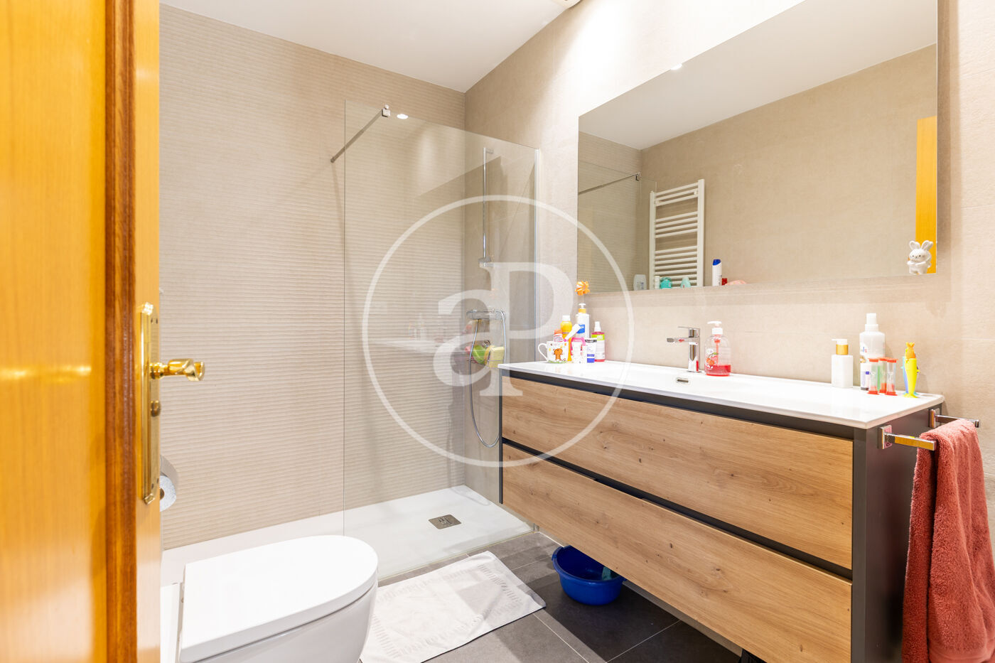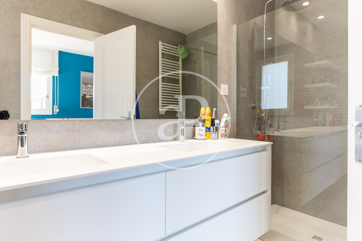 A la primera planta ens sorprèn gratament un segon saló amb llar de foc per gaudir en família o perquè els nens tinguin un segon espai de lleure. El saló connecta amb tres habitacions, una d’elles en suite i dues habitacions dobles amb un bany complet que les dona servei. Una vegada més, les habitacions d’aquest immoble són tan àmplies que les dues dobles es podrien redistribuir, si calgués, i convertir-les en tres dobles. Els banys i el saló de la planta superior van ser renovats fa un any.