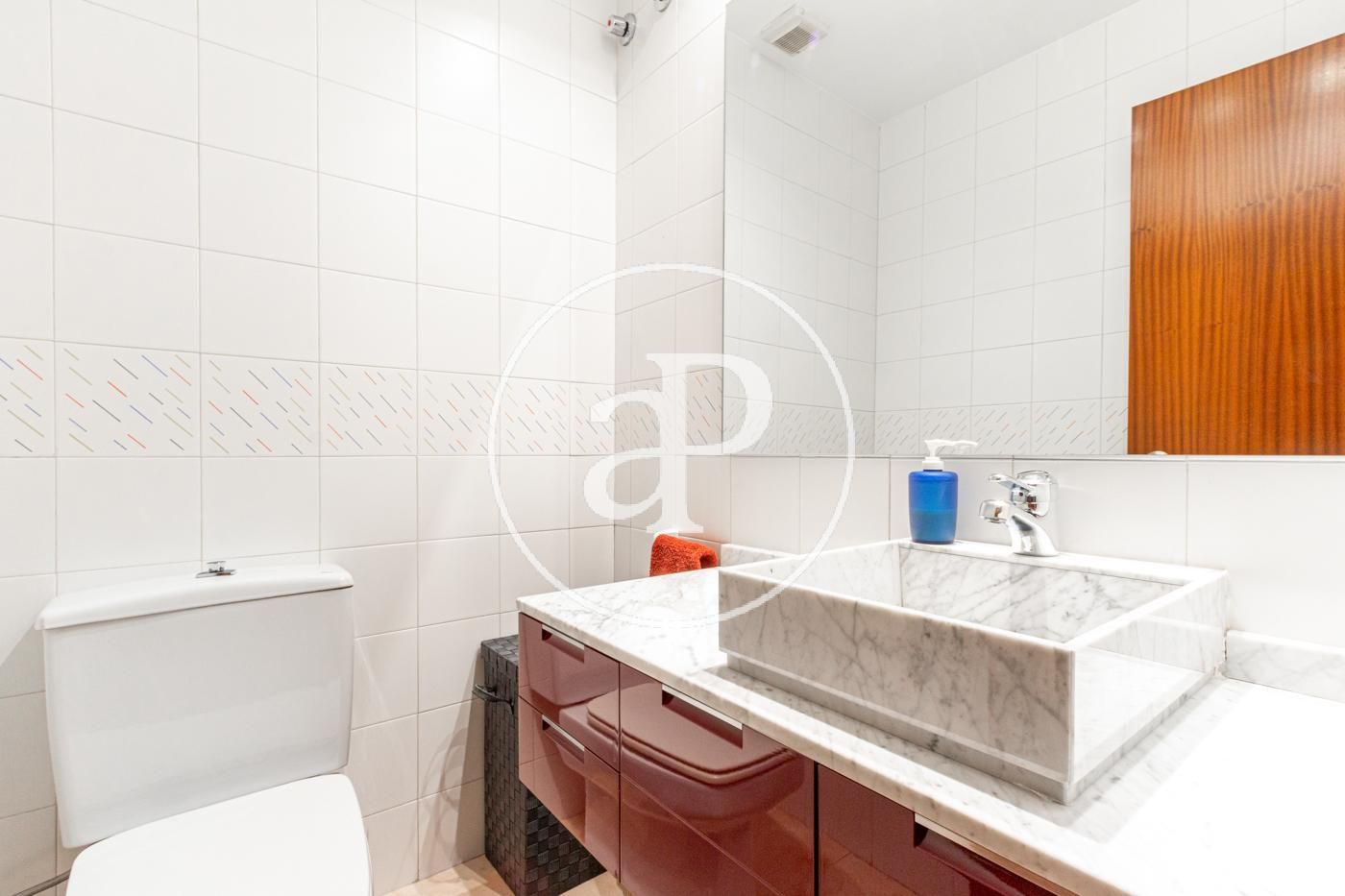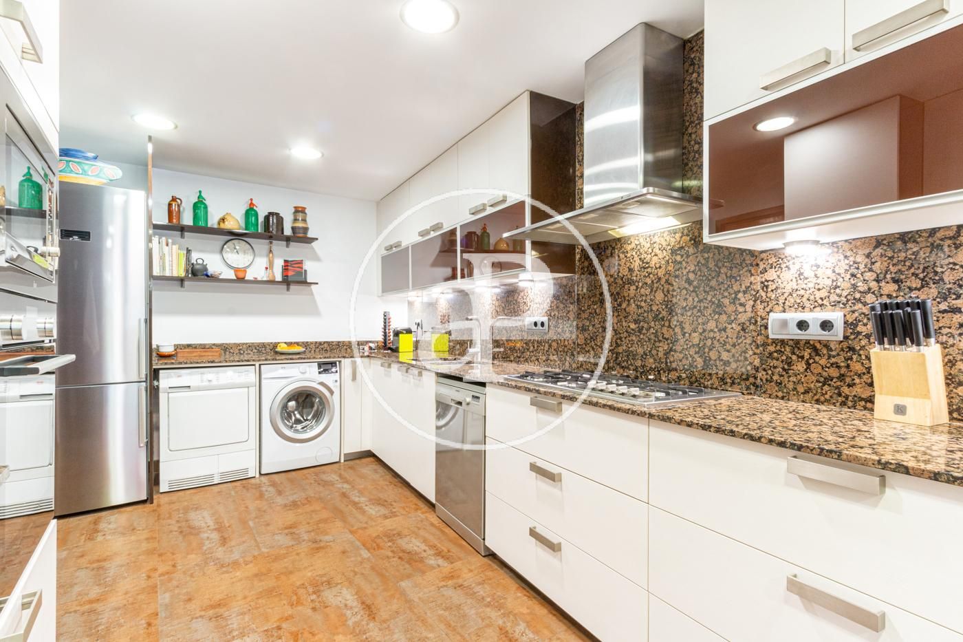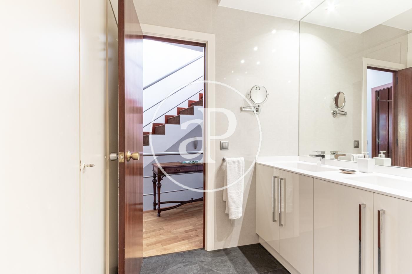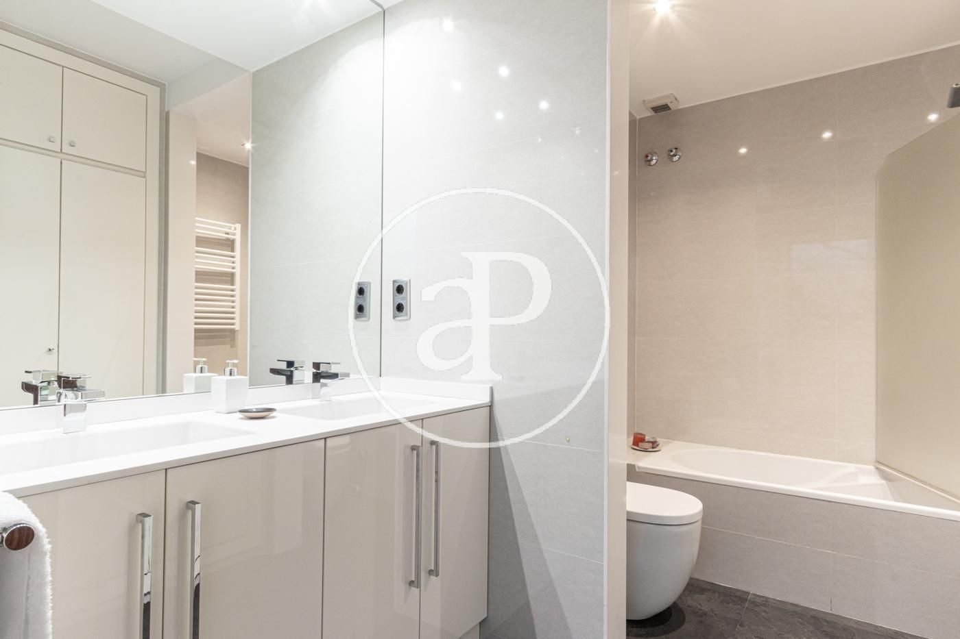 En una de les zones més exclusives de Barcelona, amb una superfície total de 159,16 m², distribuïts en 151,52 m² d’habitatge i 7,64 m² de terrassa, aquesta propietat ofereix un equilibri perfecte entre disseny, qualitat i confort. Situada a la tercera planta (cinquena planta real), a un pas de Rambla Catalunya i Passeig de Gràcia. Aquest elegant habitatge ha estat reformat amb materials d’alta qualitat i acabats de luxe. L’habitatge compta amb tres dormitoris, incloent-hi una suite principal amb vestidor i bany privat. Un ampli saló/menjador amb vistes a l’Avinguda Diagonal connectat amb la cuina totalment equipada, ideal per gaudir de trobades familiars i socials. A més, disposa d’un balcó, una zona de safareig, un lavabo de cortesia i un bany complet addicional. Els interiors són un testimoni del luxe i exclusivitat, amb acabats de primera qualitat i tecnologia punta que garanteixen la màxima comoditat i eficiència energètica. Amb una superfície de 37,74 m² per al saló i 13,01 m² per al menjador, aquesta zona es caracteritza per la seva lluminositat gràcies a les grans finestres que permeten l’entrada de llum natural i ofereixen vistes espectaculars a l’Avinguda Diagonal. Les cornises, les motllures del sostre i el parquet de roure natural aporten calidesa clàssica a una llar fresca i renovada. El menjador es connecta amb la cuina, donant lloc a un espai culinari de 10,94 m² dissenyat per satisfer les necessitats més exigents. La cuina ha estat feta a mida amb mobles de la marca Santos en acabat cashmere, electrodomèstics d’alta gamma Siemens, i un taulell porcelànic Concrete Smoke de 12 mm. Al mateix temps, la il·luminació encastada i els acabats minimalistes en tons neutres aporten un ambient modern i net a l’espai. Entre la cuina i el menjador, trobaràs un pràctic espai d’emmagatzematge que inclou prestatgeries integrades i armaris a mida, optimitzant cada centímetre disponible per mantenir l’ordre i l’organització sense comprometre l’estètica de la llar. La cuina es complementa amb un safareig i un lavabo de cortesia. La distribució de l’habitatge està organitzada en dues àrees clarament definides. El rebedor, situat al centre de l’habitatge, separa les zones de dia i de nit. Així, les dues habitacions principals situades a la zona nocturna ofereixen el màxim espai de tranquil·litat. A més, hi ha una habitació interior que dona a un tranquil pati de llums. La suite principal de 13,51 m² inclou un vestidor i un bany privat, oferint un espai íntim i luxós, amb sortida a un balcó de 6 m² orientat al carrer Còrsega. L’habitació individual comparteix el balcó amb l’habitació principal. Ambdues habitacions són àmplies i lluminoses, gràcies a les grans finestres que permeten l’entrada de llum natural. L’habitació interior, que s’obre a un serè pati de llums, pot ser utilitzada com a tercera habitació, despatx o zona de treball. Els banys compten amb un disseny estètic i funcional. Estan equipats amb plats de dutxa de resina color granit ciment, amb fornícules que faciliten l’ordre, aixetes encastades negre mat i lavabo porcelànic amb el moble xapat en roure.