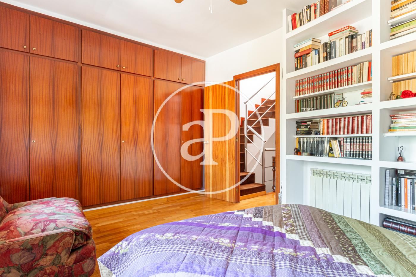 La propietat disposa de 5 dormitoris, 5 banys, piscina, 2 places d'aparcament, aire condicionat, armaris encastats, bugaderia, balcó, pati posterior, calefacció i traster.