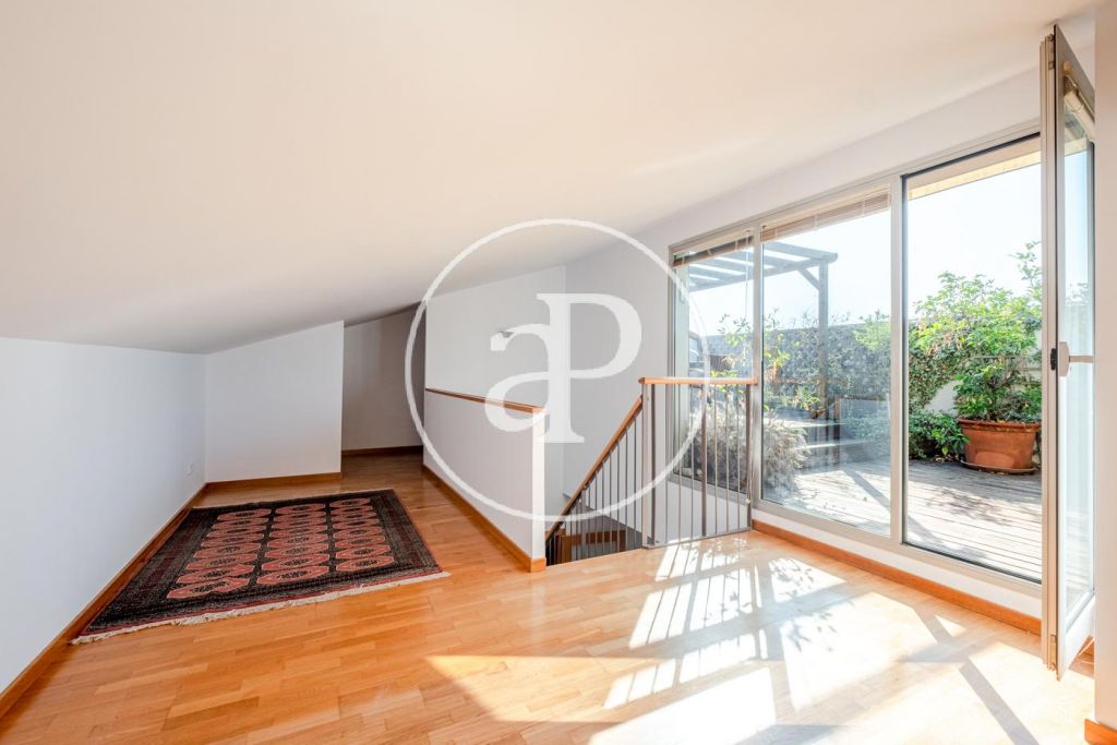 En una de les zones més selectes i tranquil·les, però alhora cèntriques de Sant Cugat del Vallès, ens trobem amb aquest bonic pis dúplex distribuït de la següent manera: