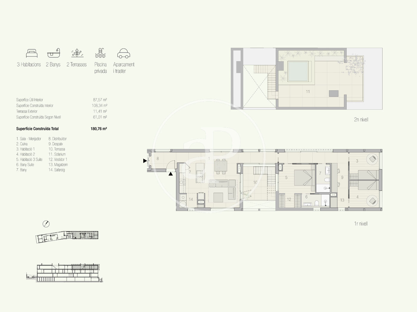 Cada habitatge ha estat dissenyat i construït amb materials de la més alta qualitat, garantint un nivell de confort i uns acabats excepcionals. Els interiors, amplis i lluminosos, estan pensats per oferir una experiència de vida de primer nivell, amb detalls d'exquisida delicadesa a cada racó. Des dels amplis espais fins als sofisticats acabats, cada detall ha estat seleccionat amb cura per crear una atmosfera de distinció i confort.