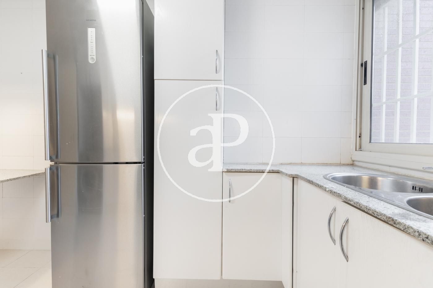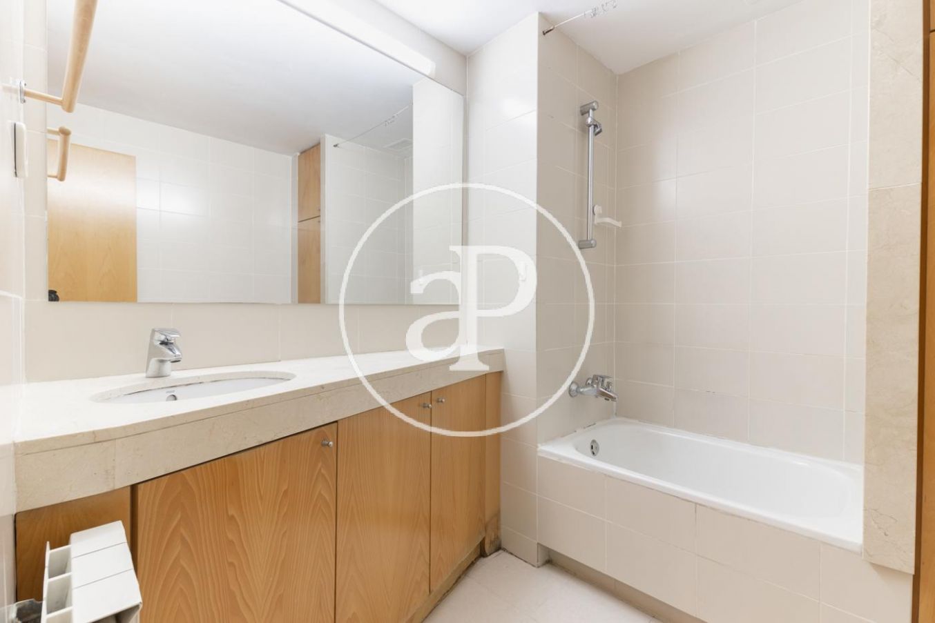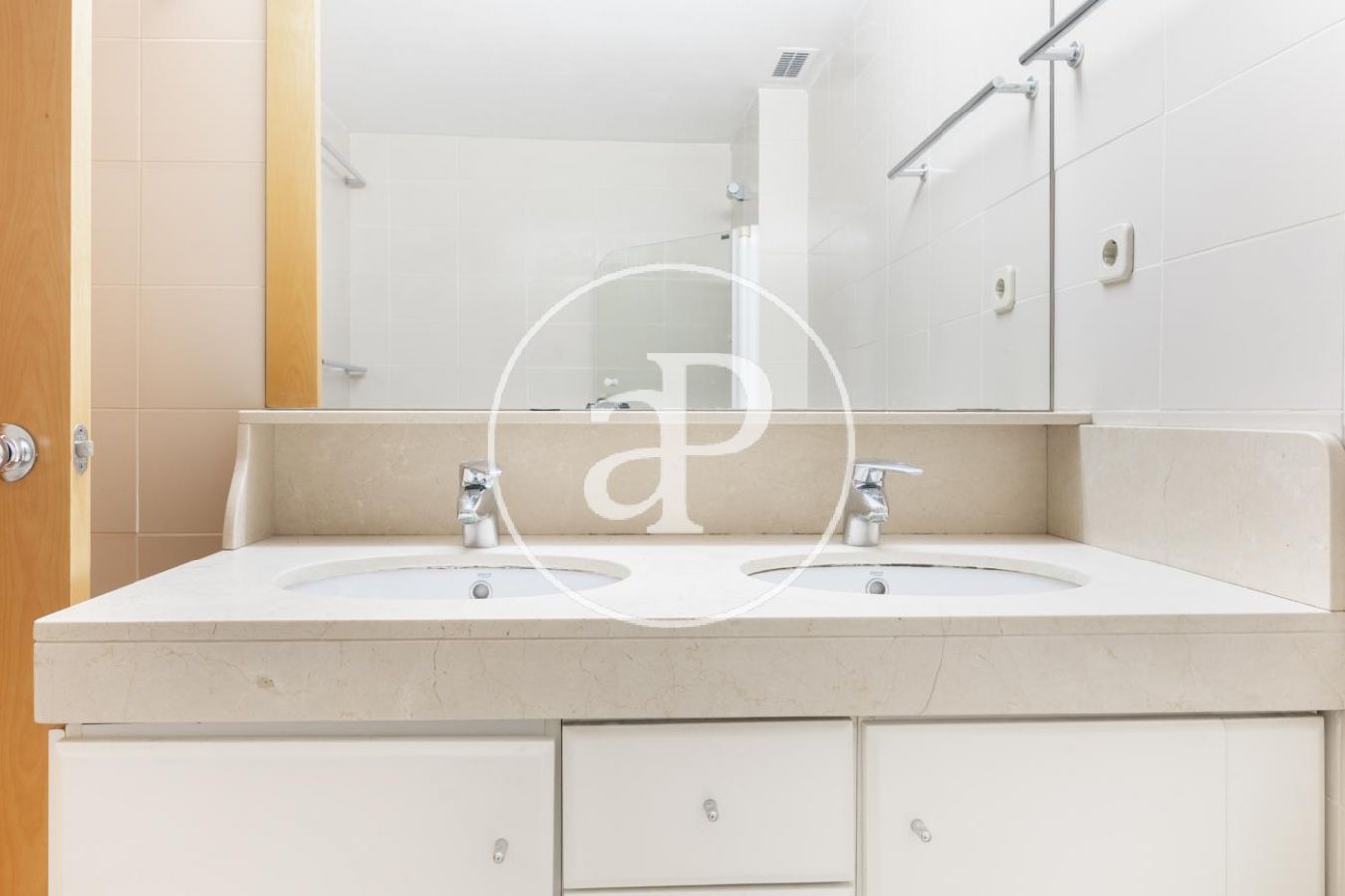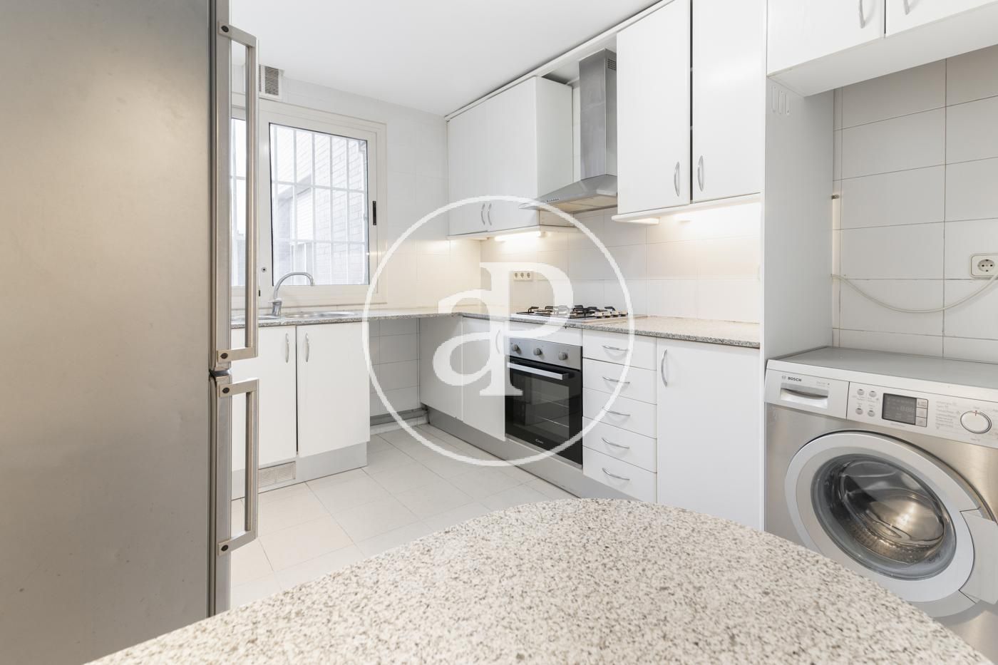 S'alça en un edifici molt ben conservat i de pocs veïns. Just en entrar trobem un bonic hall d'entrada que ens condueix feia la zona de dia composta d'un espaiós saló menjador amb sortida directa a l'exterior, gràcies als seus grans finestrals amb vista buidades. Funcional i àmplia cuina office amb zona de bugaderia independent. La zona de nit disposa de quatre habitacions (una d'elles en format suite amb bany complet), i un altre bany complet per a donar servei a les altres habitacions.