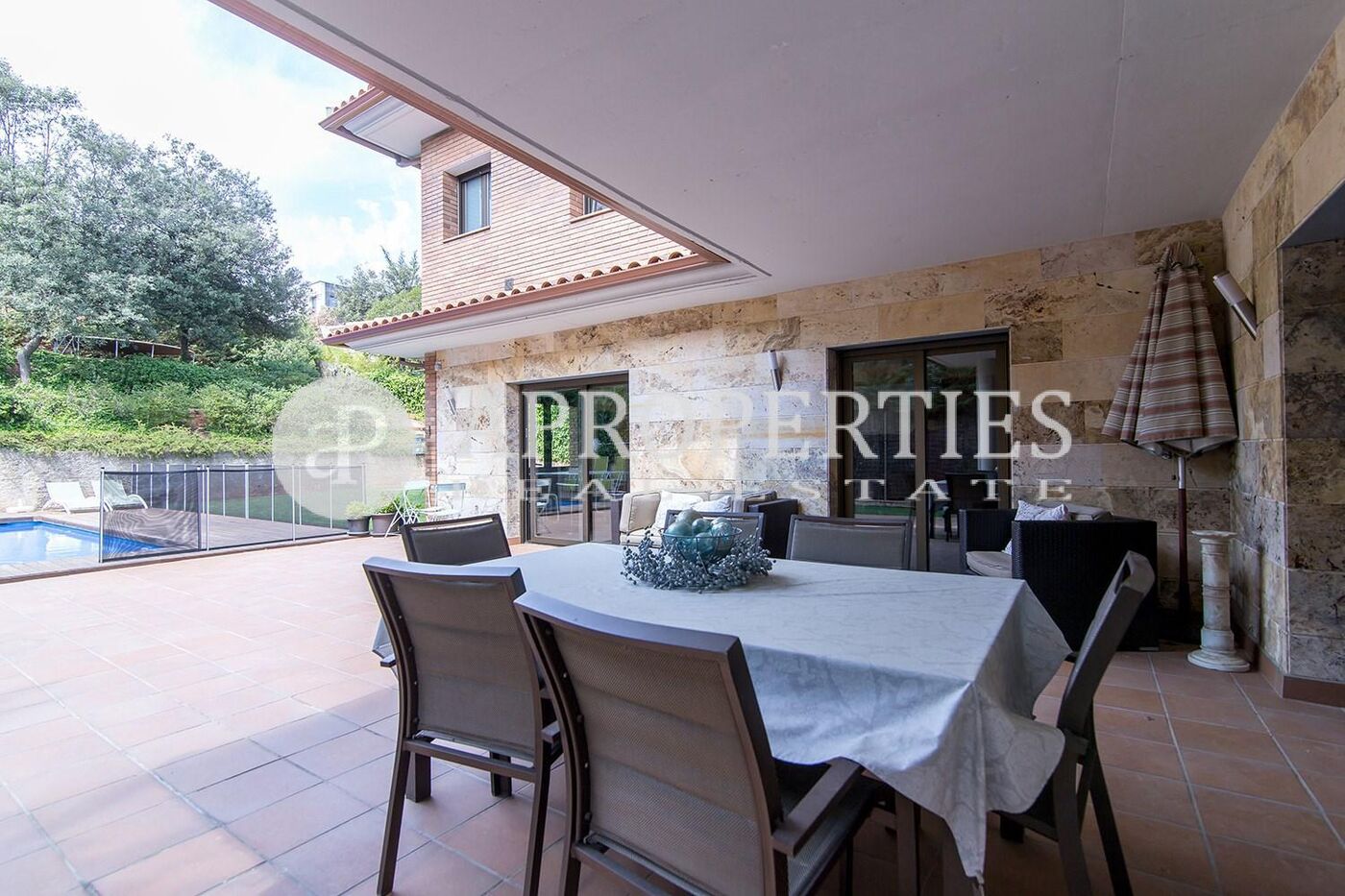 Excel·lent casa de 500m2 sobre una parcel·la de 1000m2 en una privilegiada situació propera a comerços i vies de comunicació, amb un bonic jardí mediterrani en dos ambients i una preciosa piscina. La casa compta amb totes les comoditats i gaudeix d'unes vistes impressionants des de les seves terrasses. A la primera planta es troba un ampli saló-menjador de 60m2 amb accés i vistes a un bonic porxo i al jardí, una assolellada i amplíssima cuina office amb accés al jardí i una suite/despatxo amb vistes i accés a la zona porxo. A la segona planta, o zona de nit, trobem una màster suite amb vestidor, i tres boniques suites amb accés a terrassa. Disposa d'una zona de servei en suite, pàrquing amb capacitat per a quatre cotxes, sala de jocs, magatzematge i un bany a la planta d'accés. Fusteria de cedre, doble acristallament, paviments de marbre i parquet de cedre, domòtica integrada per planta, calefacció de gas, aire condicionat, sistema descalcificador osmosi, alarma, detector de foc i aigua. Disponible a partir de l'1 de Juliol de 2016.