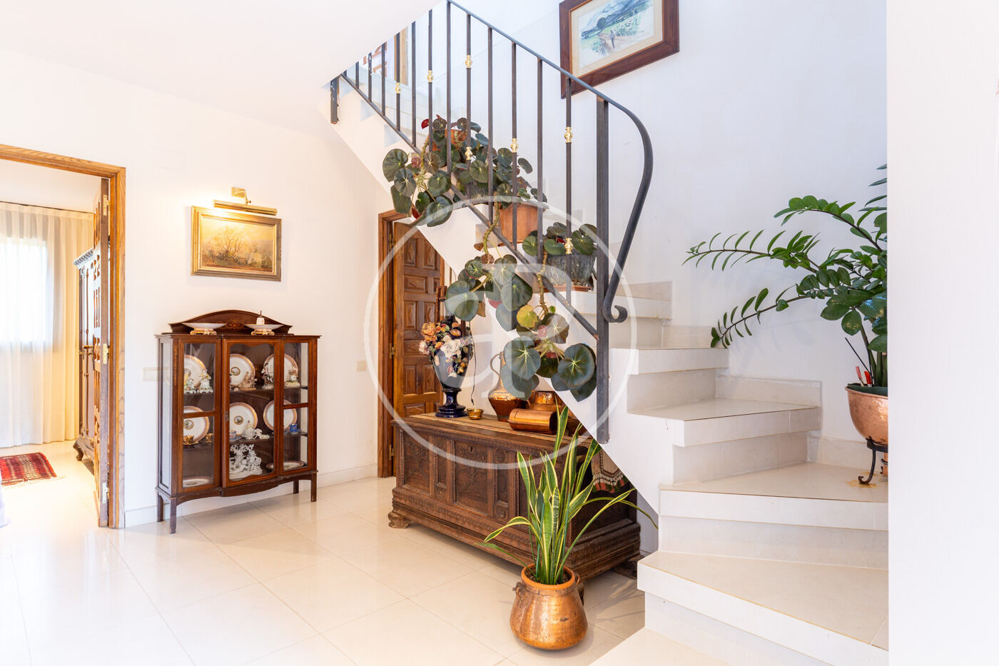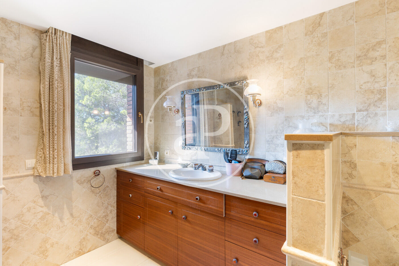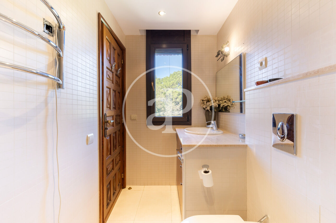 Des d’Aproperties tenim el plaer de presentar-vos aquesta exquisida casa renovada completament fa nou anys, dissenyada per apreciar la bellesa que l’envolta des de qualsevol racó. Situada a la prestigiosa zona d’Arxius, de Sant Cugat del Vallès. Orientada al sud, ofereix el refugi perfecte per a aquells que busquen l’equilibri entre sofisticació i oci a tan sols 8 minuts a peu de l’estació de tren de Valldoreix i 13 minuts a peu de l’estació de tren de Sant Cugat, del poble, els seus carrers de vianants i els seus comerços. Aquesta vila ofereix un entorn tranquil, perfecte per als amants del golf gràcies a la seva ubicació. De fàcil accés a escoles internacionals. Les grans finestres de la sala d’estar creen una experiència interior-exterior sense fissures, barrejant la vida amb el serè paisatge. En entrar a la casa, l’elegant i modern rebedor amb armaris encastats distribueix els diferents espais de la casa, on flueixen les zones de menjador, la cuina oberta i la sala d’estar amb accés directe al jardí. Aquest nivell inclou 3 dormitoris, un d’ells en suite i els altres dos, cadascun amb el seu bany complet. La suite principal es desenvolupa a la primera planta, on qui hi habiti tindrà el domini exclusiu de la zona. Compta amb gairebé 40 m², un vestidor i un bany de disseny per a una experiència similar a la d’una suite. També hi ha una altra planta dedicada exclusivament a la tercera suite, que a més de l’habitació disposa d’una sala d’estar privada amb accés directe al jardí i un celler secret que sens dubte el sorprendrà gratament. La zona de la piscina i la terrassa estan orientades al sud, cosa que proporciona unes vistes encantadores i sol durant tot el dia. La terrassa és un paradís per al relax. Característiques de primera qualitat, incloent-hi aire condicionat per conductes, una llar de foc, vestidors, armaris encastats i una cuina oberta amb rebost. El soterrani alberga la zona d’aigües i la sala de màquines. La propietat també inclou un pàrquing amb 3 places de garatge. Aquesta impressionant vila combina disseny i practicitat, amb una gran quota de privacitat. Ideal per viure-hi en família, una barreja sublim d’estil modern i detalls de luxe. Truqueu-nos per ampliar la informació i gestionar una visita!!
