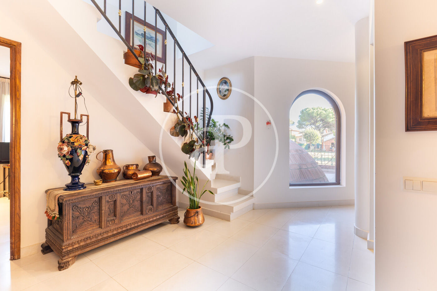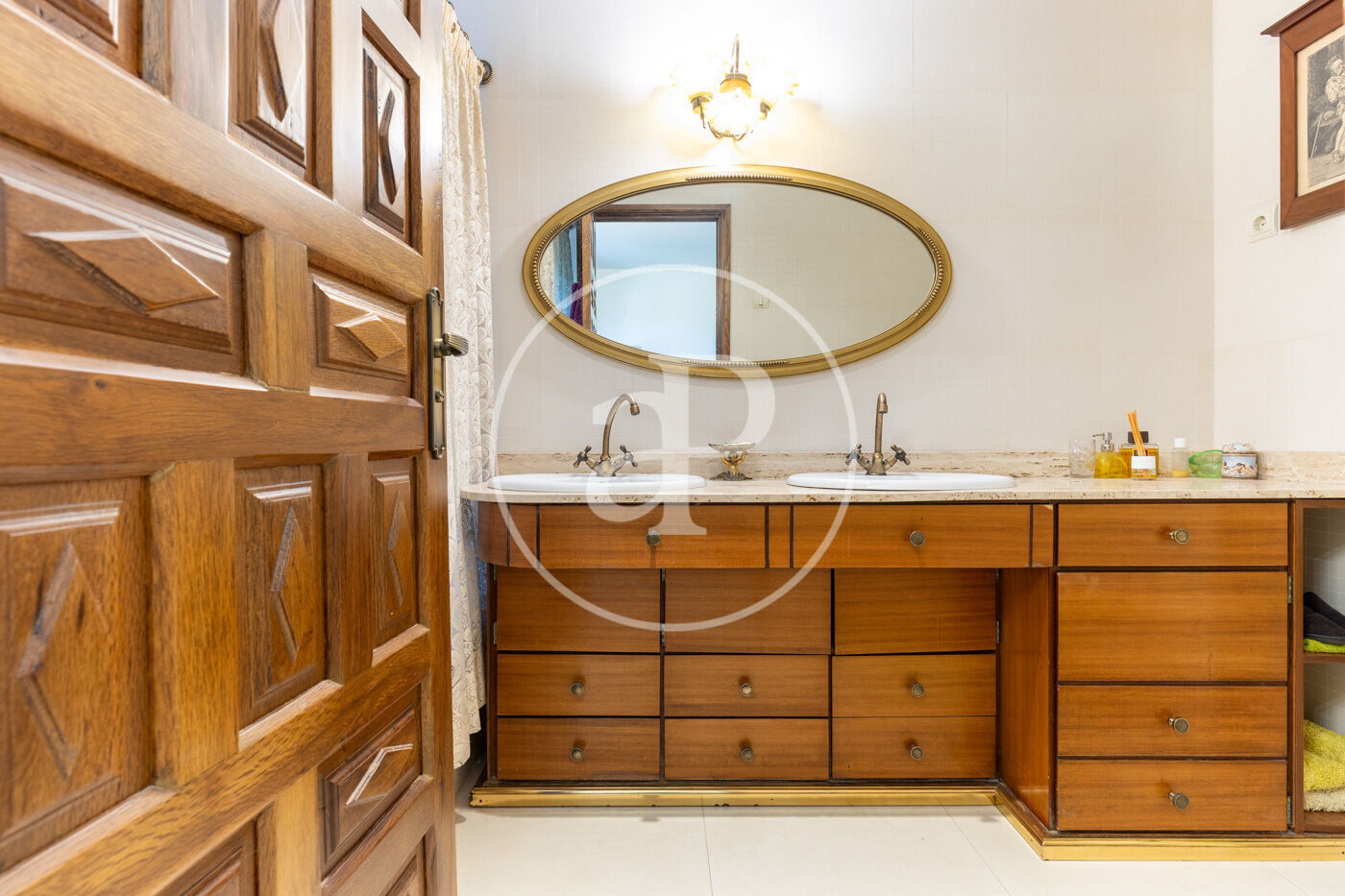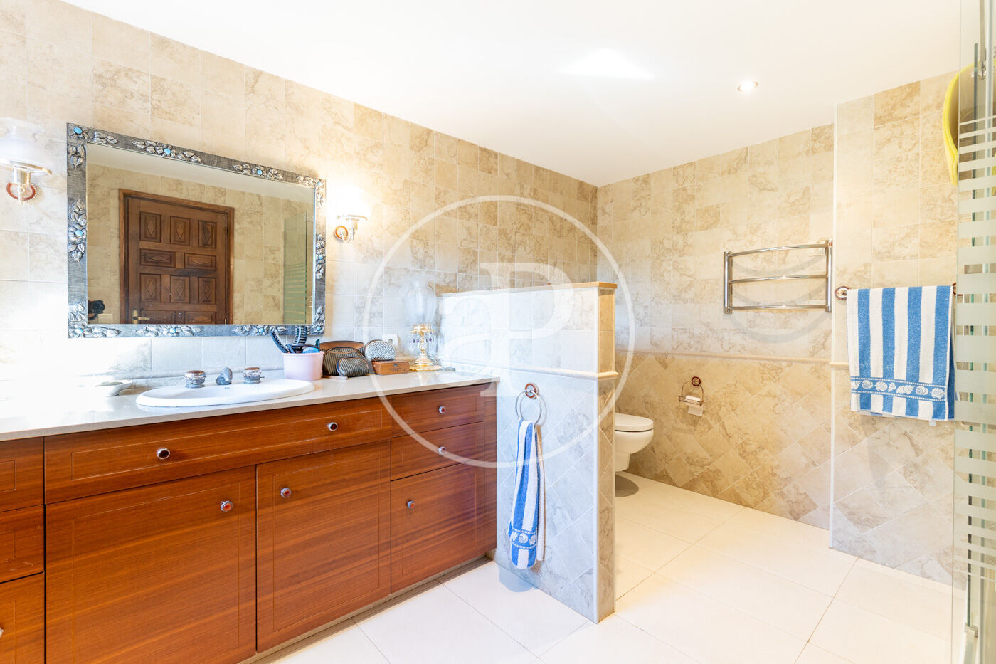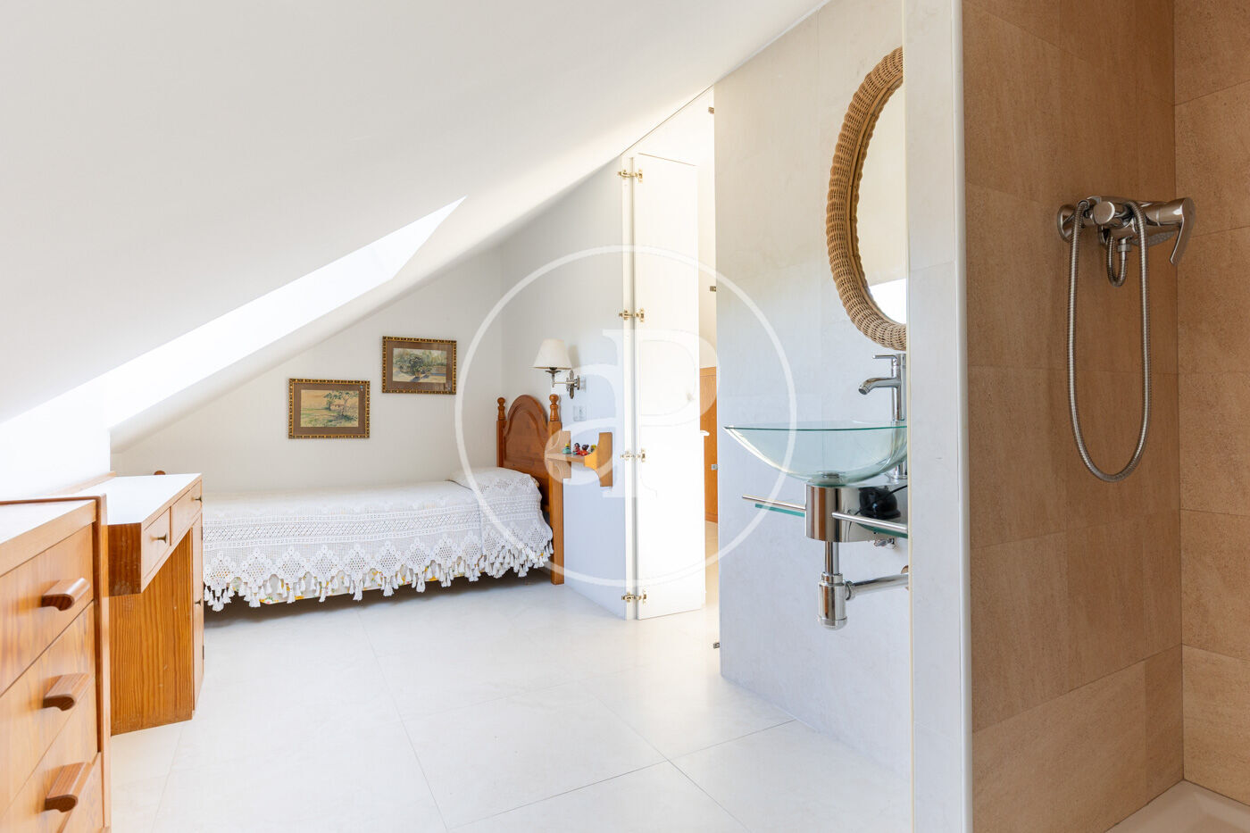 Des d’Aproperties tenim el plaer de presentar-vos aquesta exquisida casa renovada completament fa nou anys, dissenyada per apreciar la bellesa que l’envolta des de qualsevol racó. Situada a la prestigiosa zona d’Arxius, de Sant Cugat del Vallès. Orientada al sud, ofereix el refugi perfecte per a aquells que busquen l’equilibri entre sofisticació i oci a tan sols 8 minuts a peu de l’estació de tren de Valldoreix i 13 minuts a peu de l’estació de tren de Sant Cugat, del poble, els seus carrers de vianants i els seus comerços. Aquesta vila ofereix un entorn tranquil, perfecte per als amants del golf gràcies a la seva ubicació. De fàcil accés a escoles internacionals. Les grans finestres de la sala d’estar creen una experiència interior-exterior sense fissures, barrejant la vida amb el serè paisatge. En entrar a la casa, l’elegant i modern rebedor amb armaris encastats distribueix els diferents espais de la casa, on flueixen les zones de menjador, la cuina oberta i la sala d’estar amb accés directe al jardí. Aquest nivell inclou 3 dormitoris, un d’ells en suite i els altres dos, cadascun amb el seu bany complet. La suite principal es desenvolupa a la primera planta, on qui hi habiti tindrà el domini exclusiu de la zona. Compta amb gairebé 40 m², un vestidor i un bany de disseny per a una experiència similar a la d’una suite. També hi ha una altra planta dedicada exclusivament a la tercera suite, que a més de l’habitació disposa d’una sala d’estar privada amb accés directe al jardí i un celler secret que sens dubte el sorprendrà gratament. La zona de la piscina i la terrassa estan orientades al sud, cosa que proporciona unes vistes encantadores i sol durant tot el dia. La terrassa és un paradís per al relax. Característiques de primera qualitat, incloent-hi aire condicionat per conductes, una llar de foc, vestidors, armaris encastats i una cuina oberta amb rebost. El soterrani alberga la zona d’aigües i la sala de màquines. La propietat també inclou un pàrquing amb 3 places de garatge. Aquesta impressionant vila combina disseny i practicitat, amb una gran quota de privacitat. Ideal per viure-hi en família, una barreja sublim d’estil modern i detalls de luxe. Truqueu-nos per ampliar la informació i gestionar una visita!!
