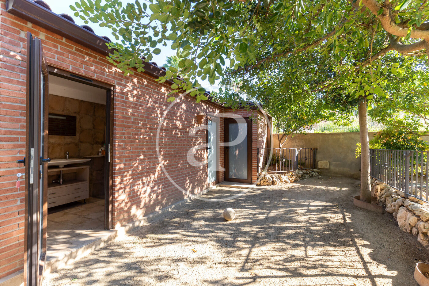 Exterior: El entorno de la vivienda es tan impresionante como su interior. Dispone de una zona ajardinada con piscina privada, amplias terrazas, un huerto y un patio, ofreciendo diferentes rincones para disfrutar del aire libre durante todo el año.