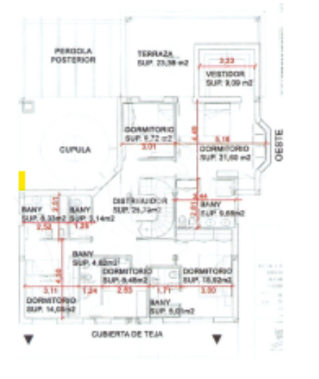 Primera planta (zona de noche): En esta planta se distribuyen cuatro habitaciones dobles, todas con armarios empotrados. Destaca la suite principal, que incluye un amplio baño y acceso a una terraza privada con vistas al Vallès.