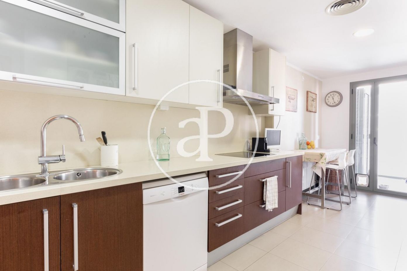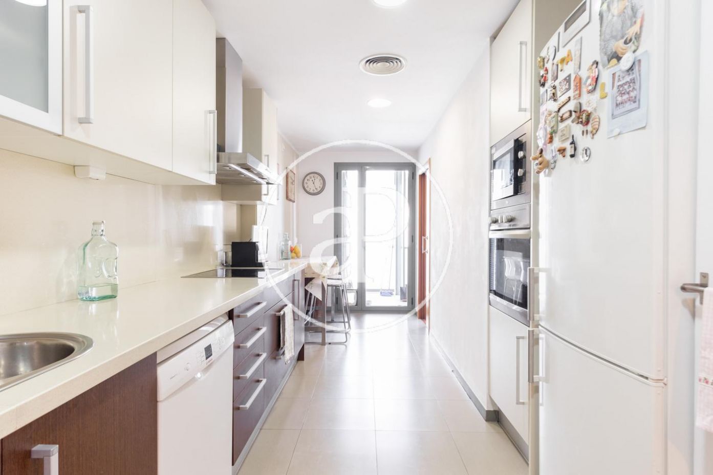 L'àmplia cuina office està totalment equipada i es pot accedir des del passadís o des del saló. Disposa d'una zona de rentat independent.