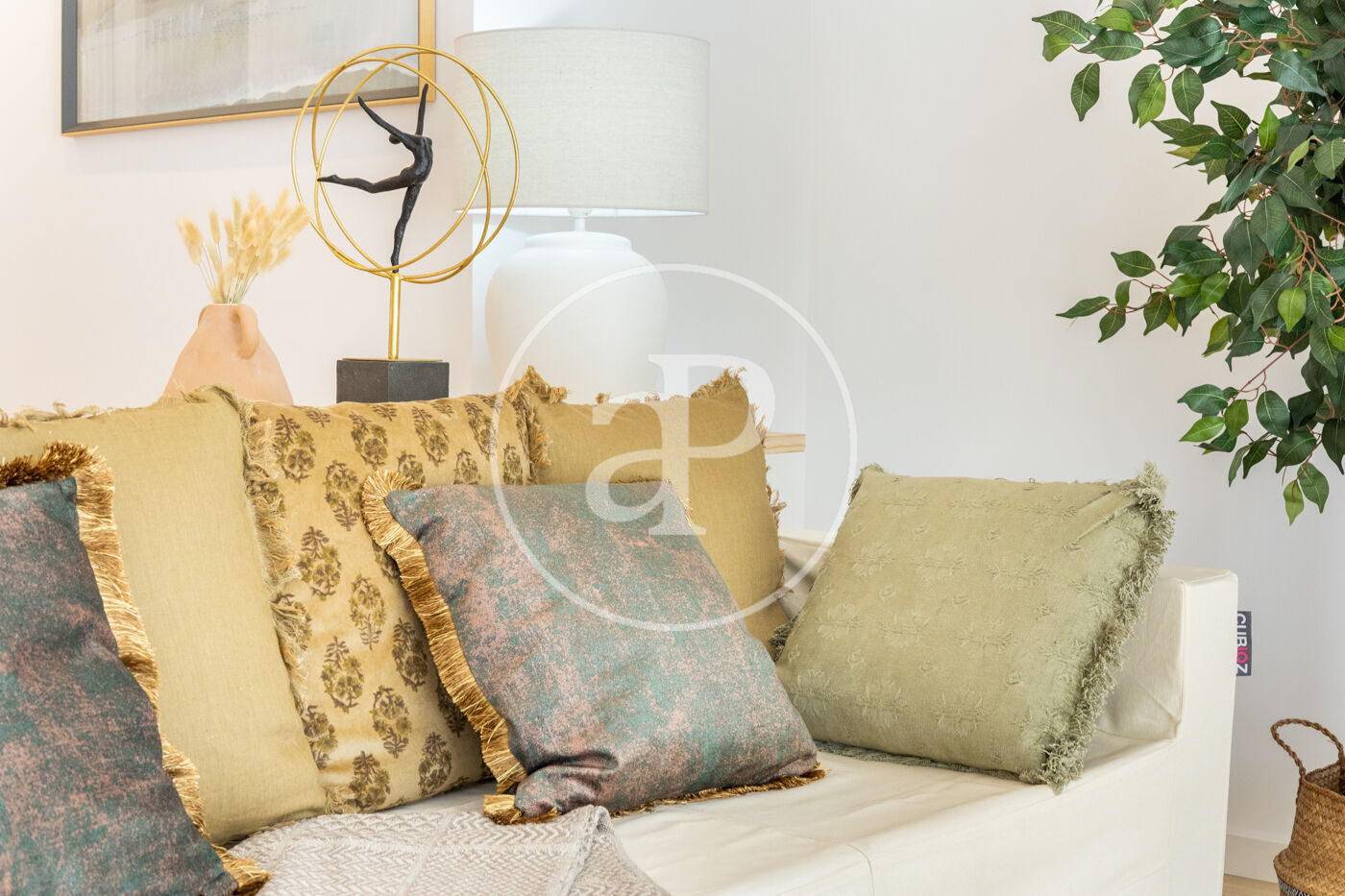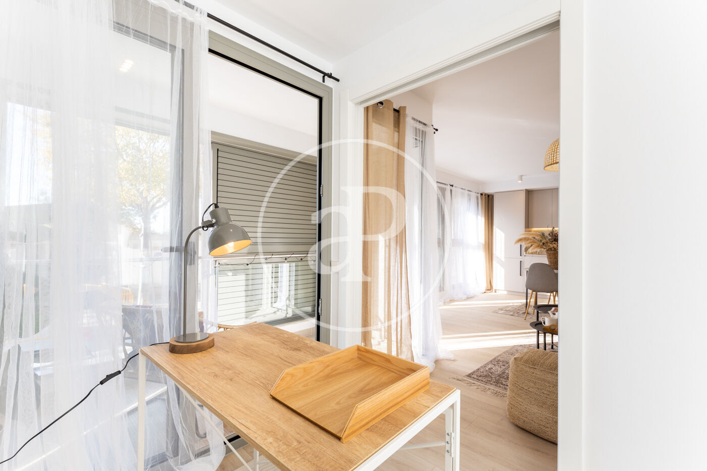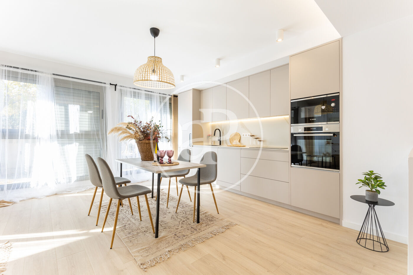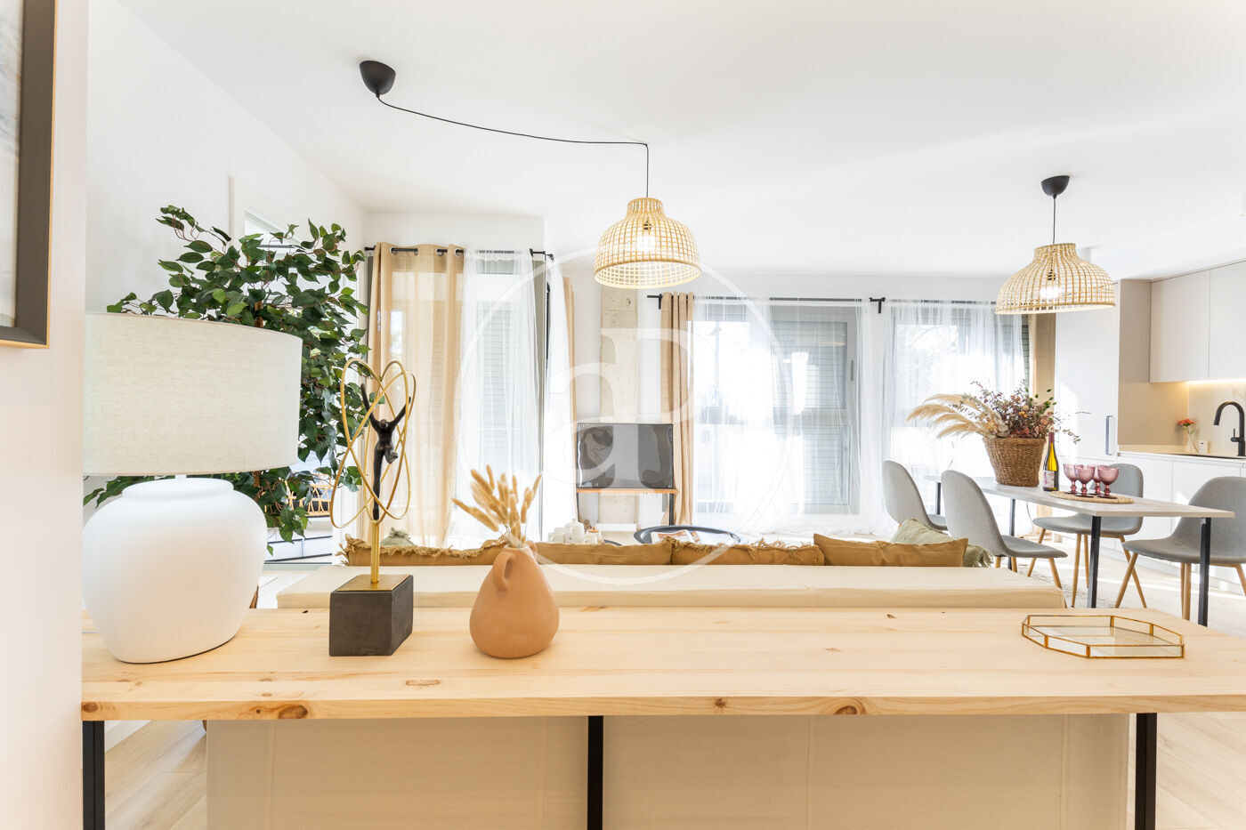 L'habitatge disposa de 93 m² (85 m² útils), es divideix en zona de dia i zona de nit, en la zona de dia trobem un ampli hall d'entrada que ens condueix a un majestuós saló-menjador amb sortida a una bonica terrassa de 6m2, cuina integrada en l'ambient amb placa d'inducció i totalment equipada amb electrodomèstics de les millors marques del mercat.