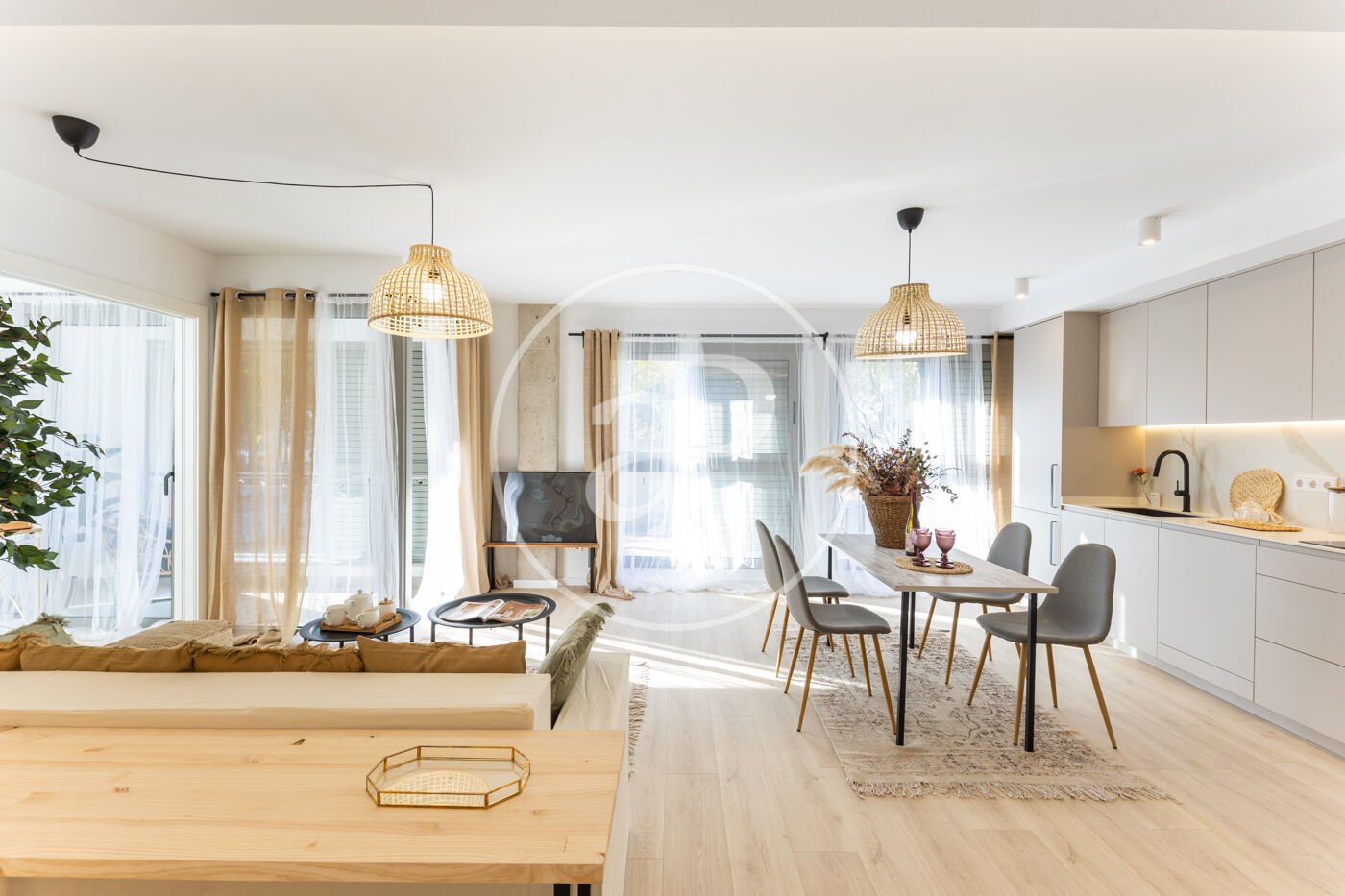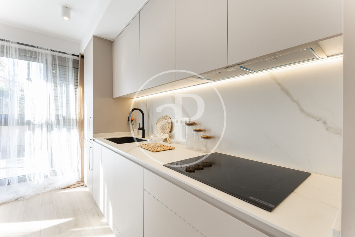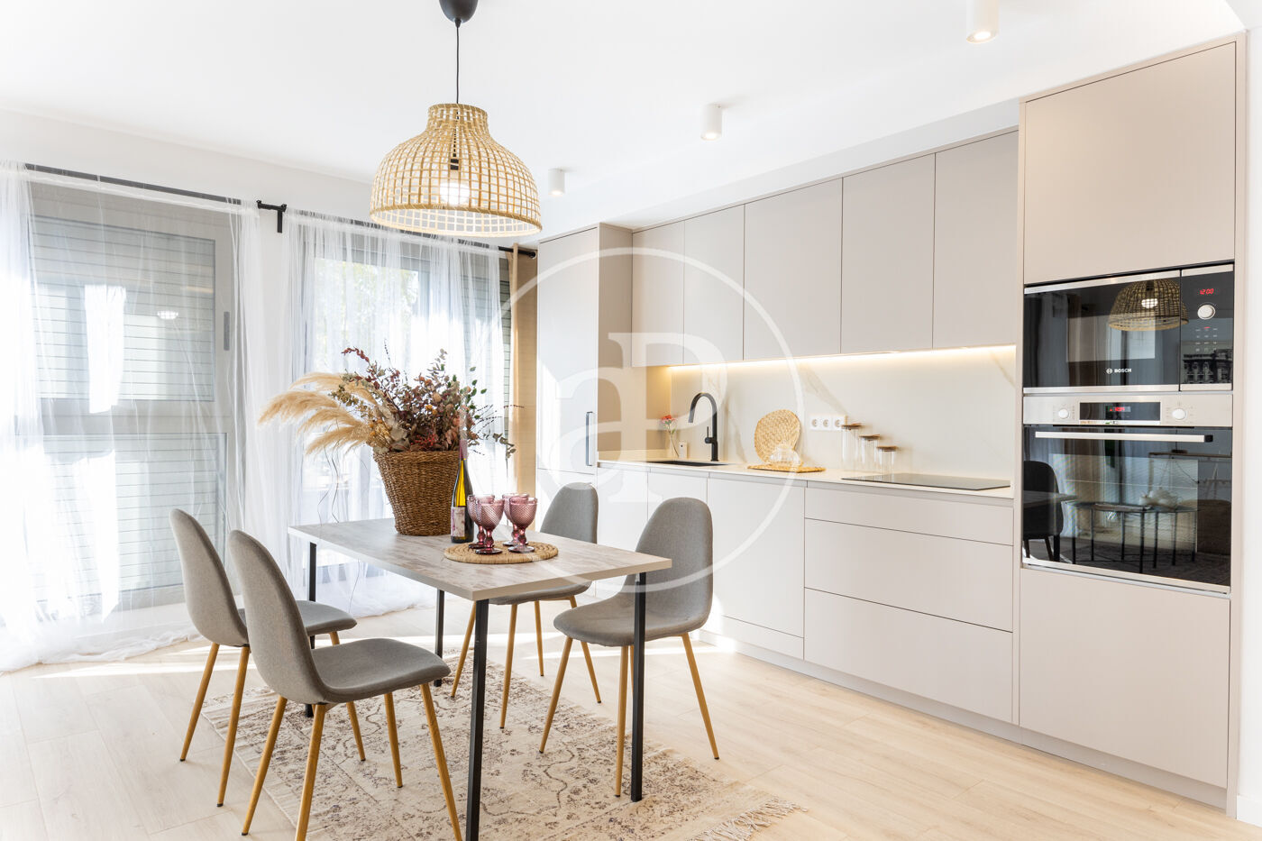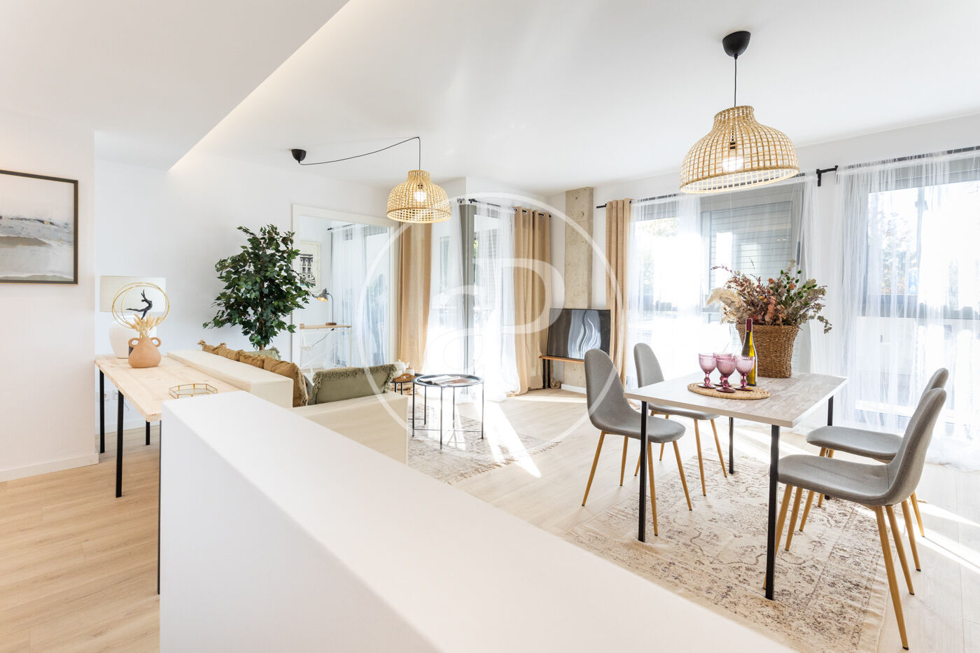 L'habitatge disposa de 93 m² (85 m² útils), es divideix en zona de dia i zona de nit, en la zona de dia trobem un ampli hall d'entrada que ens condueix a un majestuós saló-menjador amb sortida a una bonica terrassa de 6m2, cuina integrada en l'ambient amb placa d'inducció i totalment equipada amb electrodomèstics de les millors marques del mercat.
