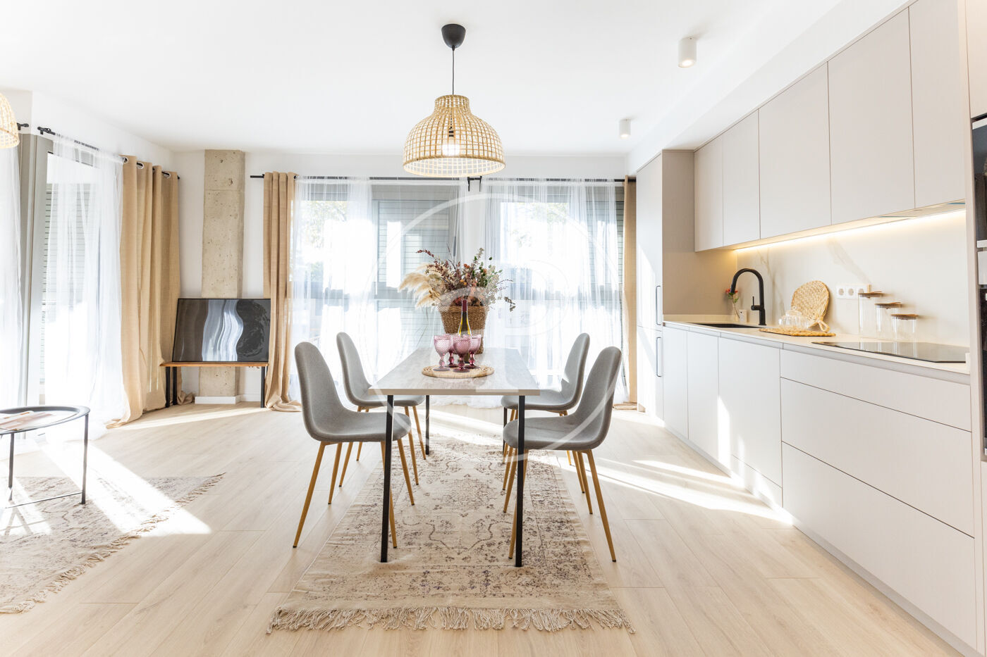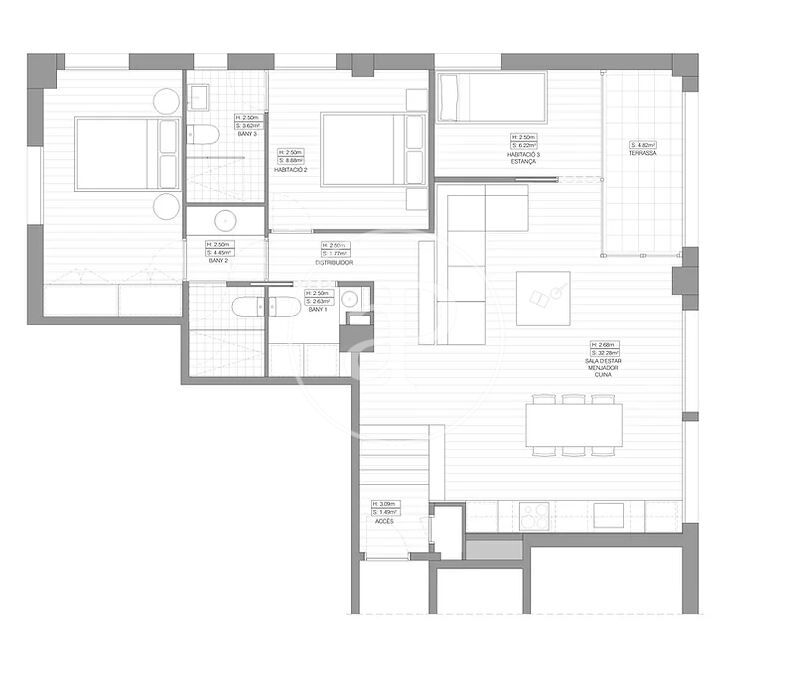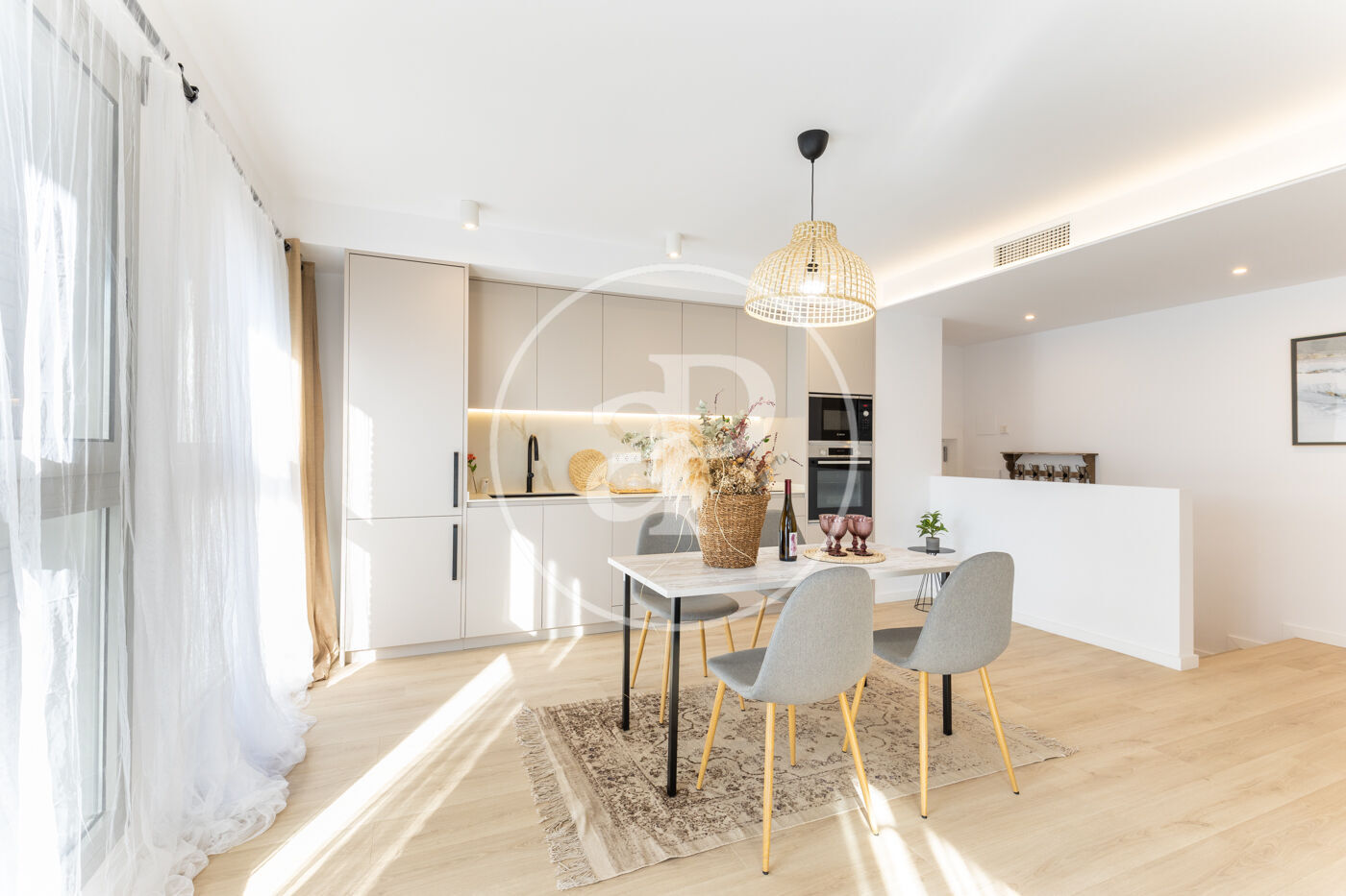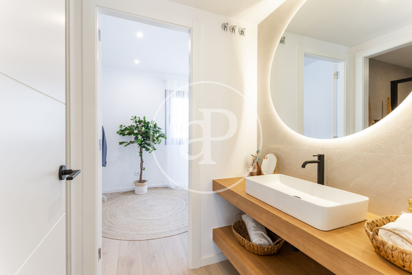L'habitatge disposa de 93 m² (85 m² útils), es divideix en zona de dia i zona de nit, en la zona de dia trobem un ampli hall d'entrada que ens condueix a un majestuós saló-menjador amb sortida a una bonica terrassa de 6m2, cuina integrada en l'ambient amb placa d'inducció i totalment equipada amb electrodomèstics de les millors marques del mercat.