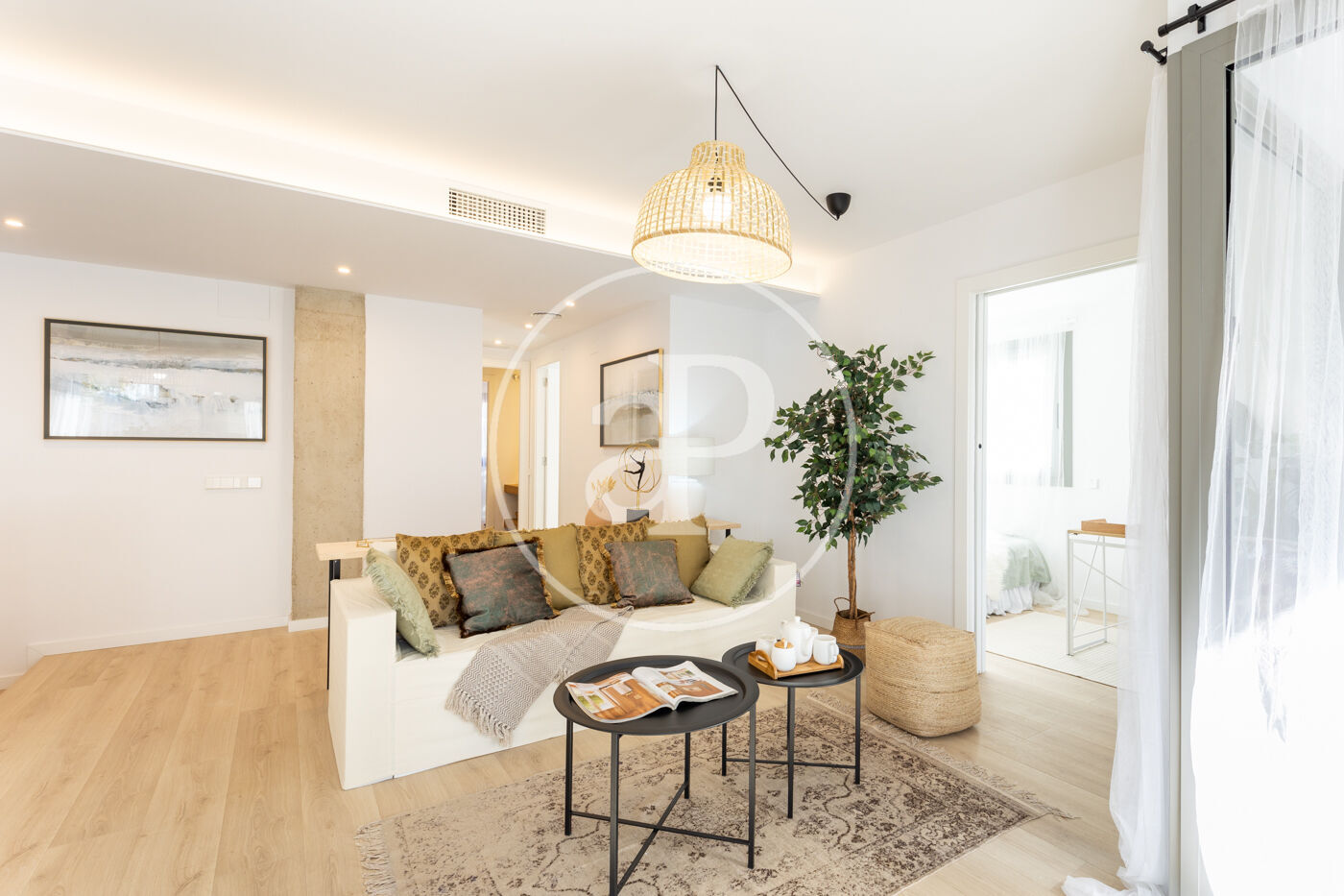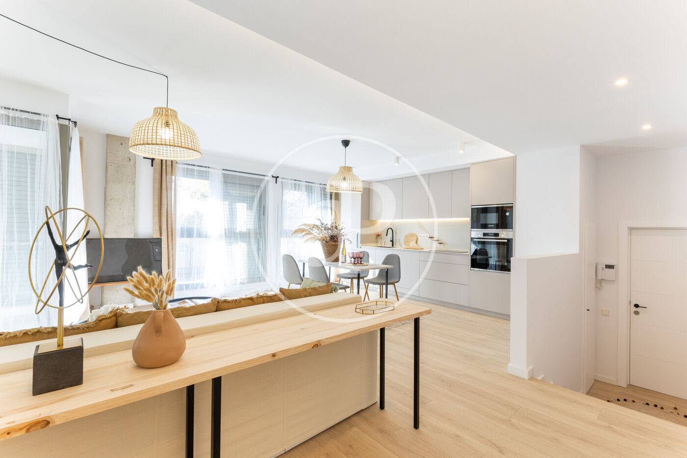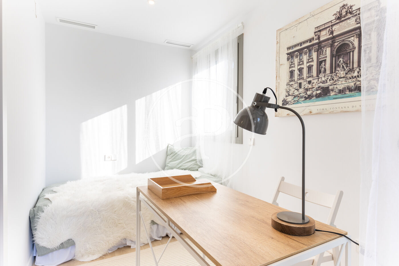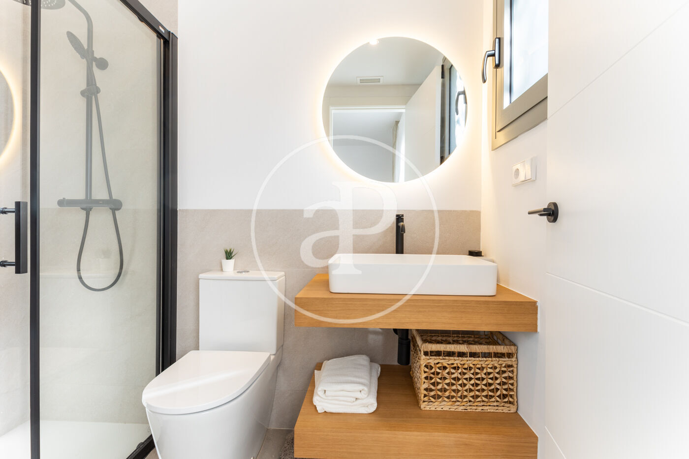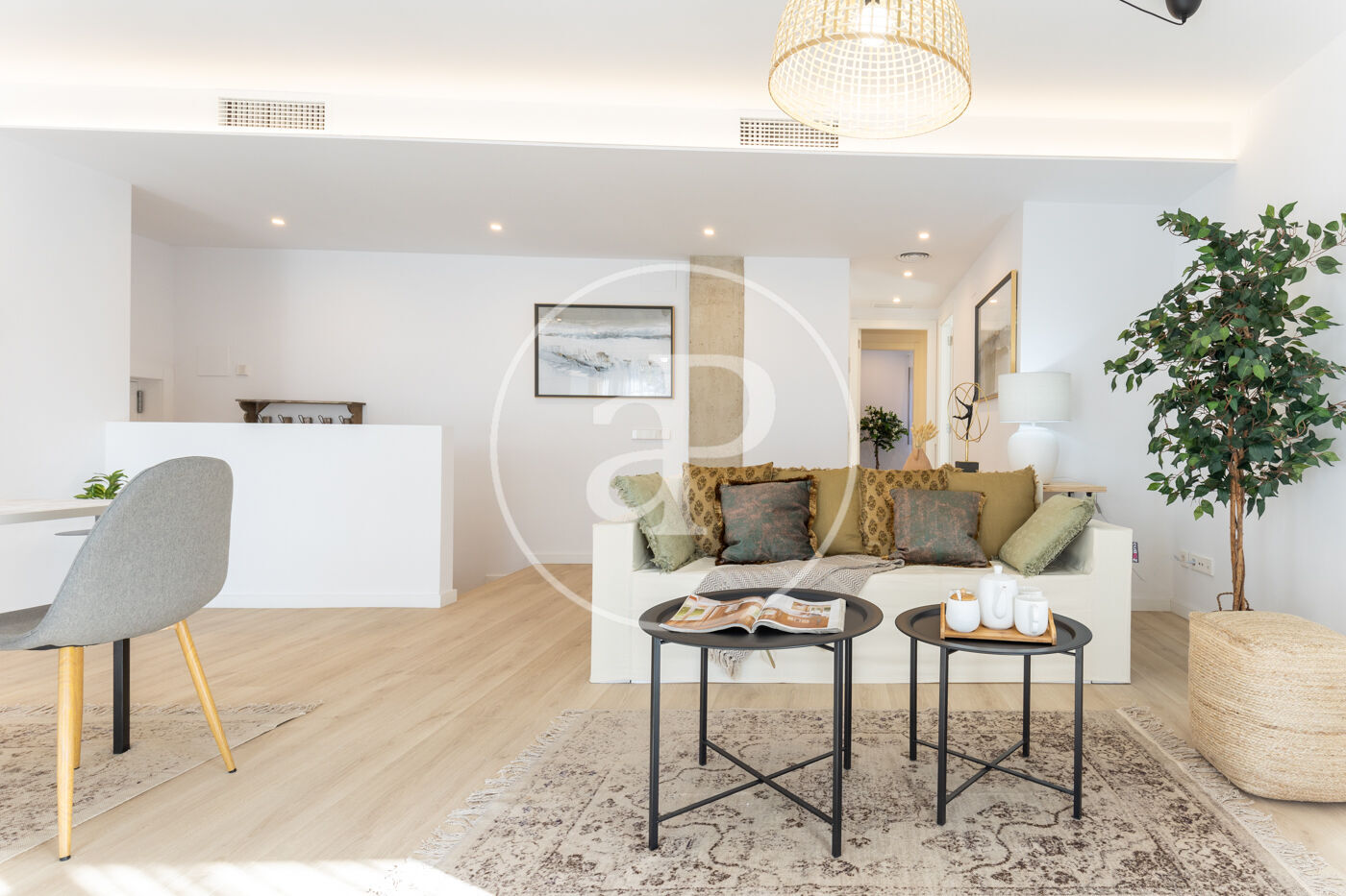 Àtic reformat amb encant. Situat a l'última planta d’una finca típica barcelonina, aquest preciós àtic de lloguer et captivarà per la seva combinació perfecta entre l’encant rústic i el disseny contemporani. Una joia amagada en un carrer tranquil, a pocs passos de les Rambles, ideal per a qui busca comoditat, llum natural i caràcter. En creuar el llindar, ens rep un espai obert i acollidor, on la sala d’estar i el menjador s’integren amb la cuina en un ambient diàfan. Les bigues de fusta vistes i els sostres inclinats amb totxo català aporten autenticitat i calidesa. La paret de maó original, restaurada, emmarca una sala d’estar amb sofà blanc i coixins neutres que potencien la lluminositat. Les grans portes balconeres de fusta aporten llum natural tot el dia. La zona de menjador es presenta com un racó ideal per compartir sopars o treballar des de casa, amb una taula de fusta massissa i cadires de disseny escandinau. Des d’aquí, accedim a una cuina moderna i funcional: completament equipada amb placa vitroceràmica, forn, microones i múltiples armaris. L’acabat blanc dels mobles i l’encimera clara mantenen l’espai fresc i net, mentre que la il·luminació LED n’augmenta la funcionalitat. L’apartament disposa de tres dormitoris. El principal, íntim i serè, segueix l’estil natural de la resta del pis, amb tèxtils clars, terra de fusta i armari encastat. Els altres dormitoris individuals tenen armaris de fusta clara i una finestra que garanteix llum natural. Ideals com a habitació infantil, despatx o per a convidats. Cada racó ha estat curosament renovat i decorat amb gust, mantenint l’essència de l’arquitectura catalana tradicional però amb totes les comoditats actuals. Els terres de parquet, les fusteries en tons càlids i la distribució optimitzada fan d’aquest àtic una opció única per viure al centre sense renunciar al confort. La finalitat del contracte és temporal.  * En compliment de la Llei 12/2023 i la Llei 18/2007 informem que:Índex de R.P.LL: 14,27 € / m2 Preu de referència estatal 955,00 €Lloguer de l'últim contracte d'arrendament: 1.590,00 €Este propietario ostenta la condición de gran tenedor.