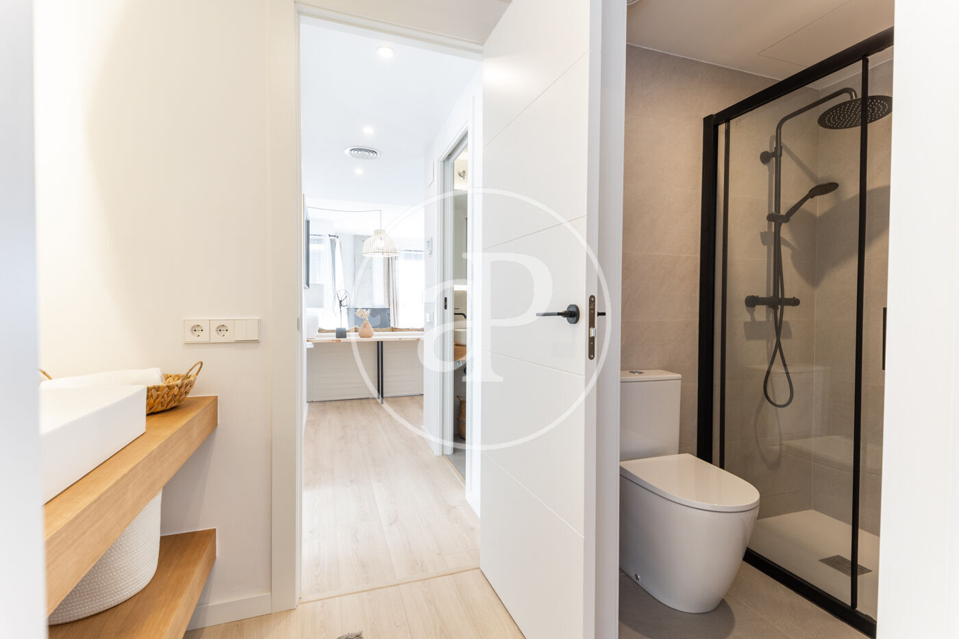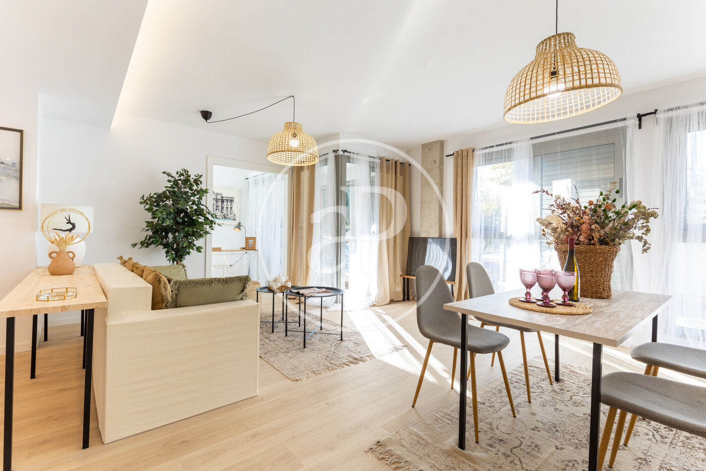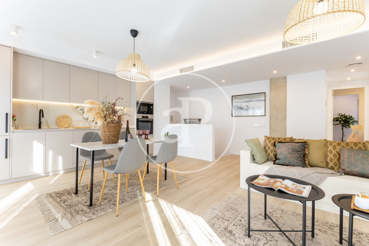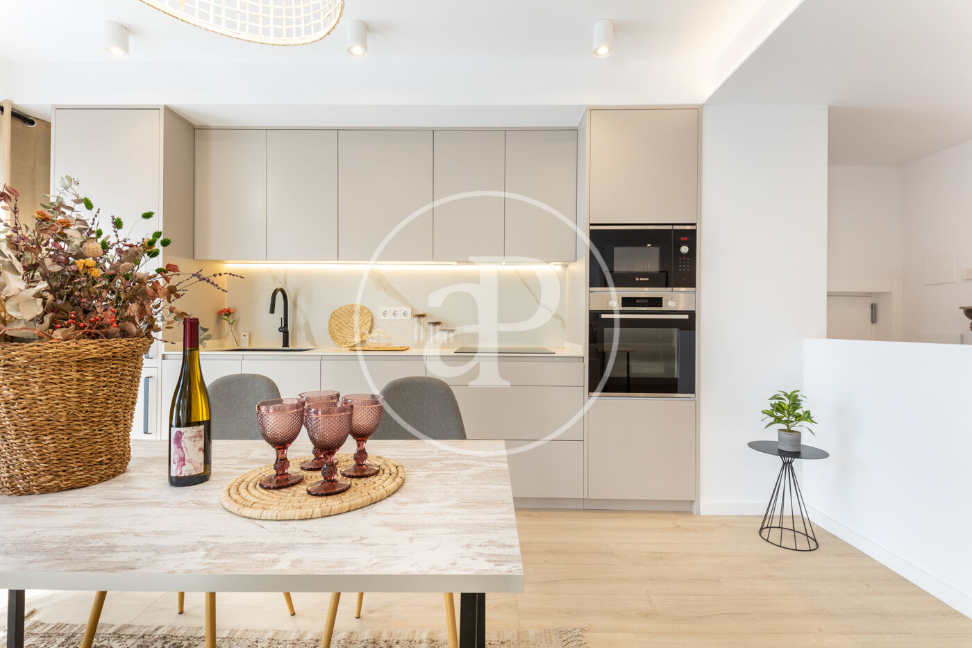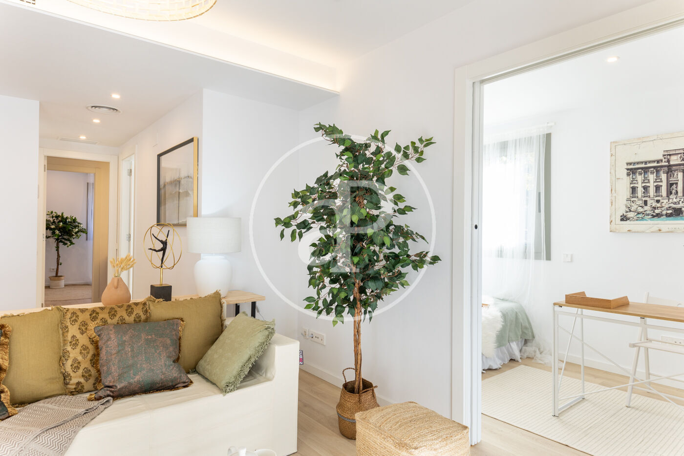 Àtic reformat amb encant. Situat a l'última planta d’una finca típica barcelonina, aquest preciós àtic de lloguer et captivarà per la seva combinació perfecta entre l’encant rústic i el disseny contemporani. Una joia amagada en un carrer tranquil, a pocs passos de les Rambles, ideal per a qui busca comoditat, llum natural i caràcter. En creuar el llindar, ens rep un espai obert i acollidor, on la sala d’estar i el menjador s’integren amb la cuina en un ambient diàfan. Les bigues de fusta vistes i els sostres inclinats amb totxo català aporten autenticitat i calidesa. La paret de maó original, restaurada, emmarca una sala d’estar amb sofà blanc i coixins neutres que potencien la lluminositat. Les grans portes balconeres de fusta aporten llum natural tot el dia. La zona de menjador es presenta com un racó ideal per compartir sopars o treballar des de casa, amb una taula de fusta massissa i cadires de disseny escandinau. Des d’aquí, accedim a una cuina moderna i funcional: completament equipada amb placa vitroceràmica, forn, microones i múltiples armaris. L’acabat blanc dels mobles i l’encimera clara mantenen l’espai fresc i net, mentre que la il·luminació LED n’augmenta la funcionalitat. L’apartament disposa de tres dormitoris. El principal, íntim i serè, segueix l’estil natural de la resta del pis, amb tèxtils clars, terra de fusta i armari encastat. Els altres dormitoris individuals tenen armaris de fusta clara i una finestra que garanteix llum natural. Ideals com a habitació infantil, despatx o per a convidats. Cada racó ha estat curosament renovat i decorat amb gust, mantenint l’essència de l’arquitectura catalana tradicional però amb totes les comoditats actuals. Els terres de parquet, les fusteries en tons càlids i la distribució optimitzada fan d’aquest àtic una opció única per viure al centre sense renunciar al confort. La finalitat del contracte és temporal.  * En compliment de la Llei 12/2023 i la Llei 18/2007 informem que:Índex de R.P.LL: 14,27 € / m2 Preu de referència estatal 955,00 €Lloguer de l'últim contracte d'arrendament: 1.590,00 €Este propietario ostenta la condición de gran tenedor.