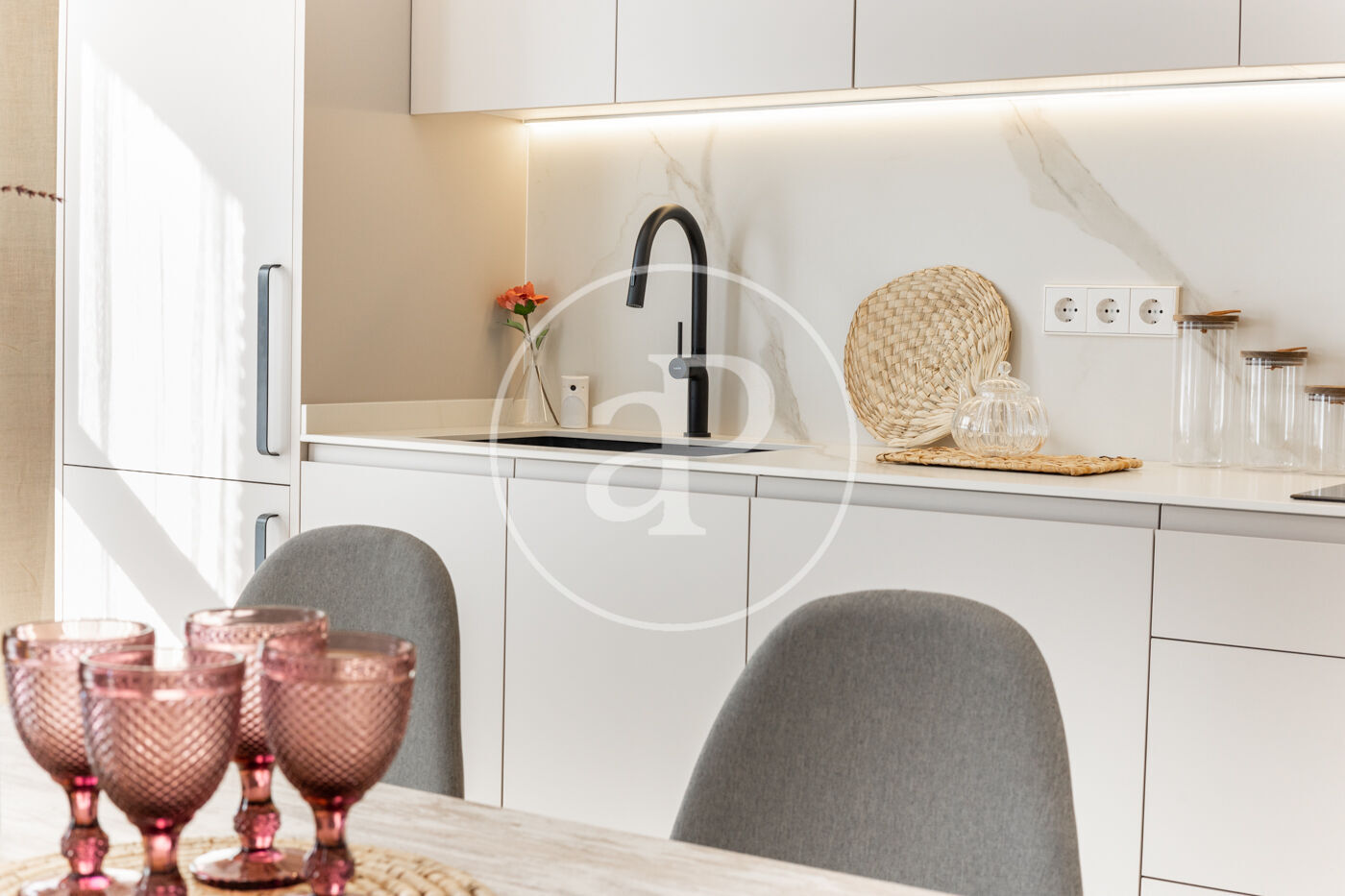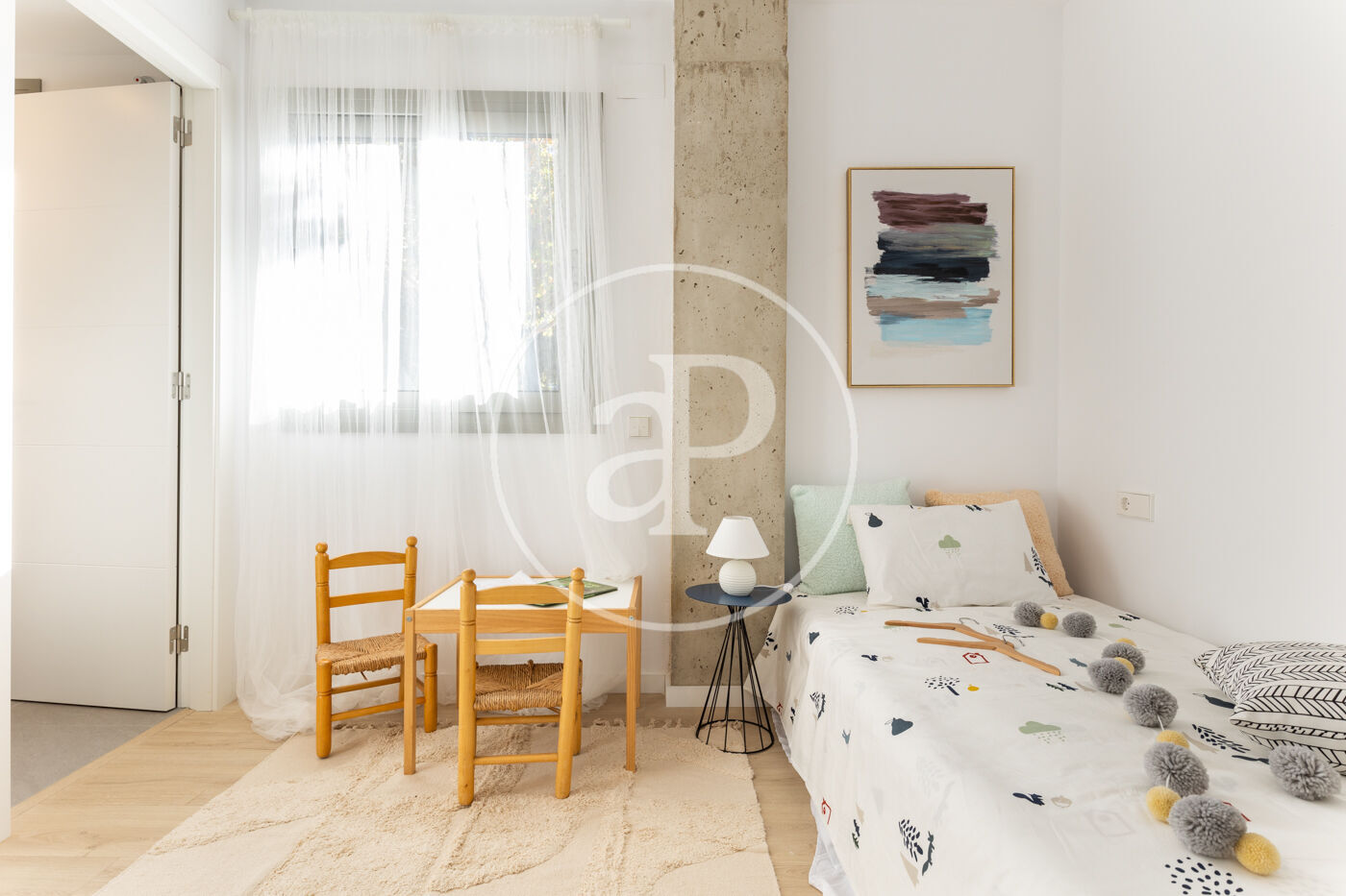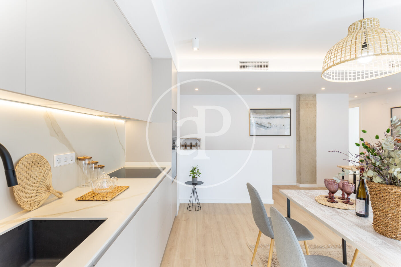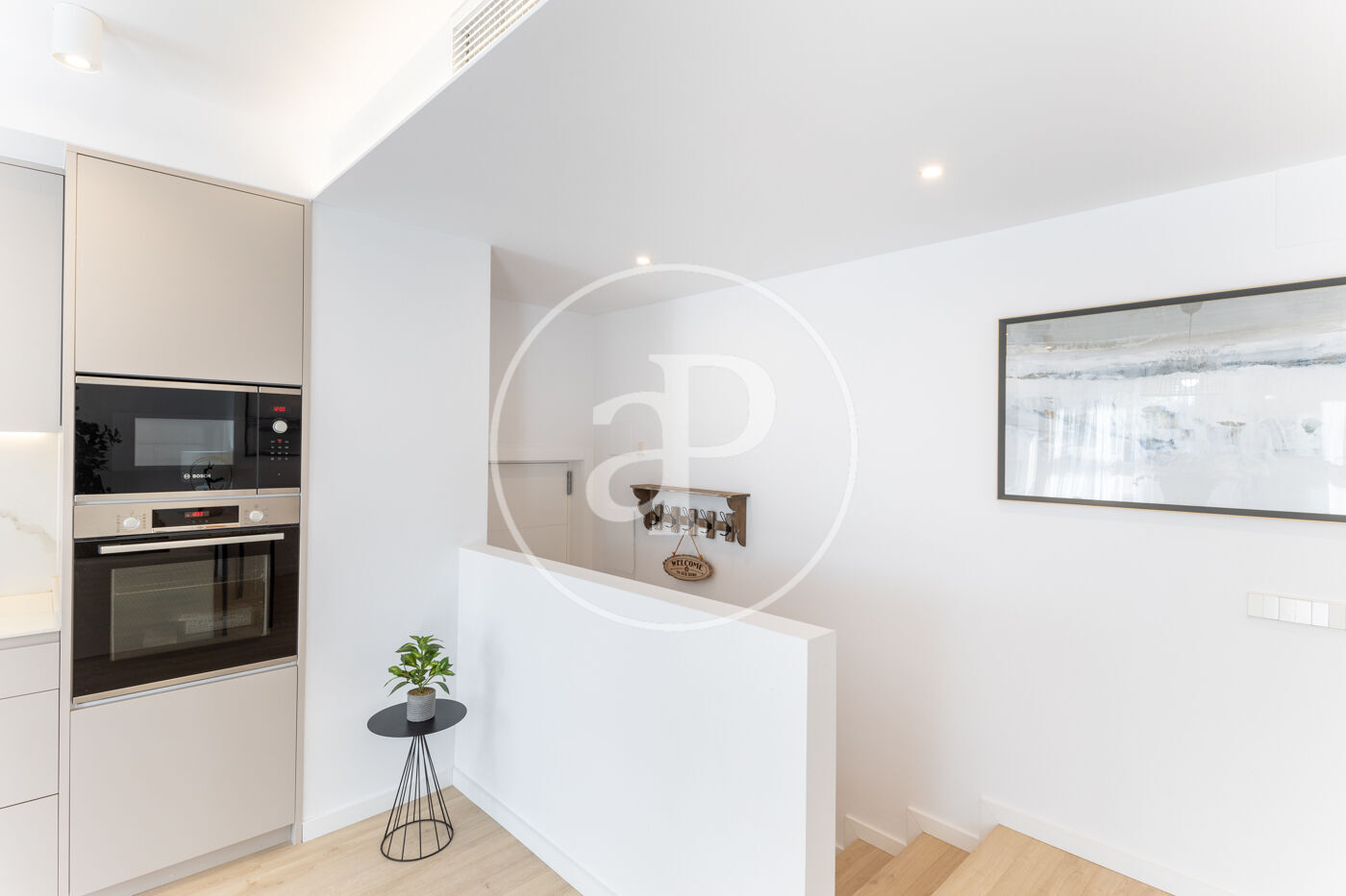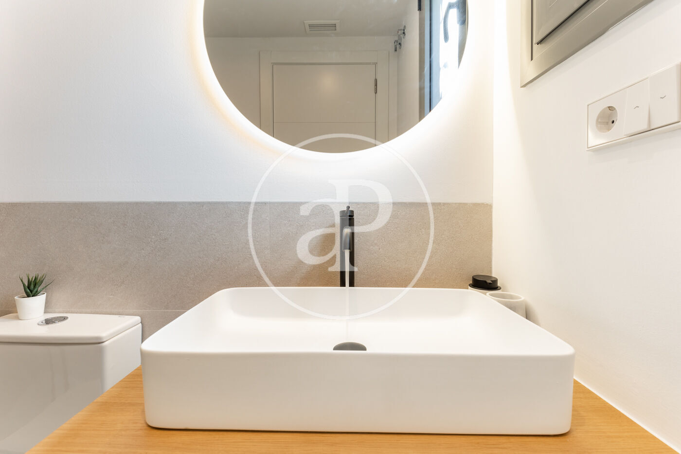 Àtic reformat amb encant. Situat a l'última planta d’una finca típica barcelonina, aquest preciós àtic de lloguer et captivarà per la seva combinació perfecta entre l’encant rústic i el disseny contemporani. Una joia amagada en un carrer tranquil, a pocs passos de les Rambles, ideal per a qui busca comoditat, llum natural i caràcter. En creuar el llindar, ens rep un espai obert i acollidor, on la sala d’estar i el menjador s’integren amb la cuina en un ambient diàfan. Les bigues de fusta vistes i els sostres inclinats amb totxo català aporten autenticitat i calidesa. La paret de maó original, restaurada, emmarca una sala d’estar amb sofà blanc i coixins neutres que potencien la lluminositat. Les grans portes balconeres de fusta aporten llum natural tot el dia. La zona de menjador es presenta com un racó ideal per compartir sopars o treballar des de casa, amb una taula de fusta massissa i cadires de disseny escandinau. Des d’aquí, accedim a una cuina moderna i funcional: completament equipada amb placa vitroceràmica, forn, microones i múltiples armaris. L’acabat blanc dels mobles i l’encimera clara mantenen l’espai fresc i net, mentre que la il·luminació LED n’augmenta la funcionalitat. L’apartament disposa de tres dormitoris. El principal, íntim i serè, segueix l’estil natural de la resta del pis, amb tèxtils clars, terra de fusta i armari encastat. Els altres dormitoris individuals tenen armaris de fusta clara i una finestra que garanteix llum natural. Ideals com a habitació infantil, despatx o per a convidats. Cada racó ha estat curosament renovat i decorat amb gust, mantenint l’essència de l’arquitectura catalana tradicional però amb totes les comoditats actuals. Els terres de parquet, les fusteries en tons càlids i la distribució optimitzada fan d’aquest àtic una opció única per viure al centre sense renunciar al confort. La finalitat del contracte és temporal.  * En compliment de la Llei 12/2023 i la Llei 18/2007 informem que:Índex de R.P.LL: 14,27 € / m2 Preu de referència estatal 955,00 €Lloguer de l'últim contracte d'arrendament: 1.590,00 €Este propietario ostenta la condición de gran tenedor.