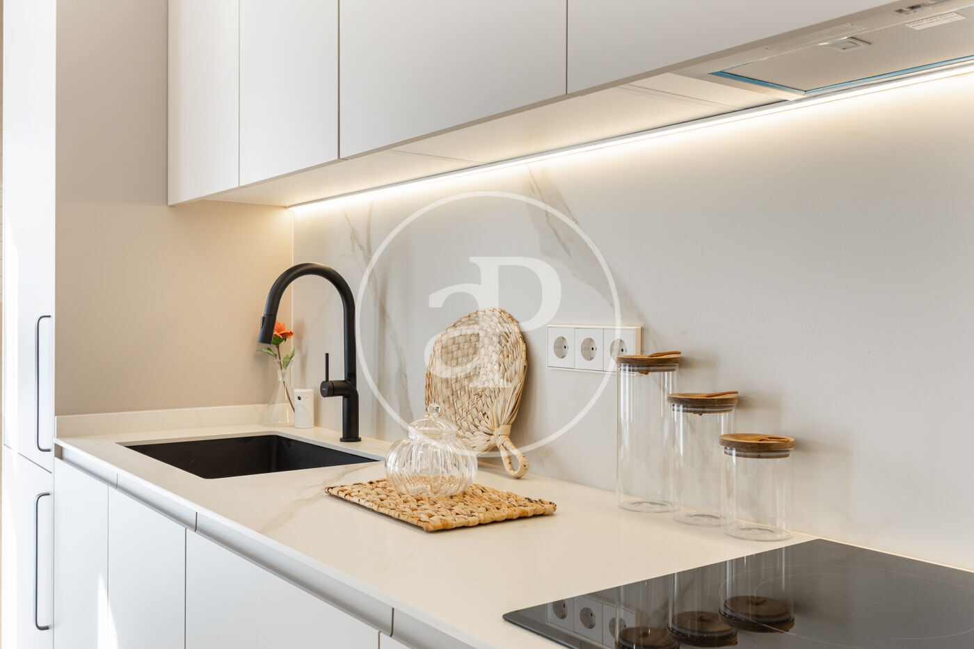 El pis disposa d'uns excel·lents acabats: sòl de parquet, fusteria interior de fusta lacada en blanc, fusteria exterior d'alumini amb doble cristall, aire condicionat per conductes (bomba de fred i de calor), i infinitud d'acabats més.