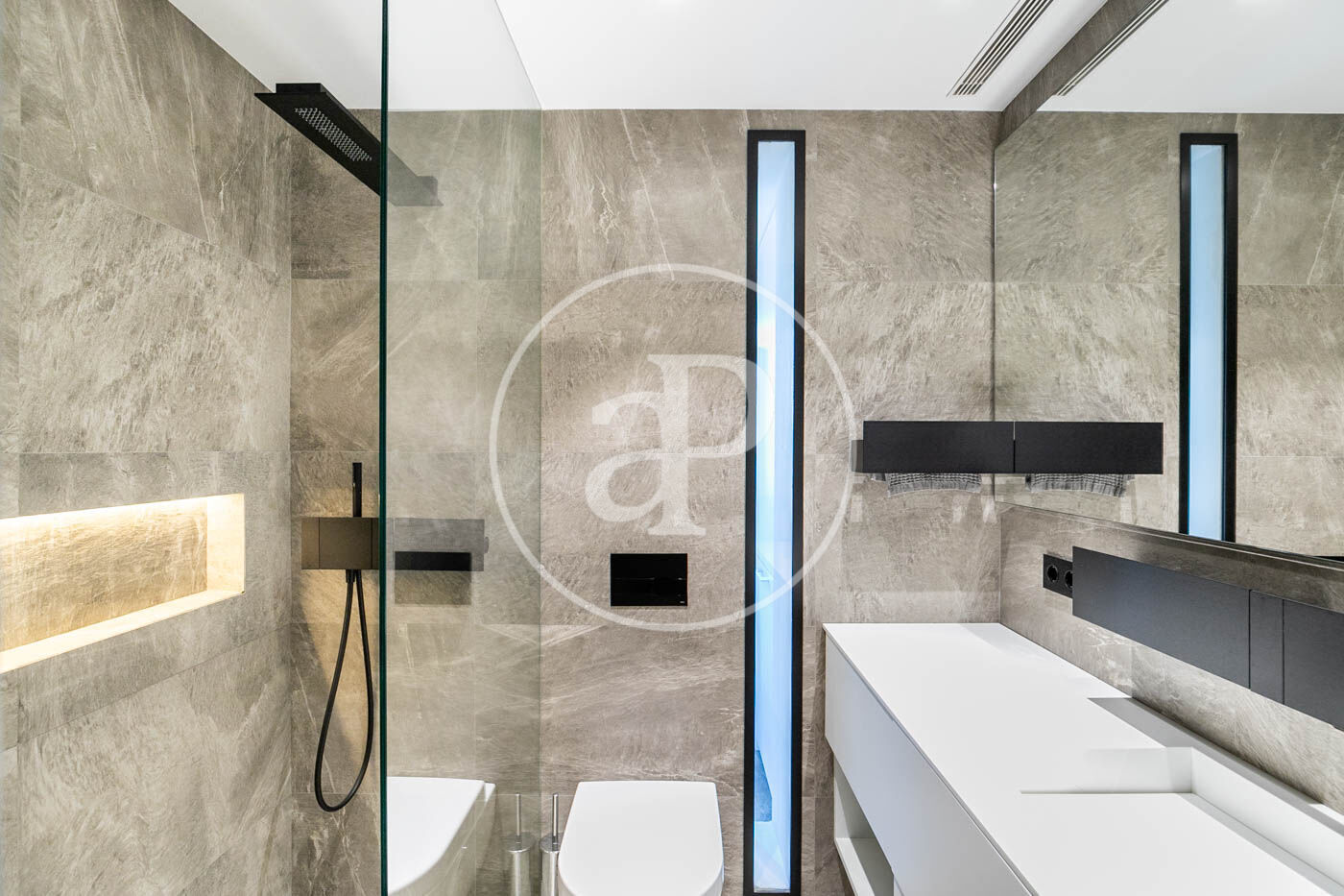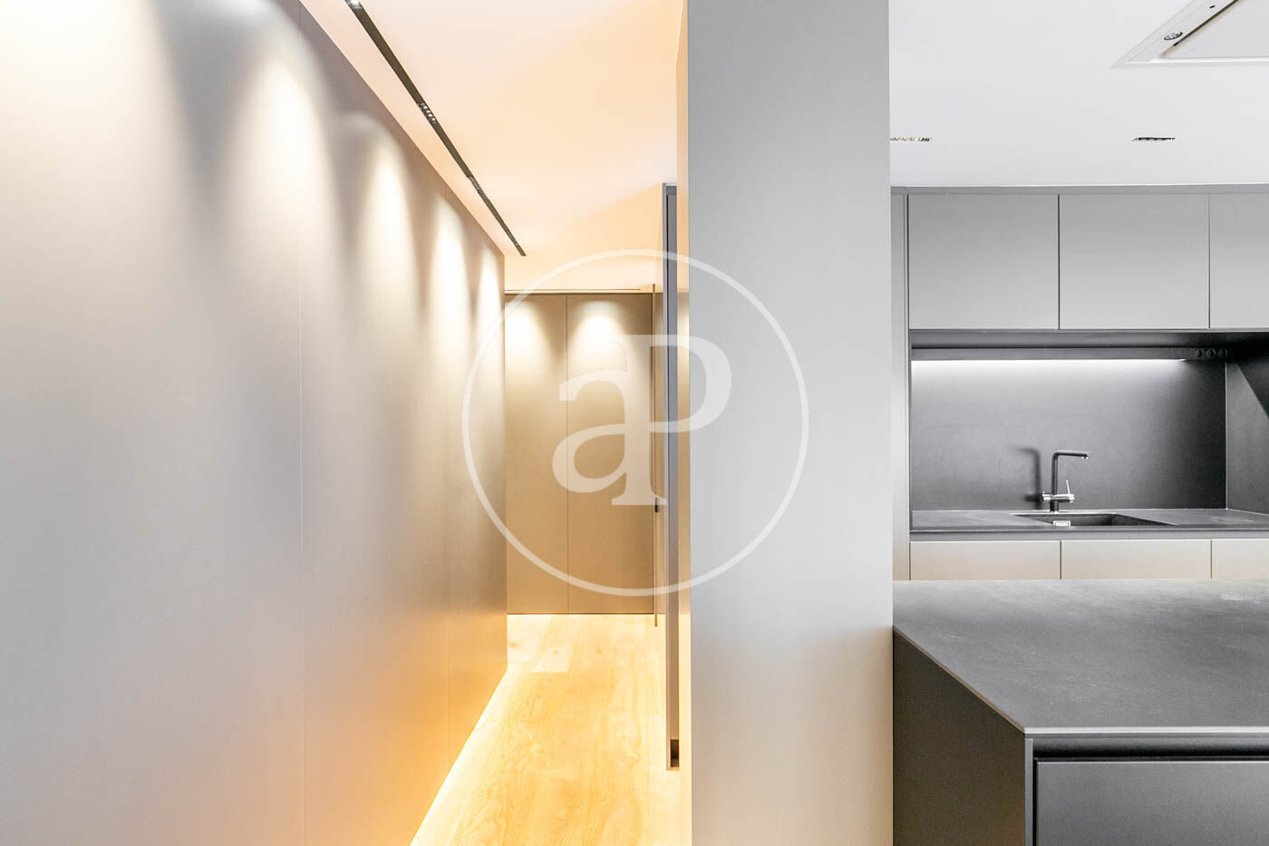 La il·luminació de tot el pis és espectacular amb armaris il·luminats per dins, banys amb llums inesperades, cada racó d'aquest pis està dissenyat. Té un alt espai de magatzematge. La màster suite té un vestidor d'àmplies dimensions i un bany en suite de somni. La segona habitació és doble i de grans dimensions. el pis s'embeni amb una plaça de pàrquing i un traster.