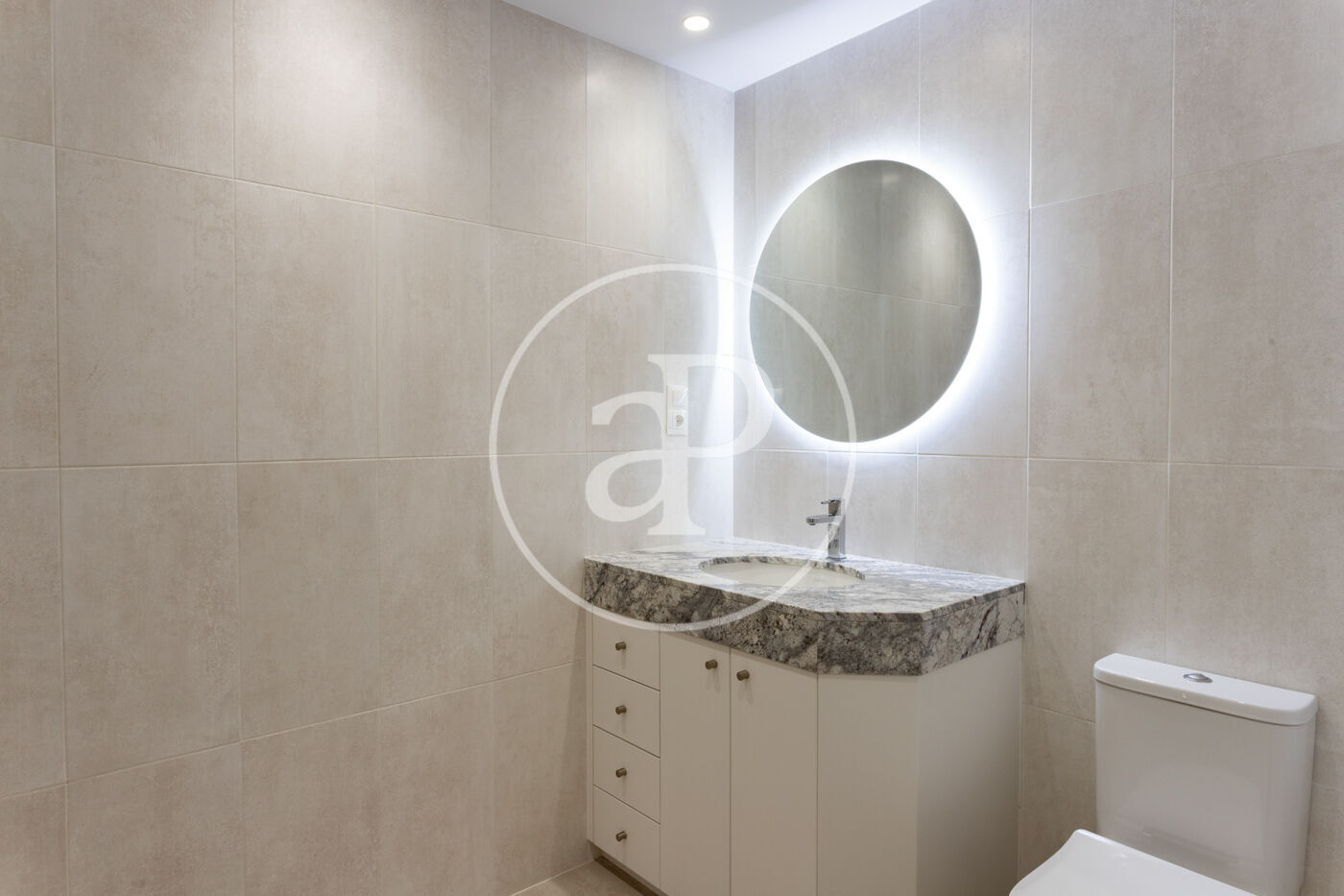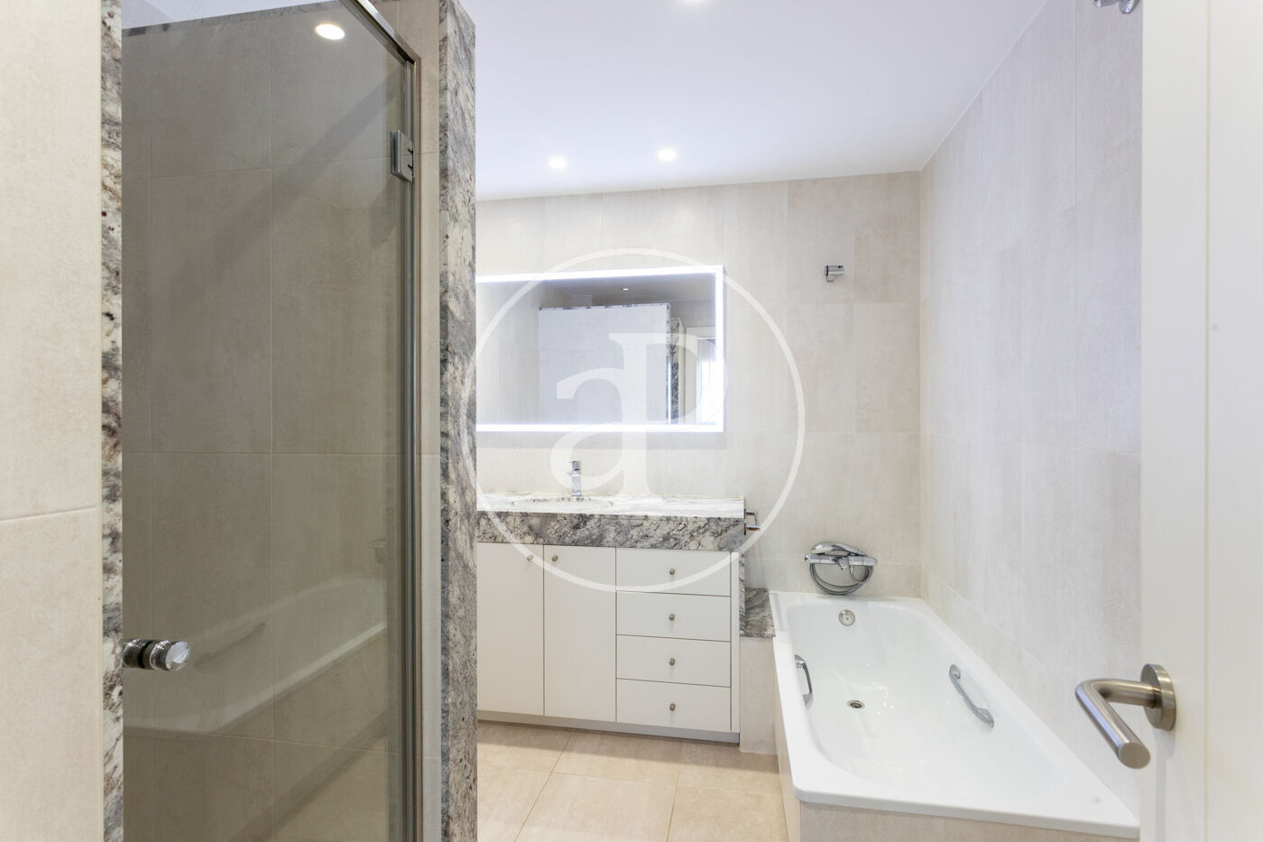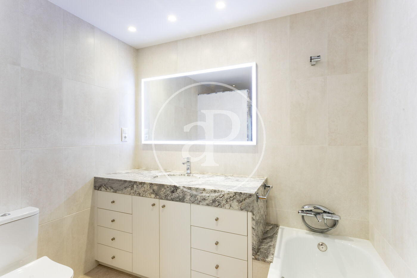 La zona de nit es compon de tres dormitoris exteriors amb armaris encastats, un d’ells en suite amb bany privat. A més, l’habitatge disposa d’un segon bany complet amb acabats contemporanis.