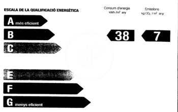Més eficient Menys eficient Qualificació energètica Consum energia Kw h/m² any Emissions Co/m² any 38.00 7.00
