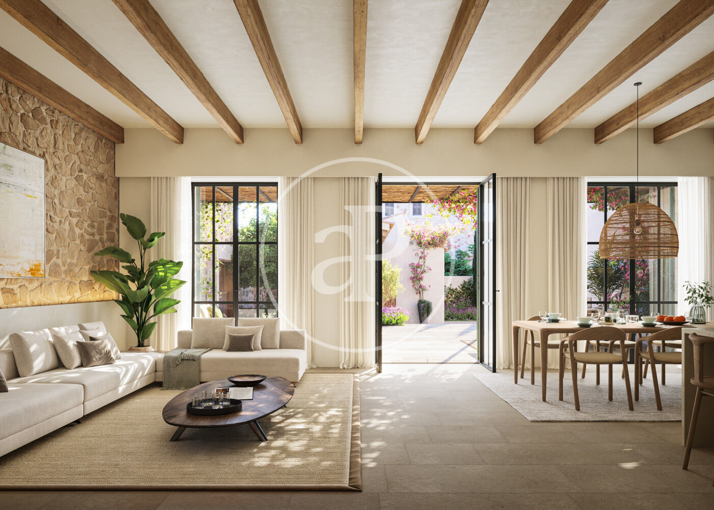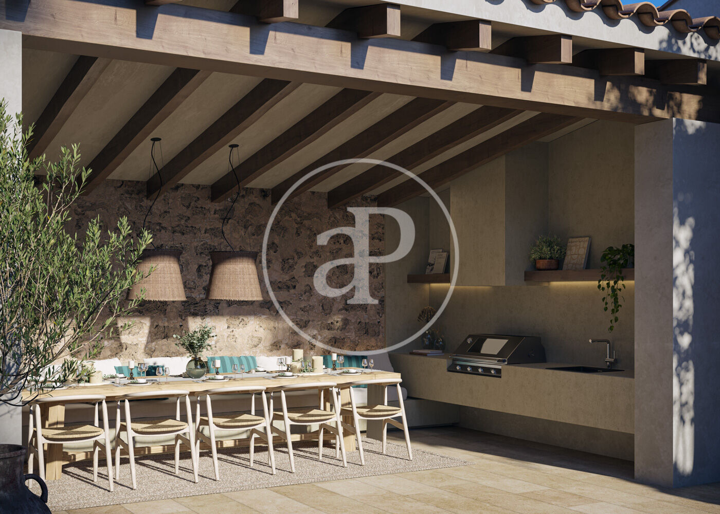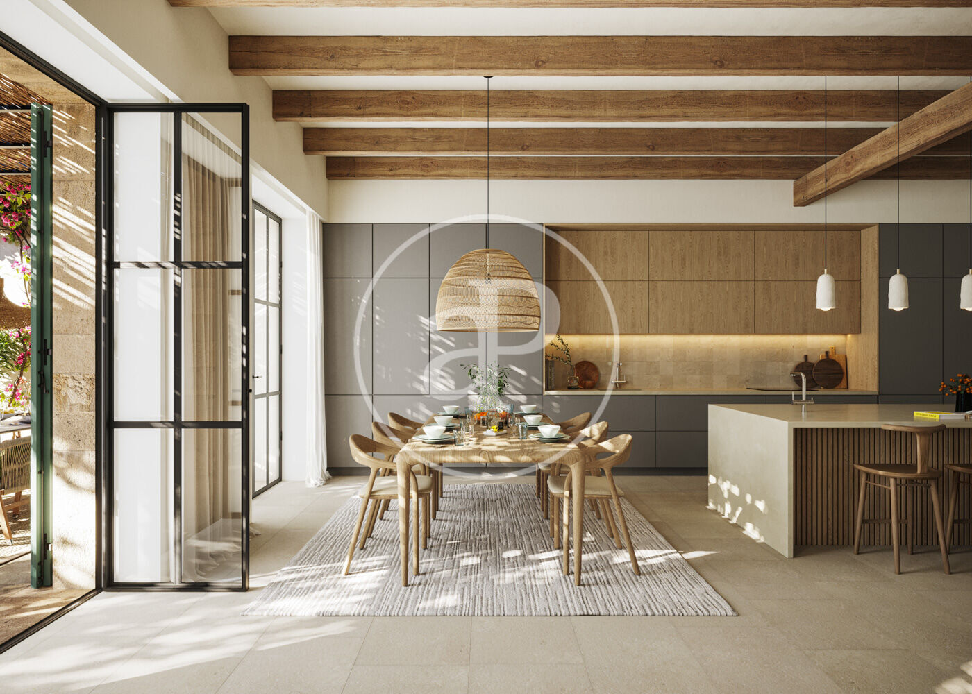 Cada detall reflecteix un alt nivell de qualitat: pedra de Santanyí, marbre natural, fusta de roure, climatització dual, diferents ambients d’il·luminació i àmplies zones d’emmagatzematge. A més, disposa de gimnàs, cuina exterior i garatge.