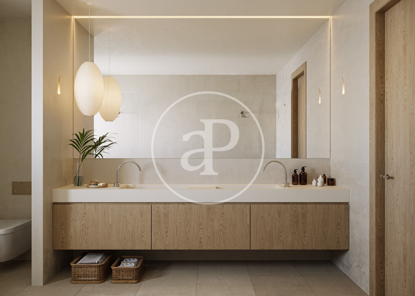 L’orientació i la distribució estan pensades per aprofitar al màxim la llum natural del Mediterrani, creant espais amplis que flueixen entre interior i exterior. Els finestrals panoràmics integren les terrasses, el jardí i la piscina en una experiència de vida harmònica i relaxada.