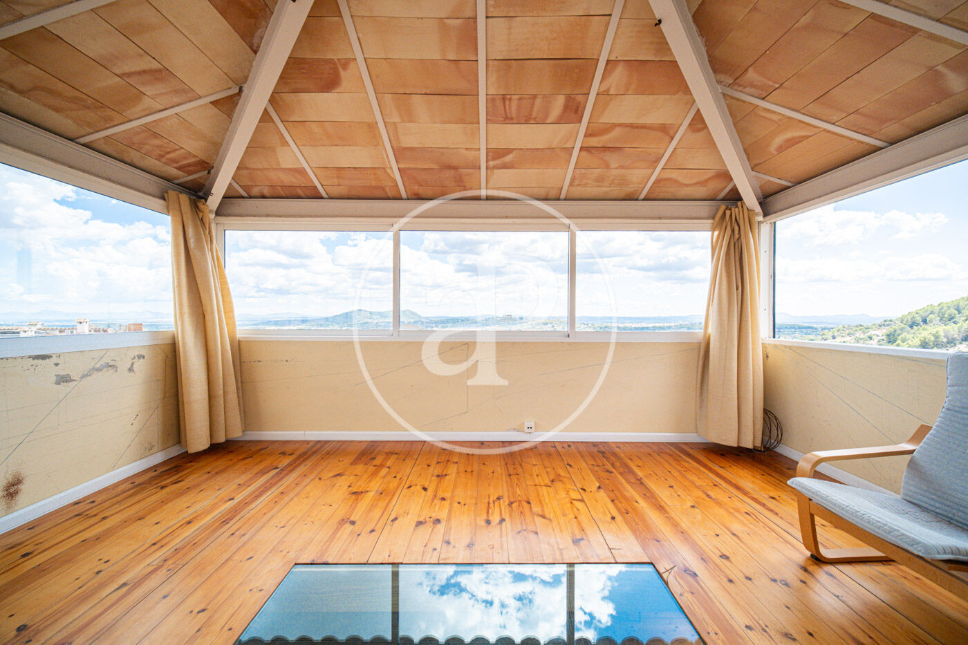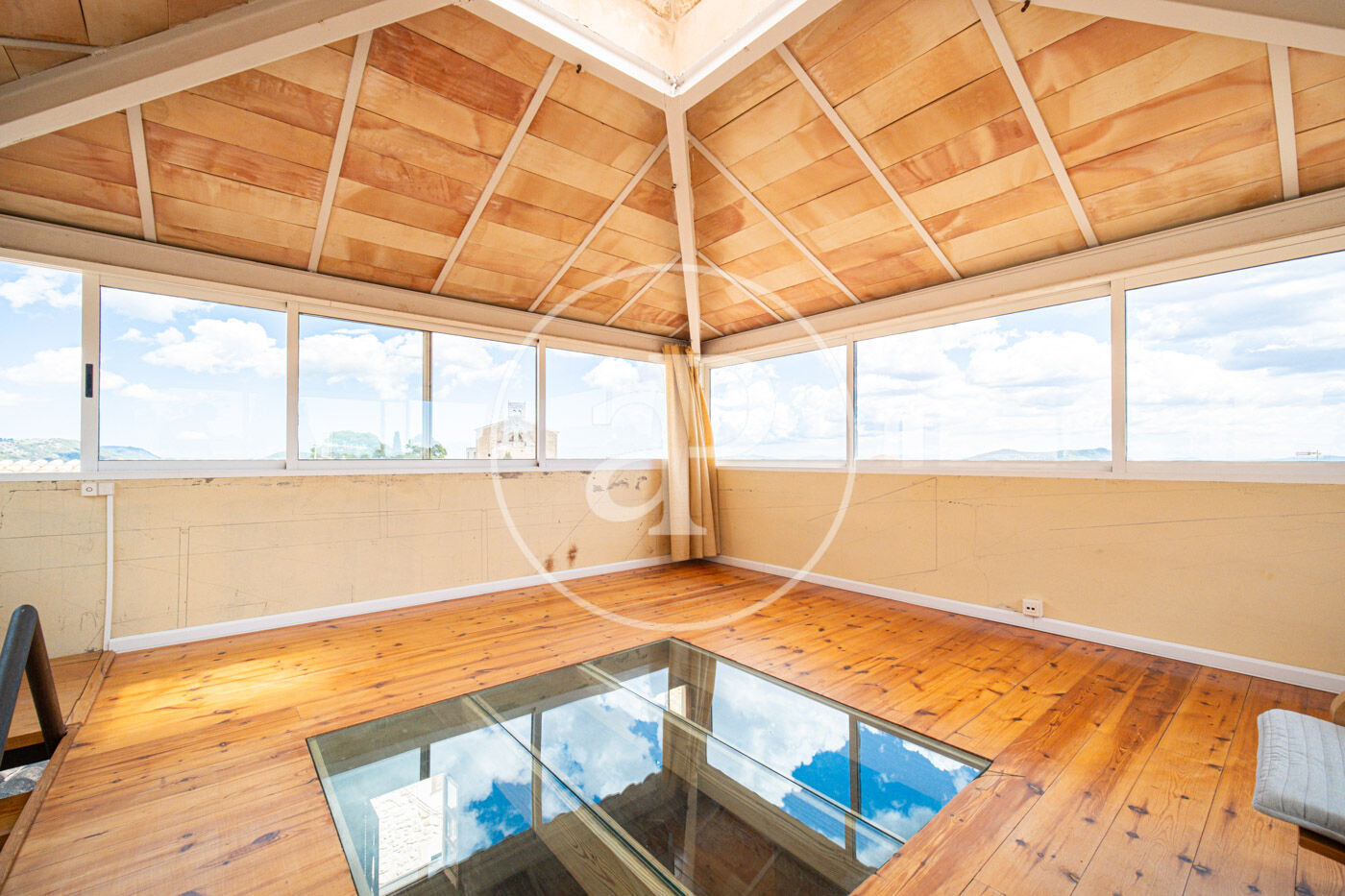 A la darrera planta hi ha una habitació amb un finestral 360º i vistes espectaculars fins a la Badia d'Alcúdia. L´espai es pot adaptar per a taller de pintura, oficina o sala d´estar.
