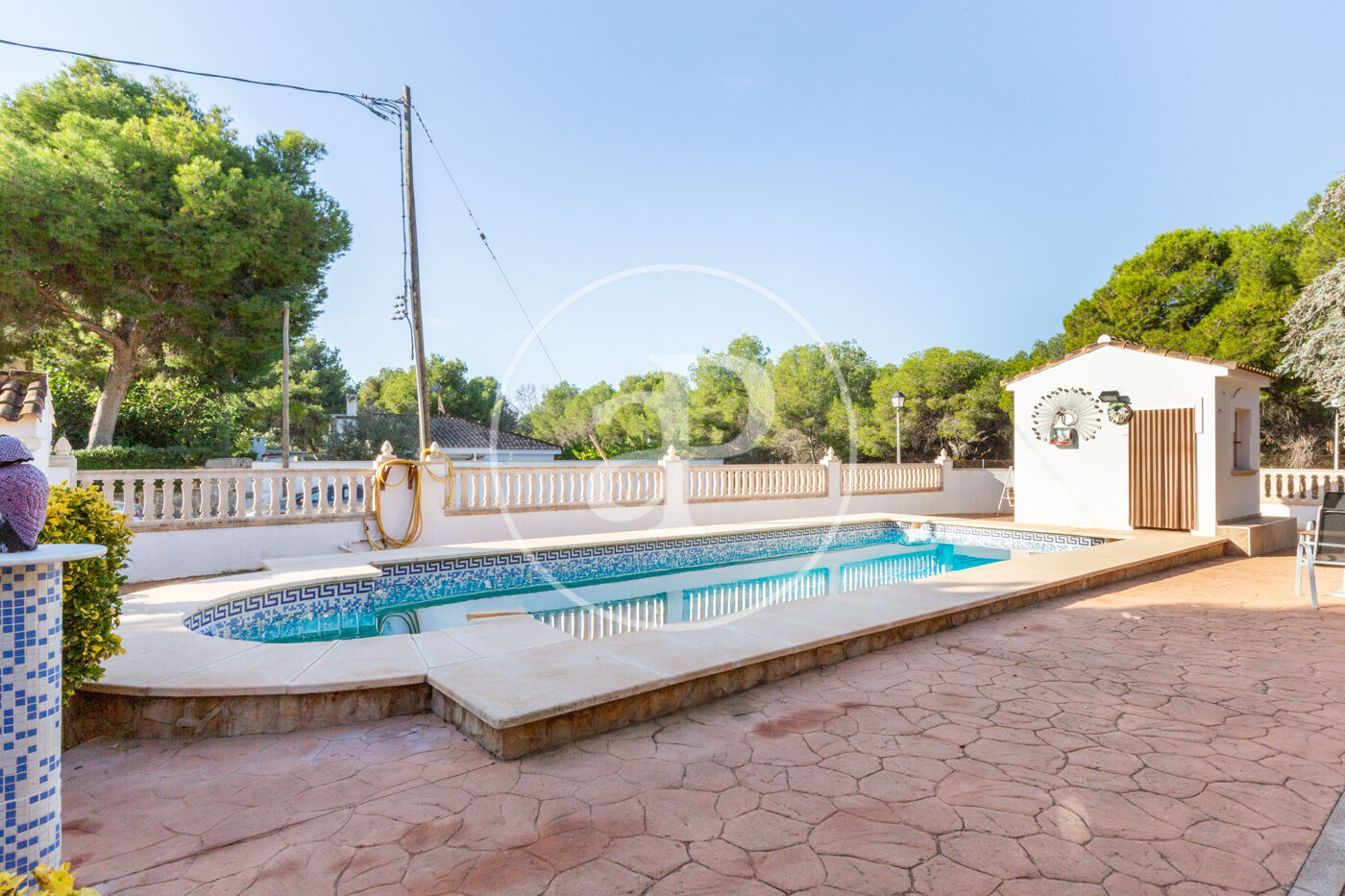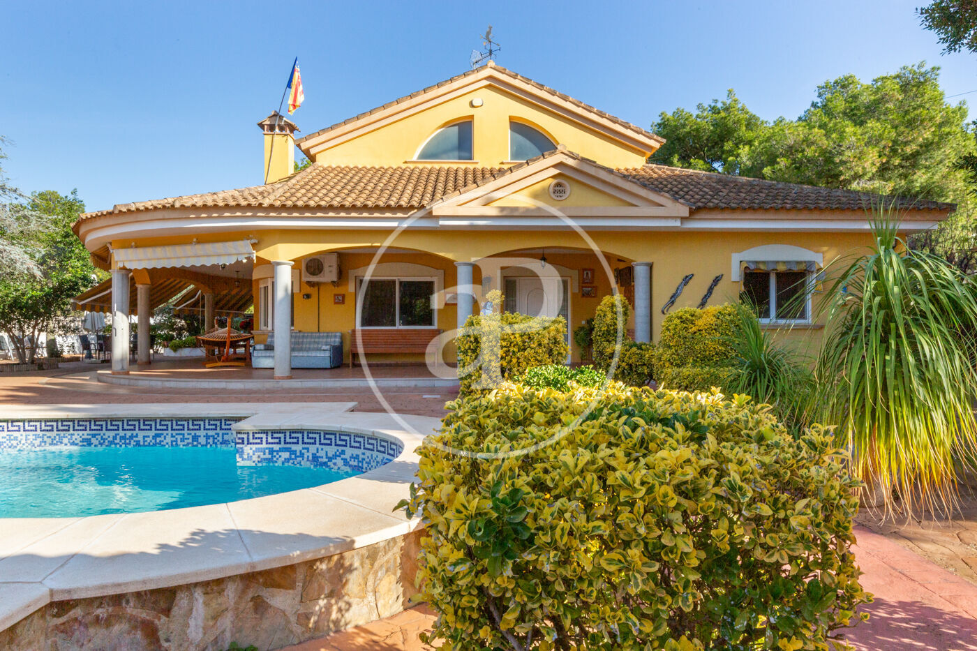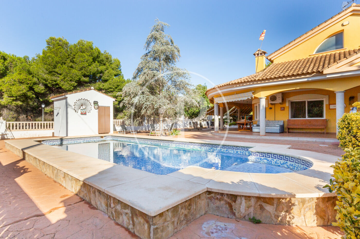 Amplia vivenda de 330 m², amb 7 habitacions, piscina i una parcel·la de 1.348 m², situada en una urbanització amb tots els serveis i seguretat 24 h.