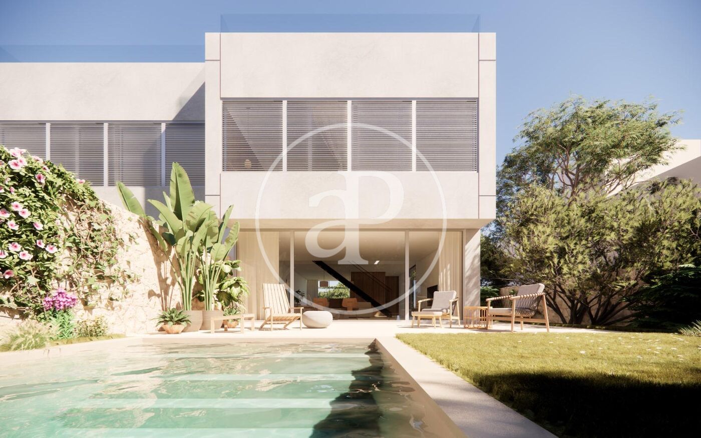 Accedeix a través d´una elegant entrada que condueix a un ampli saló menjador amb la zona de cuina integrada al´espai. Aquest espai diàfan s'obre al jardí privat amb piscina, ideal per gaudir de dies assolellats i vetllades a l'aire lliure. També hi ha un lavabo de cortesia i zona de bugaderia.