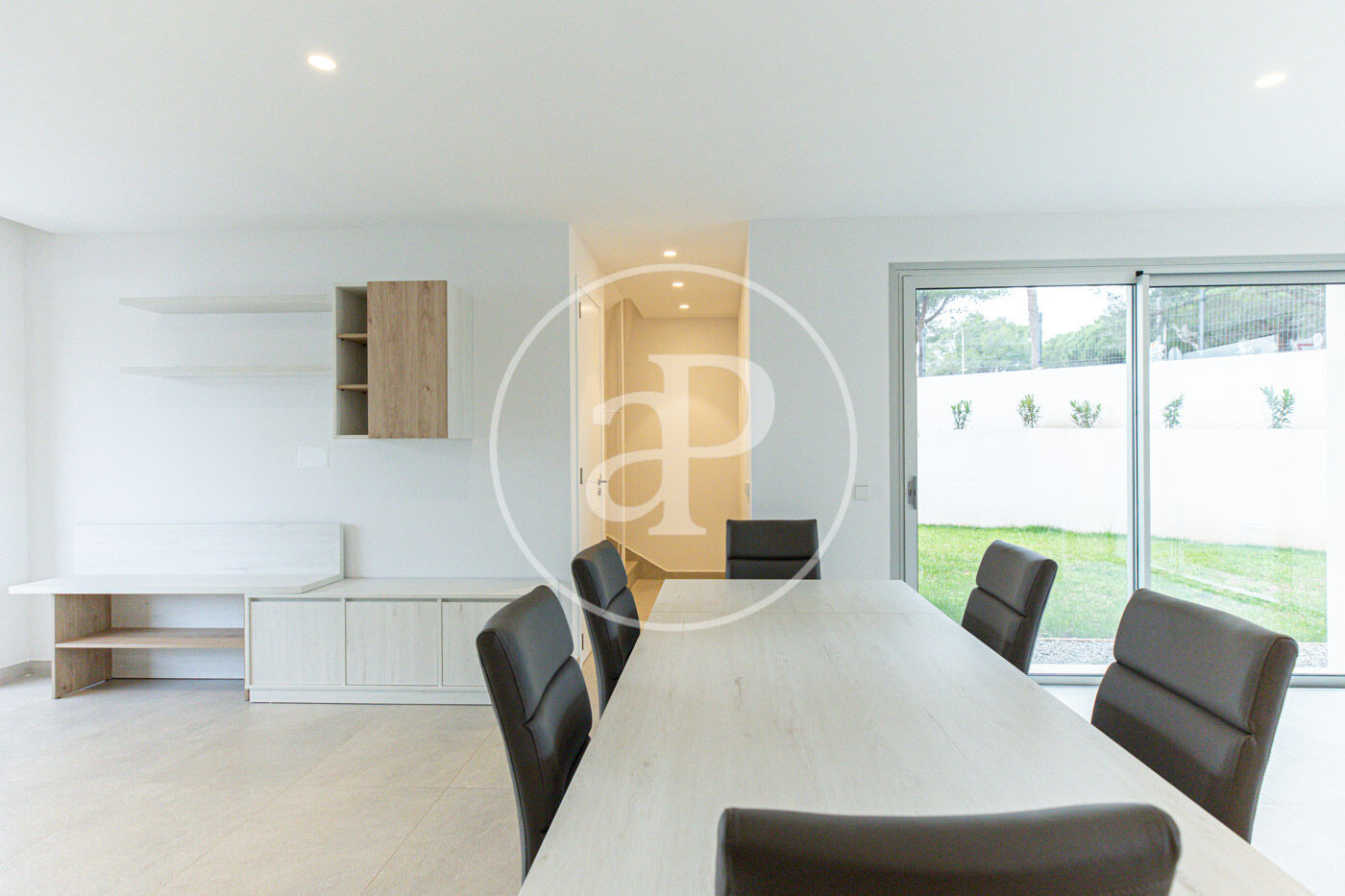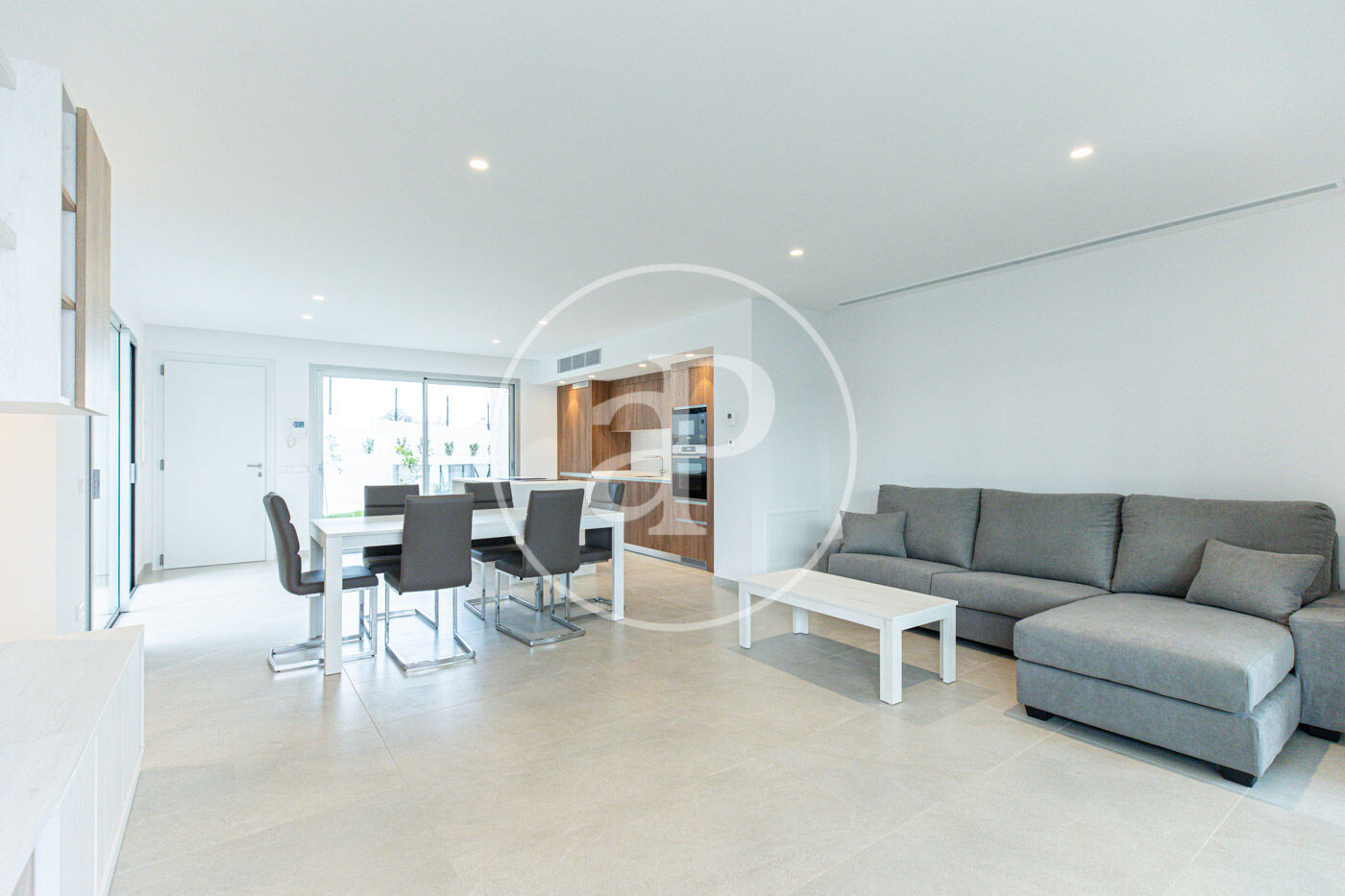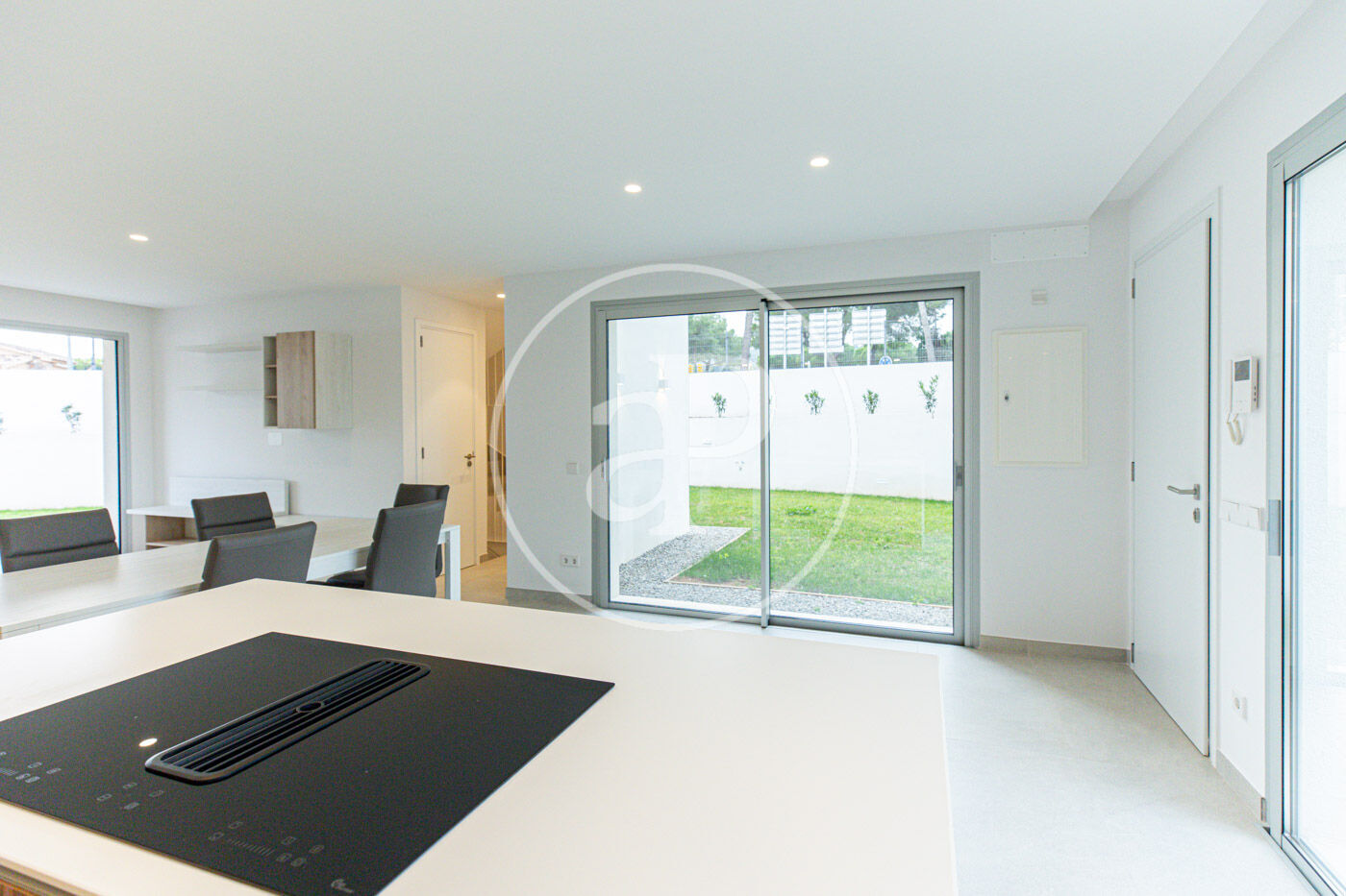 A la planta baixa, l´adossat ofereix accés directe a una àmplia terrassa i jardí, on hi ha una moderna cuina oberta que s´integra harmoniosament amb el saló menjador. A més, en aquesta planta hi ha un lavabo per a més comoditat.