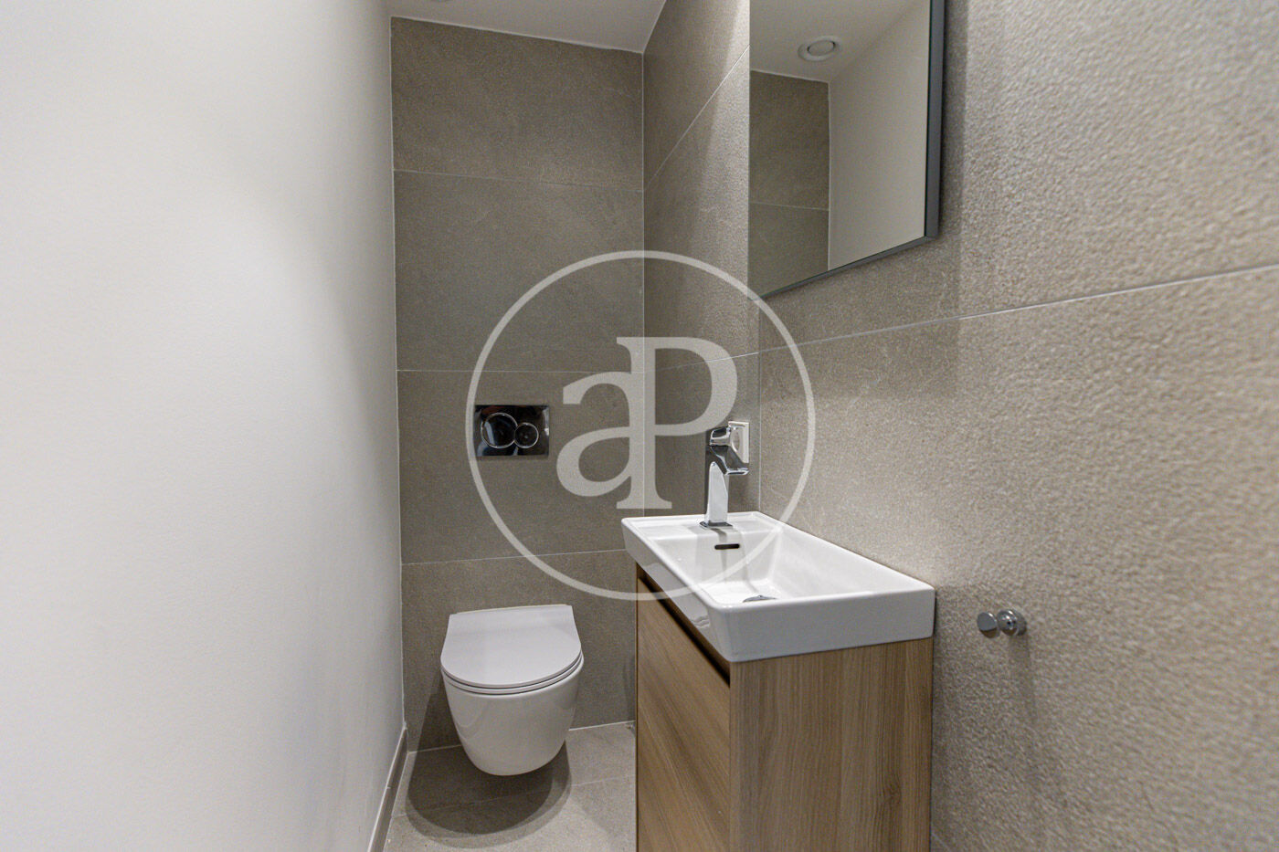 La planta superior té tres dormitoris dobles i un bany comú, mentre que el dormitori principal té bany en suite. Tots els espais són lluminosos i ofereixen una atmosfera acollidora i relaxant.