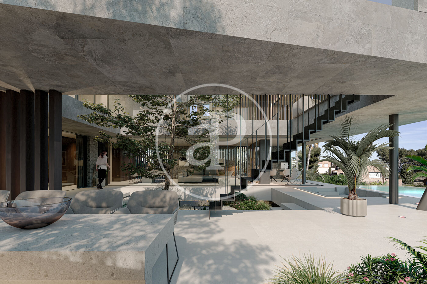 Aquesta vila també destaca pels seus acabats de luxe, com paviments porcellànics de gran format, fusteria minimalista i un sistema d’aïllament tèrmic i acústic avançat. A més, està equipada amb un sistema d’aerotèrmia per a una climatització eficient i sostenible, amb opció de terra radiant.