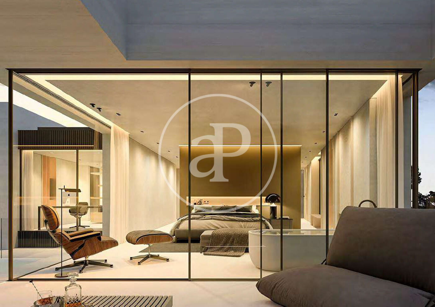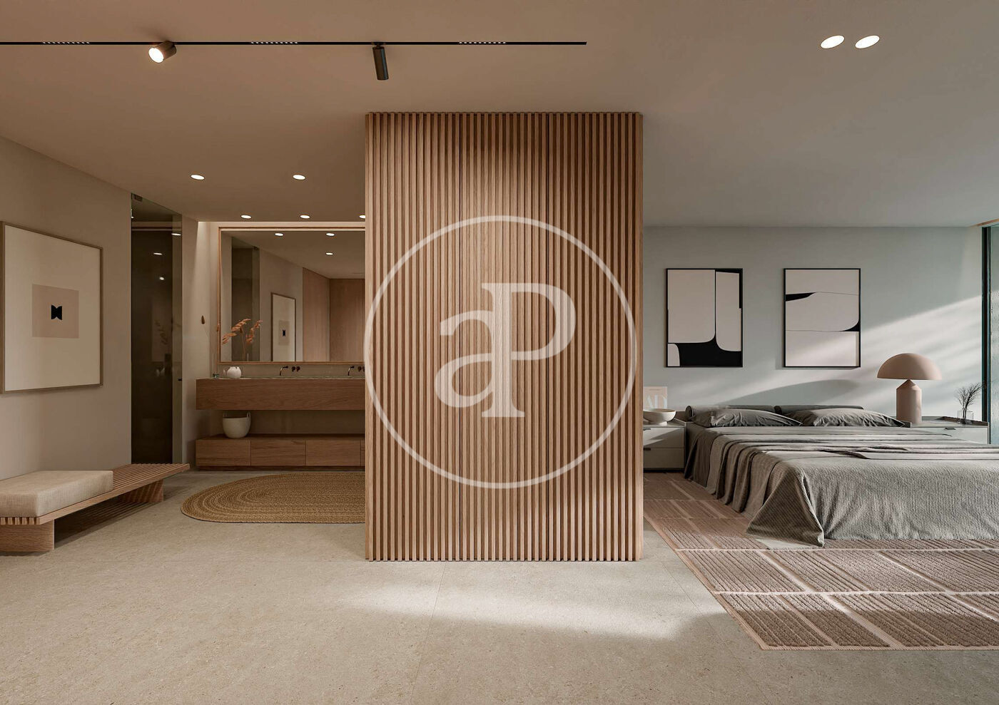 A la planta baixa, la vila compta amb dues espaioses habitacions en suite, cadascuna amb la seva terrassa privada i vistes privilegiades. A més, la màster suite redefineix el concepte de luxe amb un vestidor de grans dimensions, un bany de disseny amb banyera de somni i un accés exclusiu a vistes panoràmiques, creant un ambient de serenitat i sofisticació.